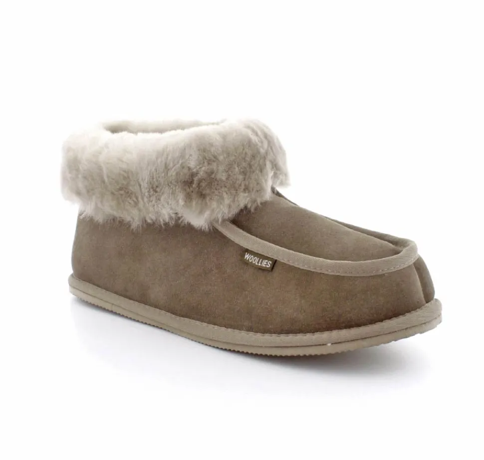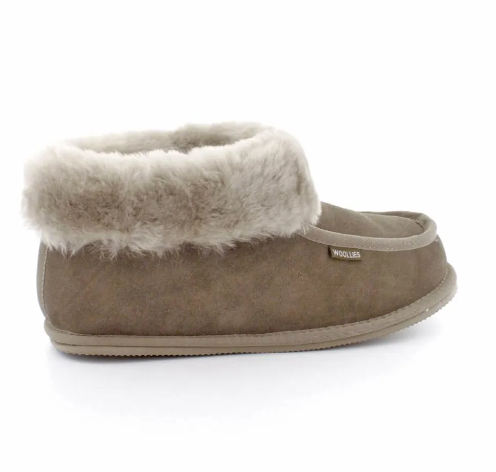 Super skønne rulams kamikker i en flot grå farve fra Woollies. Den er lige til at trække på og pelskanten kan trækkes op så der er ekstra varme om anklerne. Bløde såler og lækkert uld indeni.