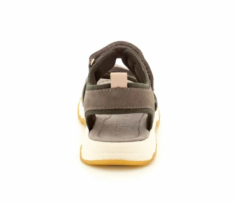 Flot skindsandal fra Bisgaard med et sporty look. Sandalen er model Coco i en flot armygrøn farve. Der er et super godt hold på foden med to regulerbare velcroremme. Bløde ruskindssåler indeni og gummisåler under bunden. Sandalen er lavet på en smallere læst, så den er super god til en smal og en normal fod.