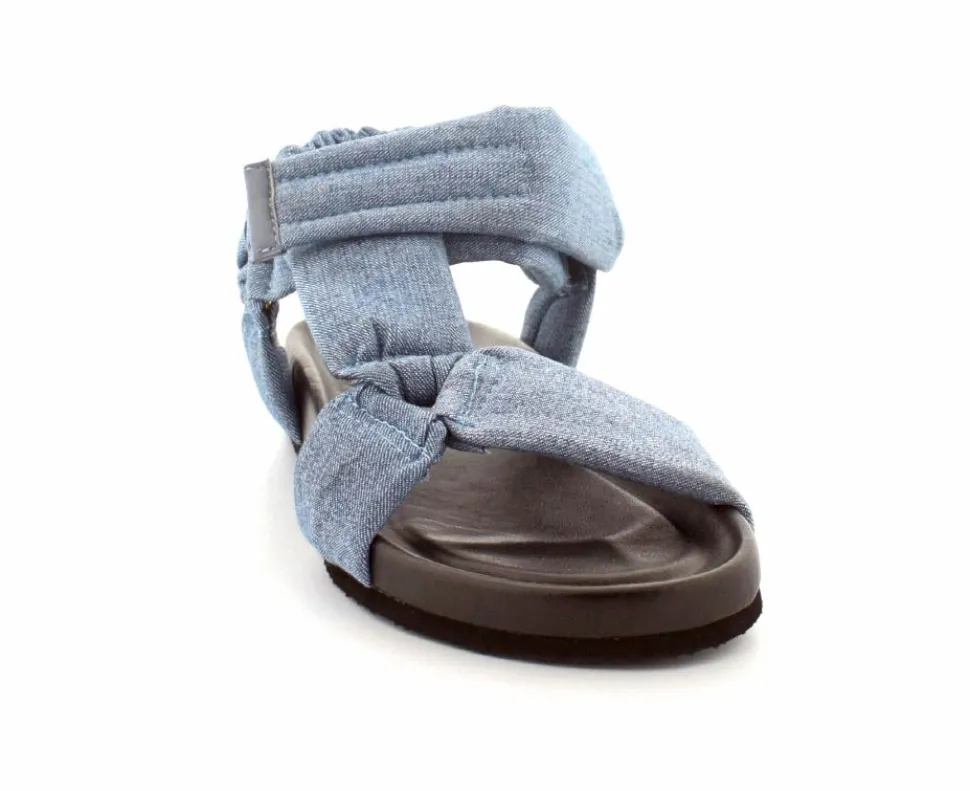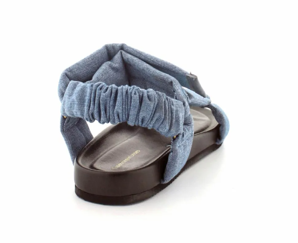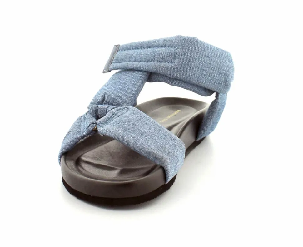 Super smarte sandaler fra Copenhagen Shoes model Summer Denim. Sandalen er lavet i lyseblåt stof med brede vateret remme, hvor den øverste kan justeres med velcro. Der er elastk ved hælremmen, så den har et godt hold på foden. Bløde fleksible såler med lidt svangstøtte.