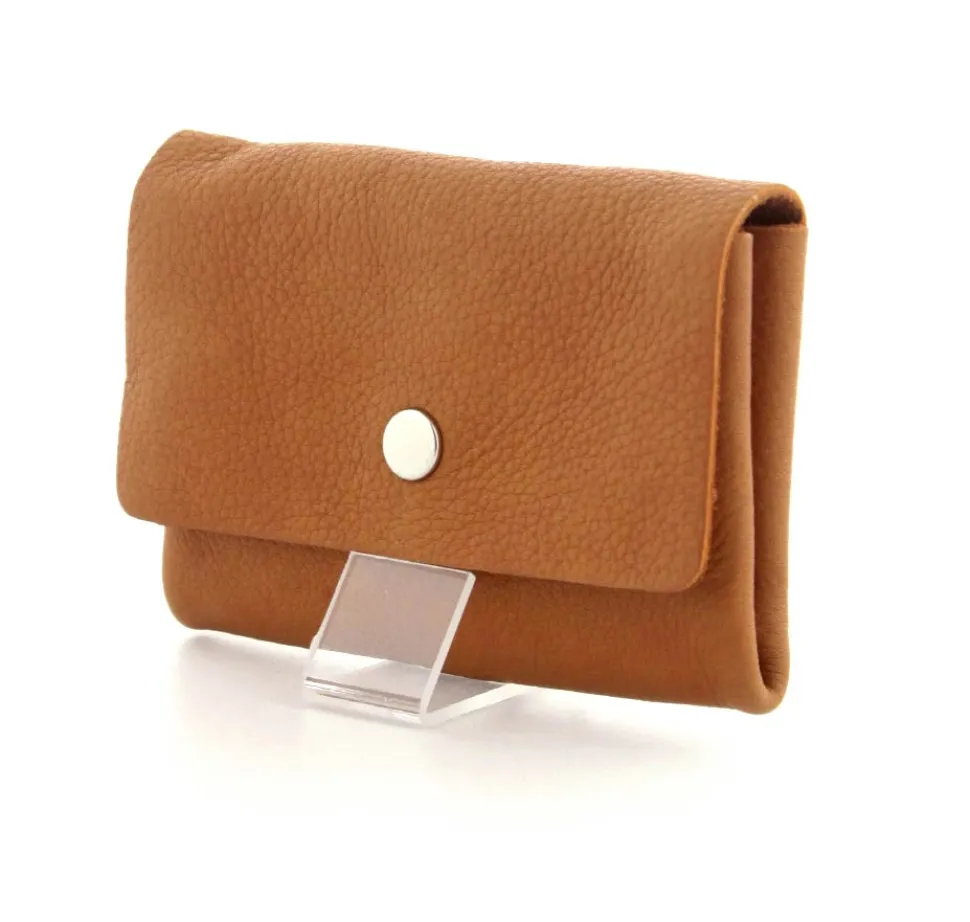Lille skind pung til kreditkort i cognacfarvet skind.