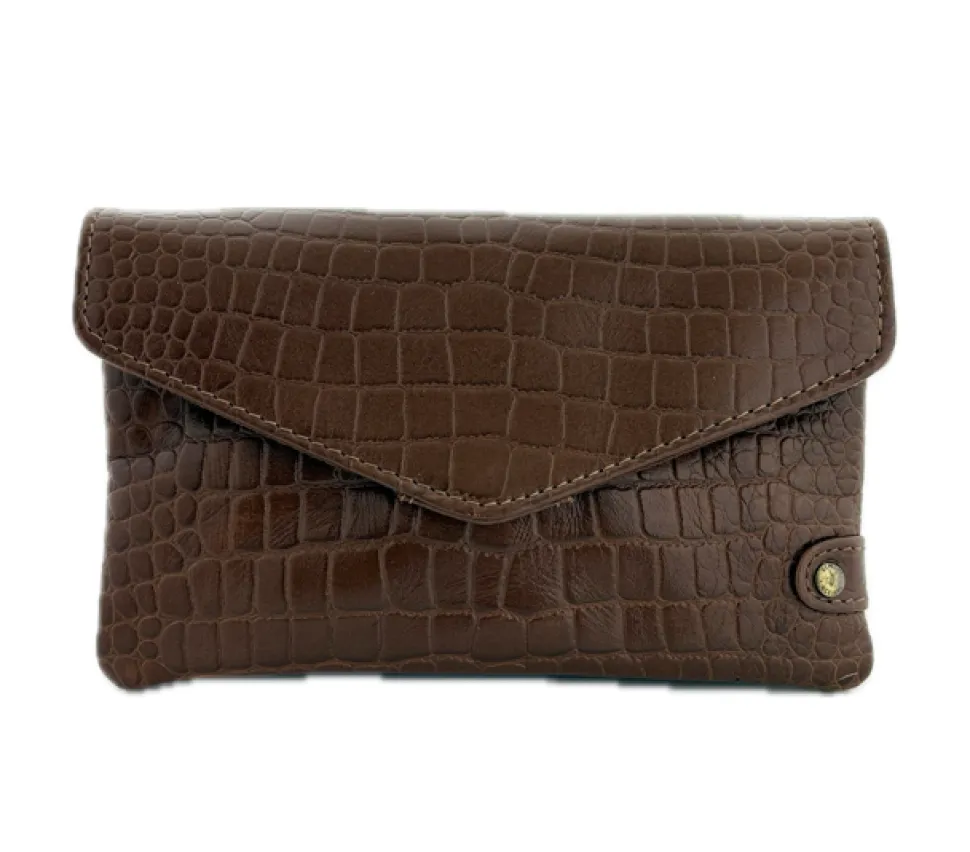 Flot stor pung i crocopræget skind. Pungen har flere rum og kan også rumme en mobil. Der er lavet en strop bagpå, så man kan sætte den fast i bæltet.