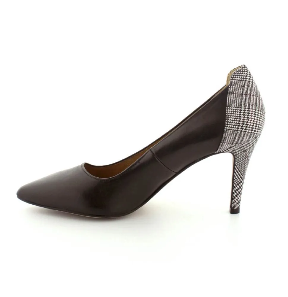 Flot og elegant pump fra Tamaris i sort glat skind med tern på bagkappe og stilethæl. Skoen er med spids snude og tynd stilethæl. Skoen fra Tamaris har skinddækssål indeni med “Touch It” som er en blød sål der former sig efter foden. Glatte såler under bunden som er fleksible.