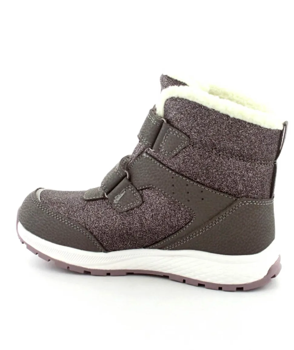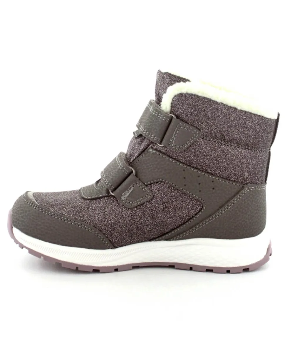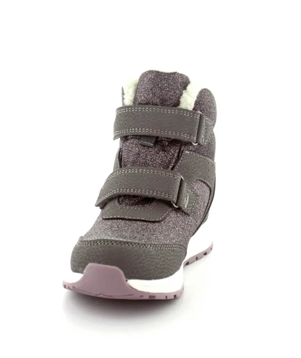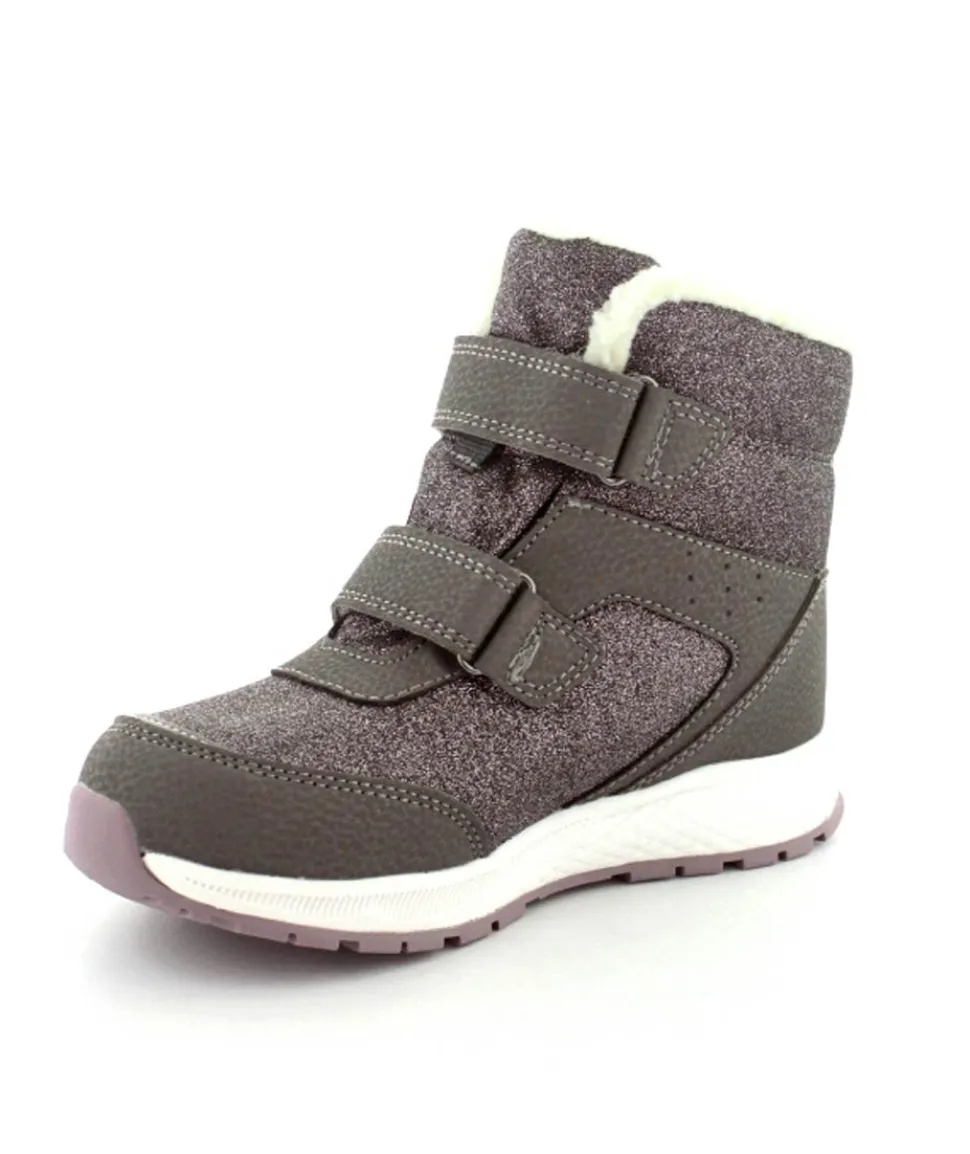 Super smarte vinterstøvler fra Viking model Equip Warm i metallic farve fyldt med glitter på. Støvlen er varmt foeret og med tex membran, så den kan klare sne og kulde. Der er to regulerbare velcropremme og gode fleksible gummisåler under hele bunden.