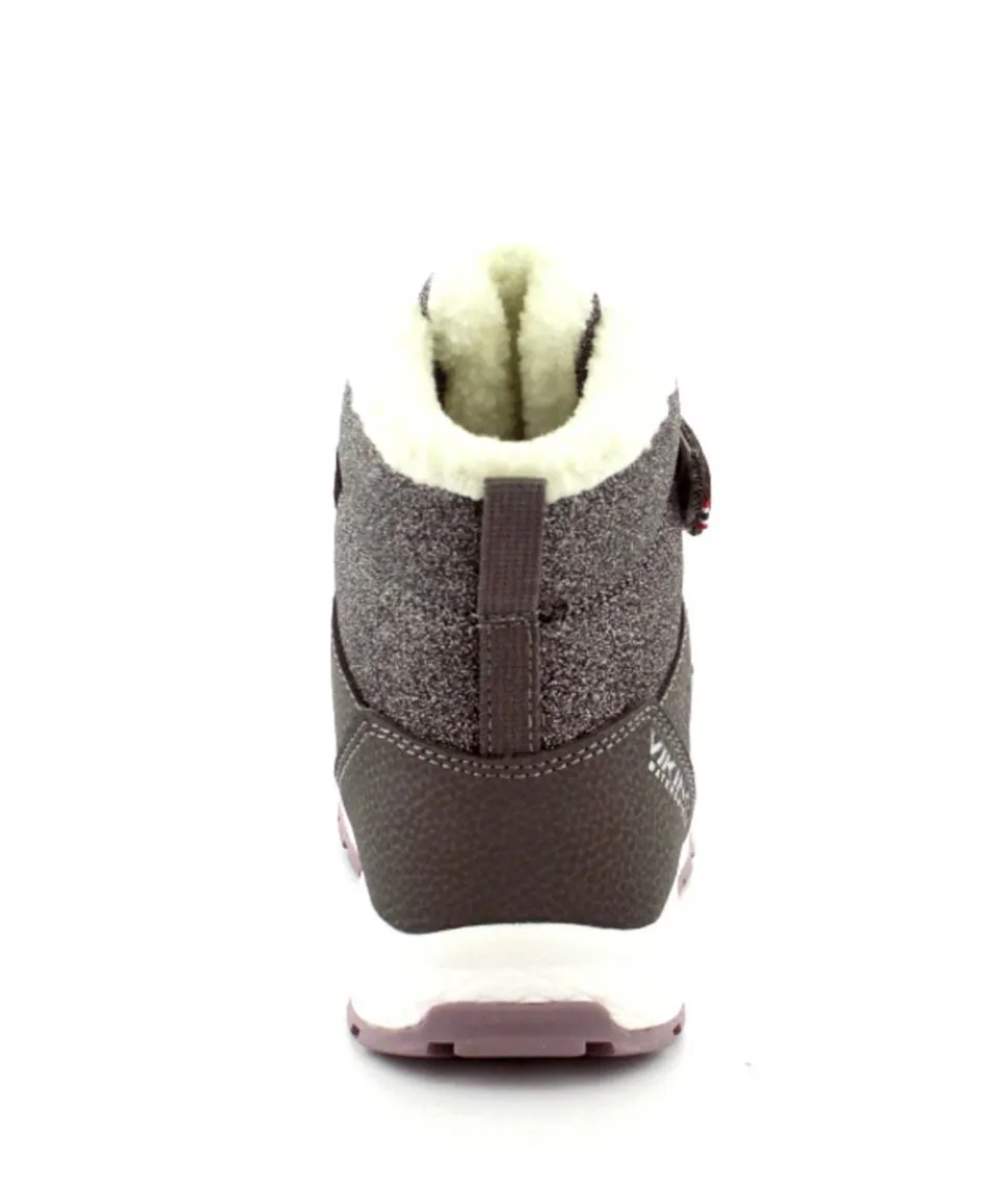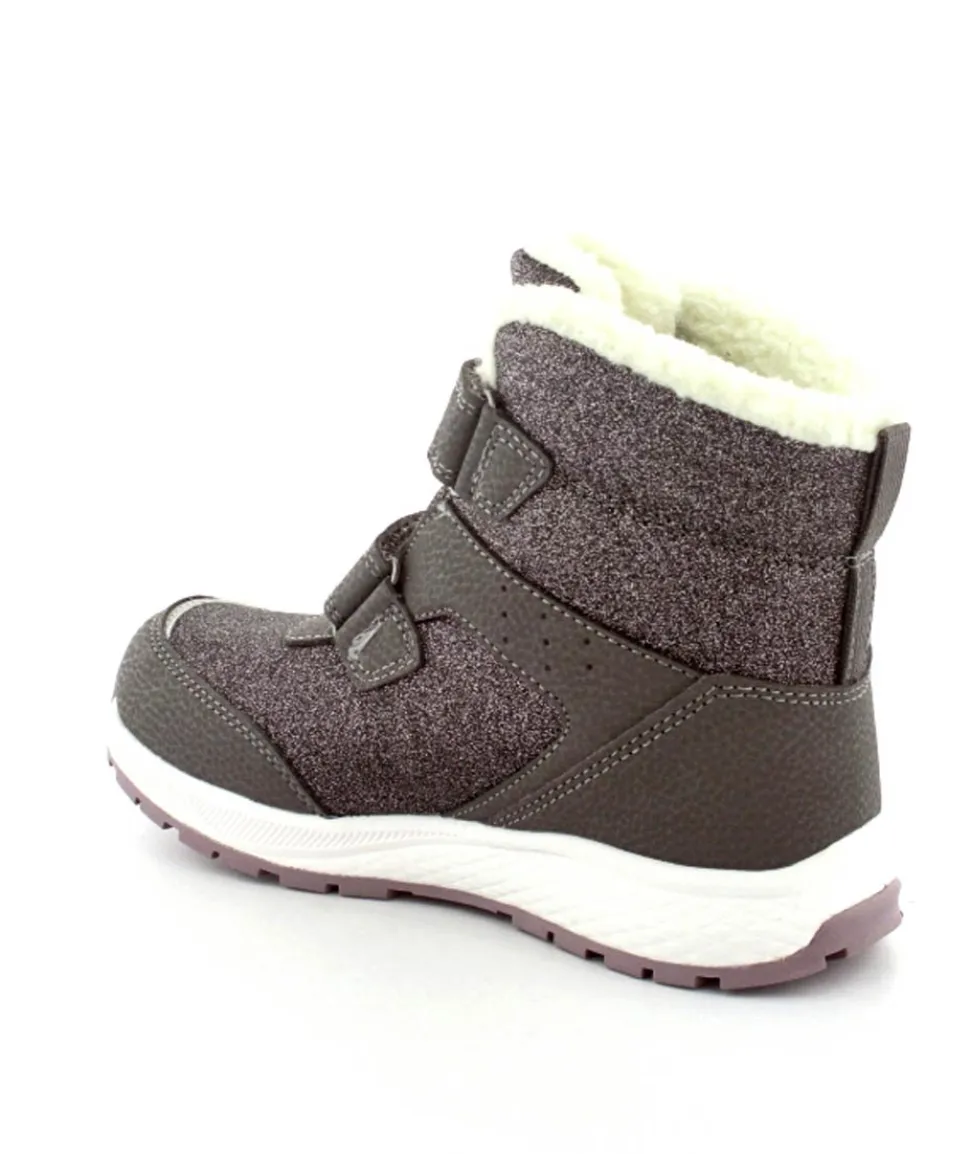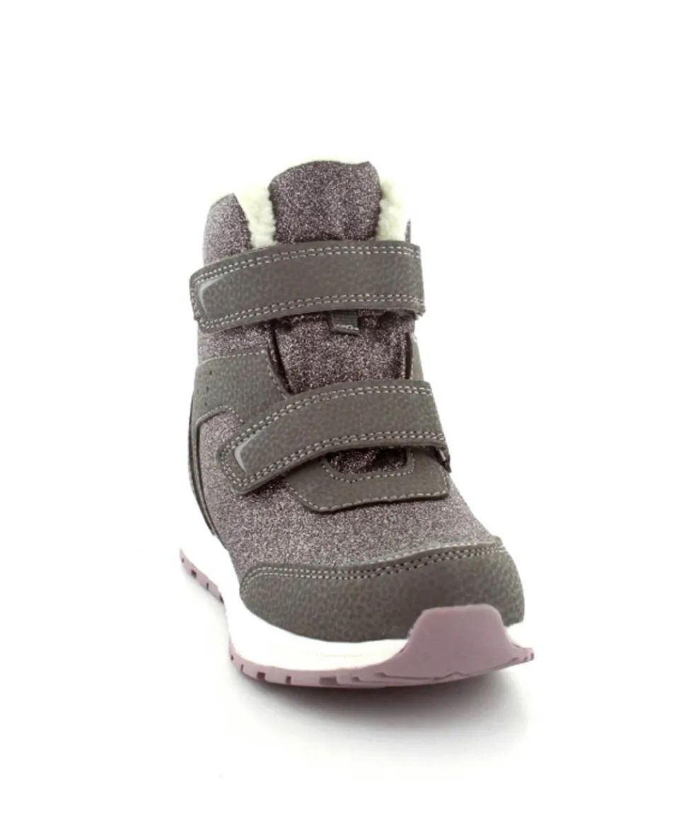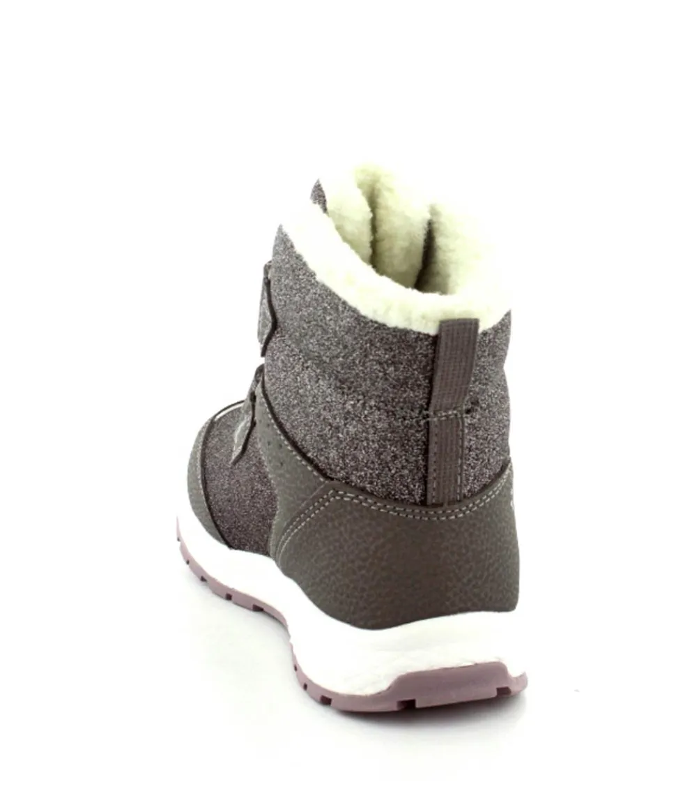 Super smarte vinterstøvler fra Viking model Equip Warm i metallic farve fyldt med glitter på. Støvlen er varmt foeret og med tex membran, så den kan klare sne og kulde. Der er to regulerbare velcropremme og gode fleksible gummisåler under hele bunden.