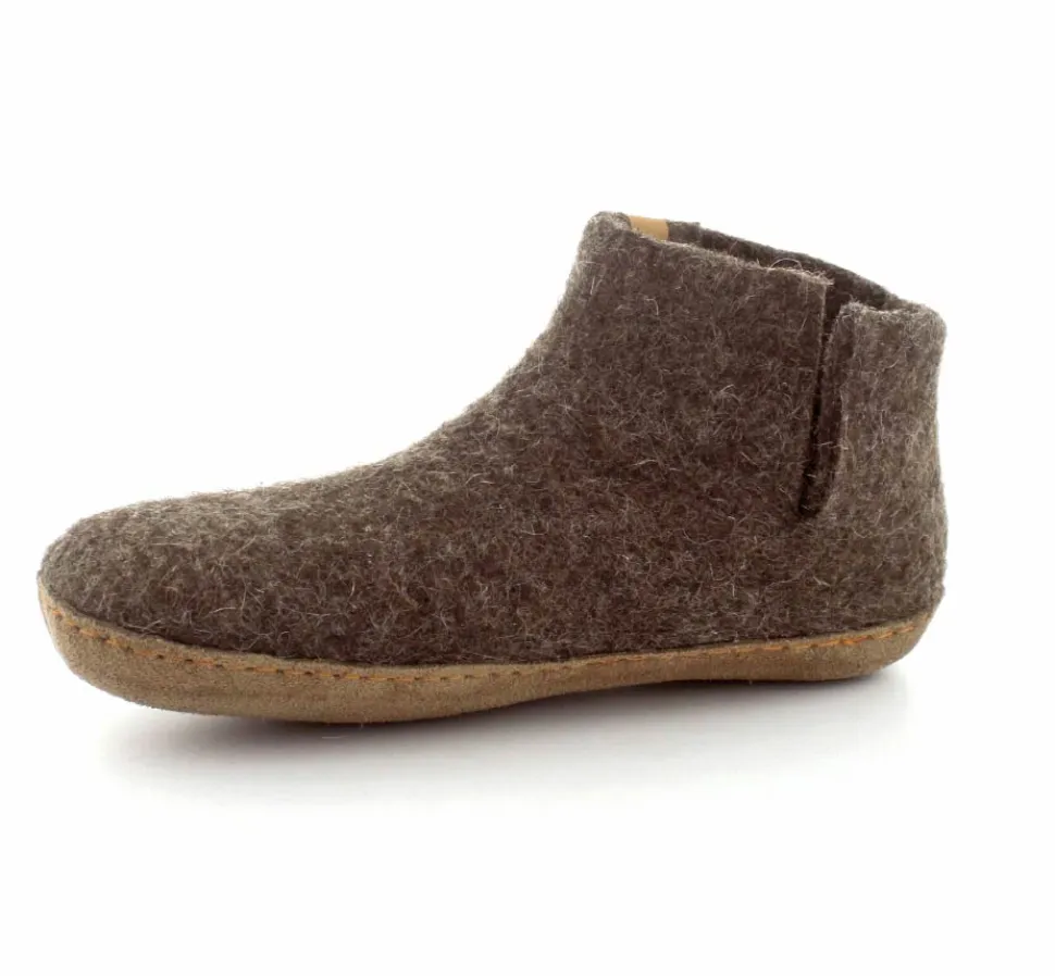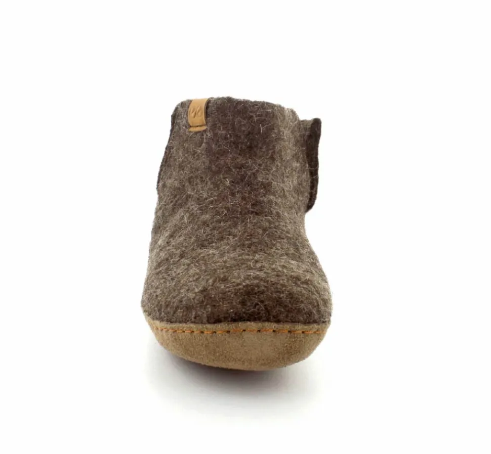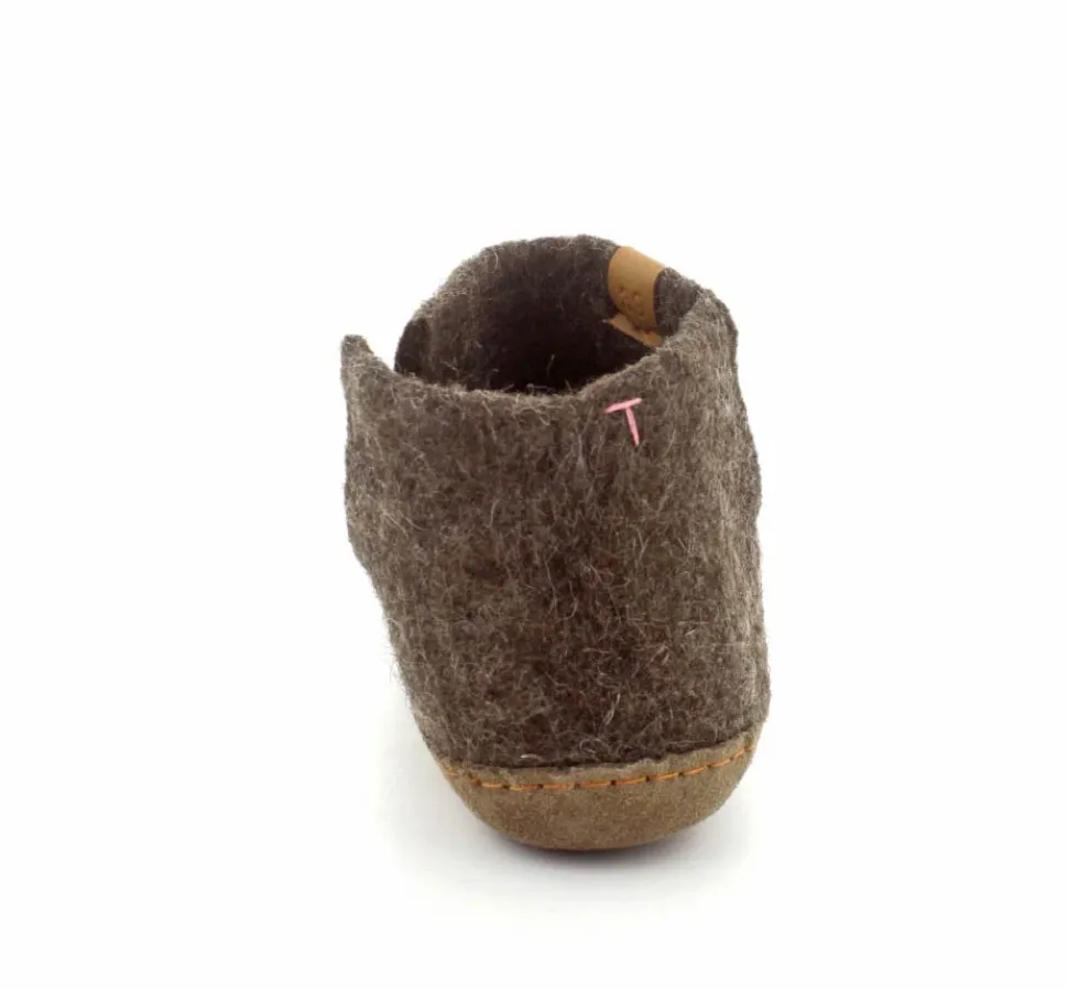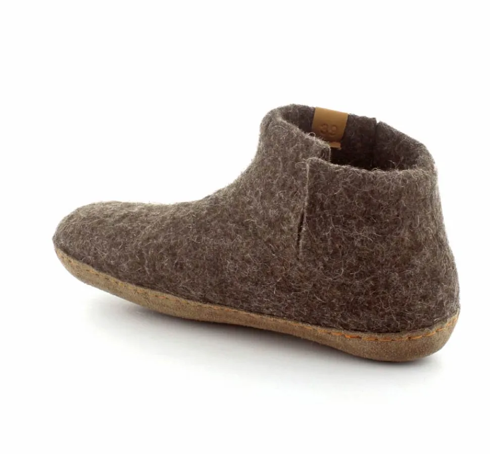 Skønne uldfutter lige til at trække på fra Green Comfort model Everest. Flot brun farve. Hjemmeskoen er håndlavet og med stødabsoberende såler. Rusind under bunden og det hele i rigtig uld. Super lækker hjemmesko der former sig efter foden ved brug. Den er lidt til den lille side.