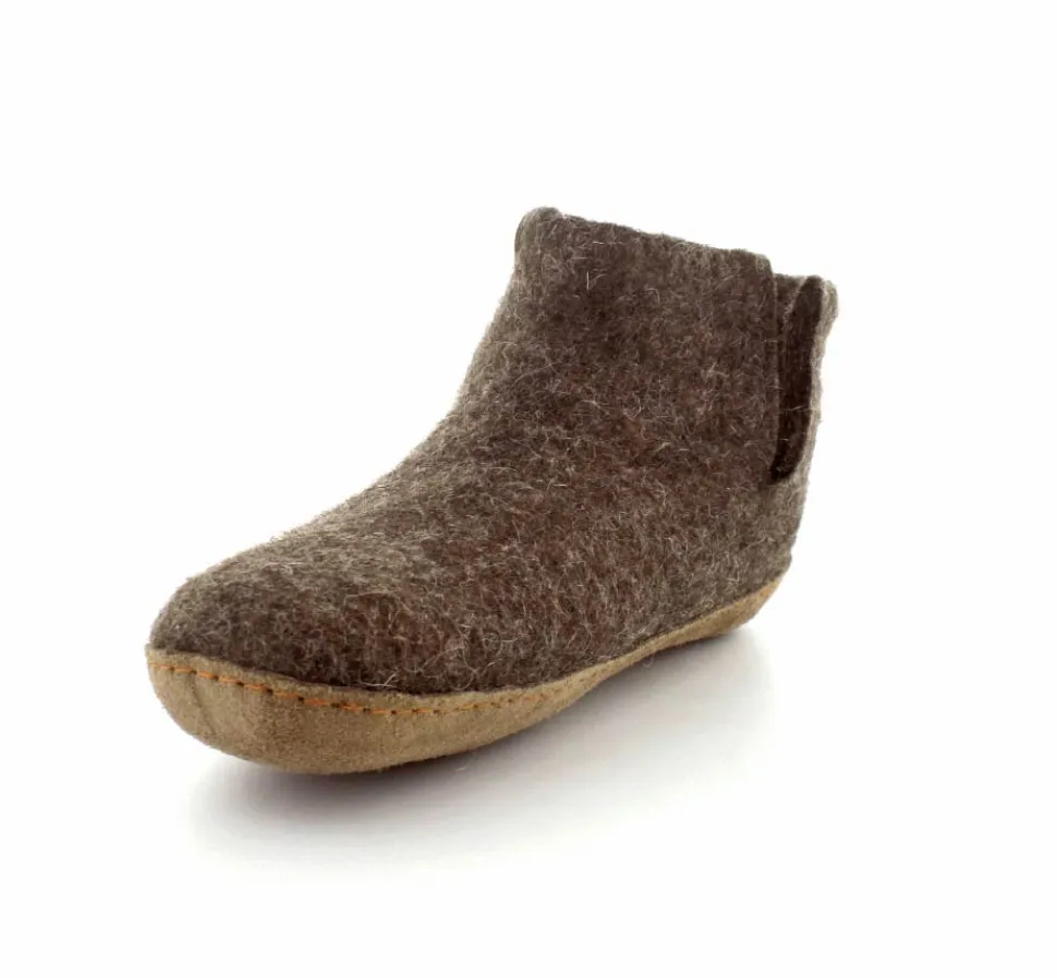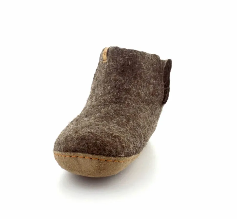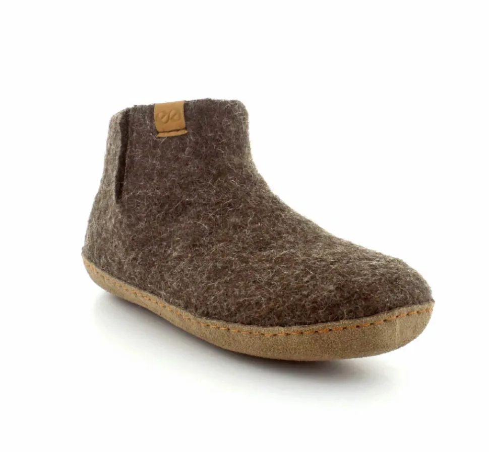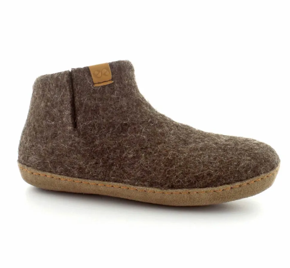 Skønne uldfutter lige til at trække på fra Green Comfort model Everest. Flot brun farve. Hjemmeskoen er håndlavet og med stødabsoberende såler. Rusind under bunden og det hele i rigtig uld. Super lækker hjemmesko der former sig efter foden ved brug. Den er lidt til den lille side.