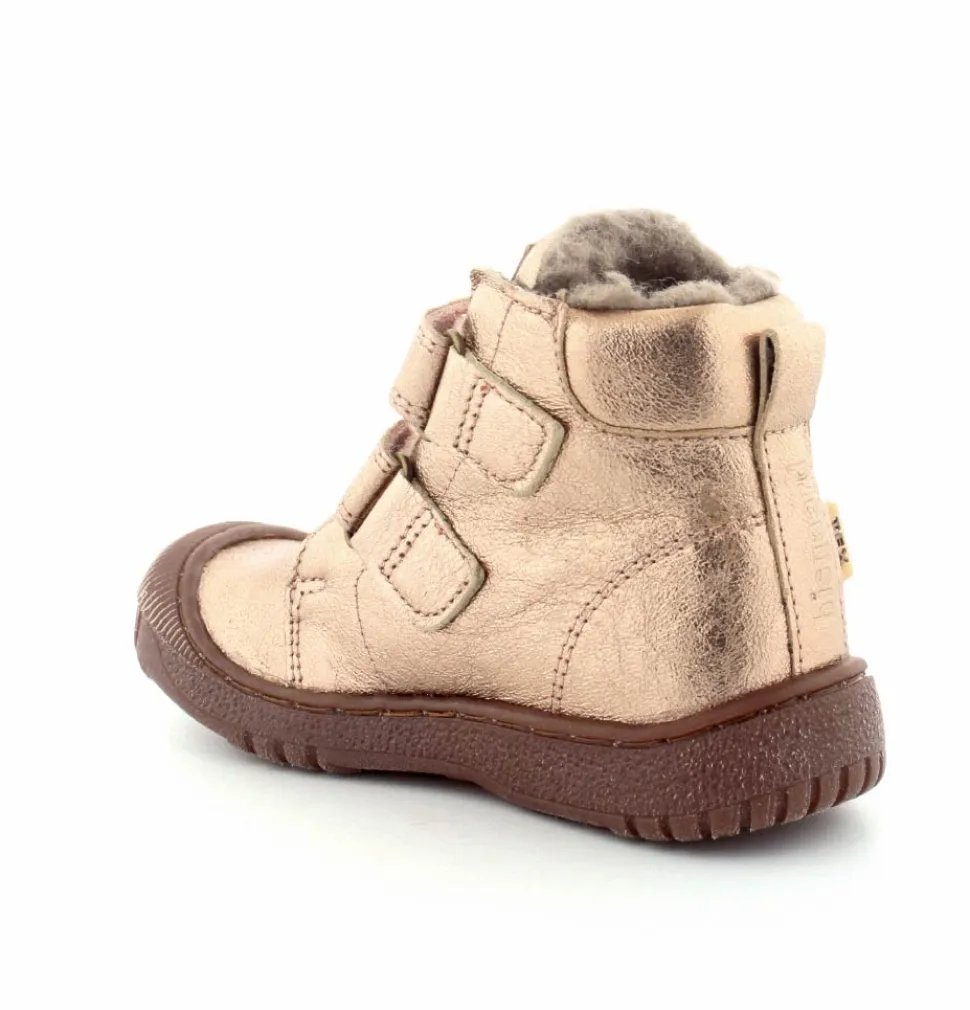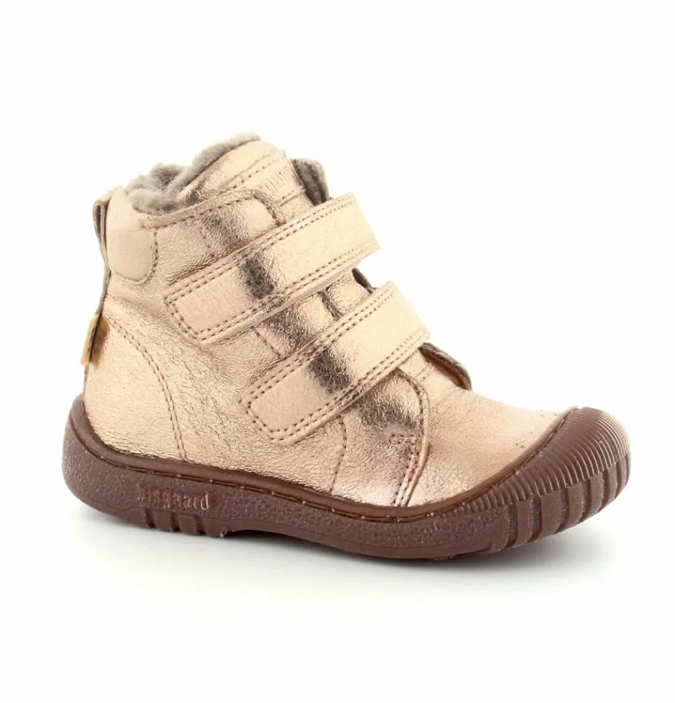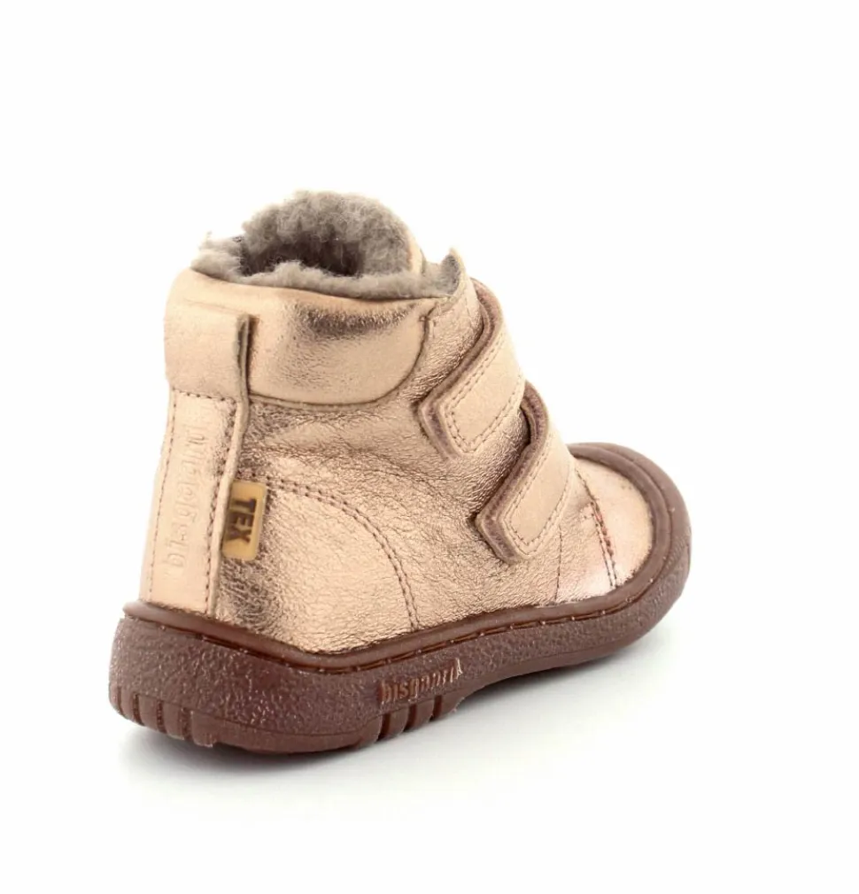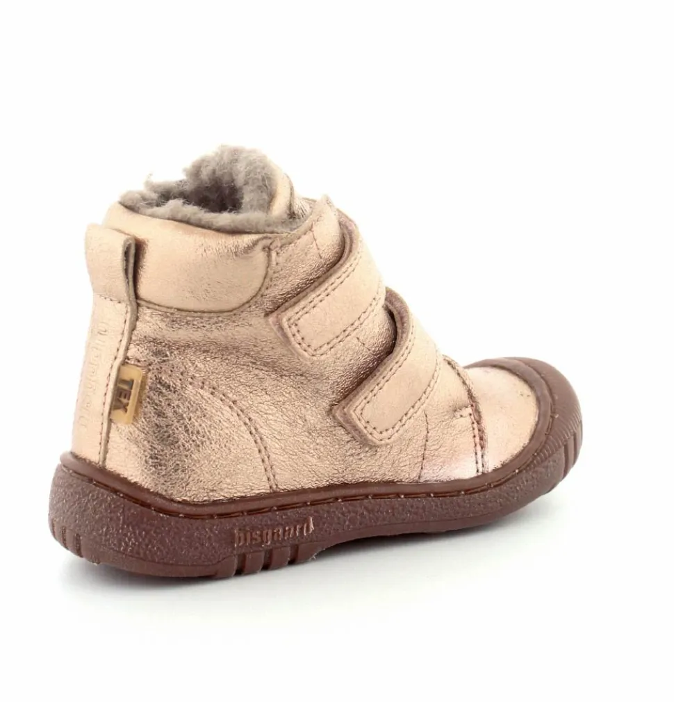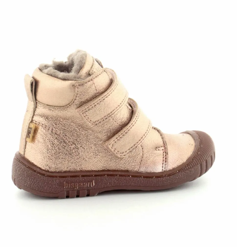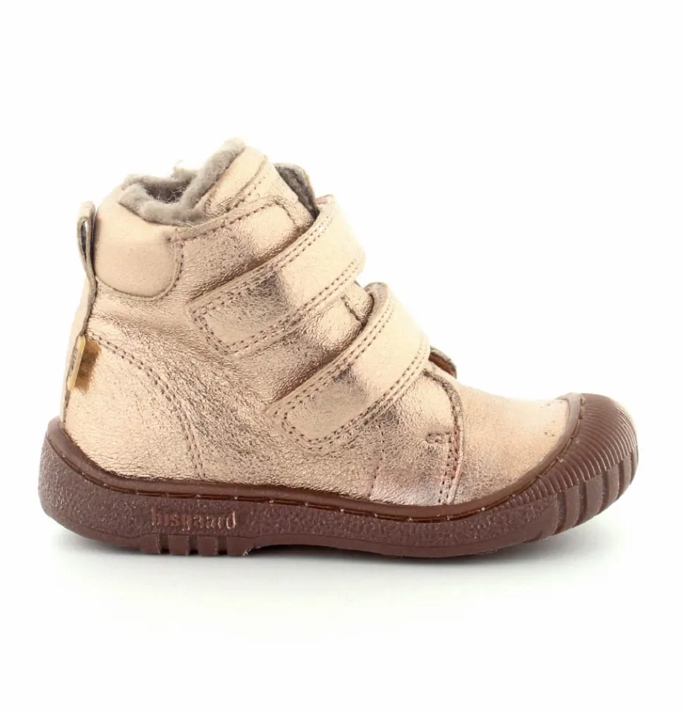 Super flotte og rigtig gode vinterstøvler fra Bisgaard i en flot bronzefarvet skind. Støvlerne er foeret med rigtig uldfoer, har gummisåler under bunden og er med tex membran, så den kan klare sne og kulde. Støvlen er nem at komme i med to regulerbare velcroremme.