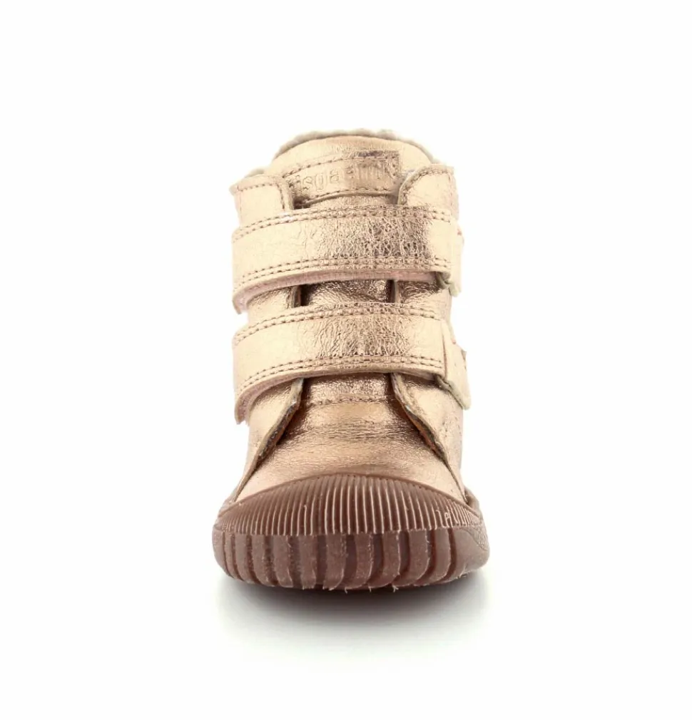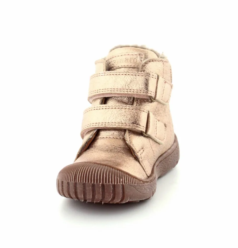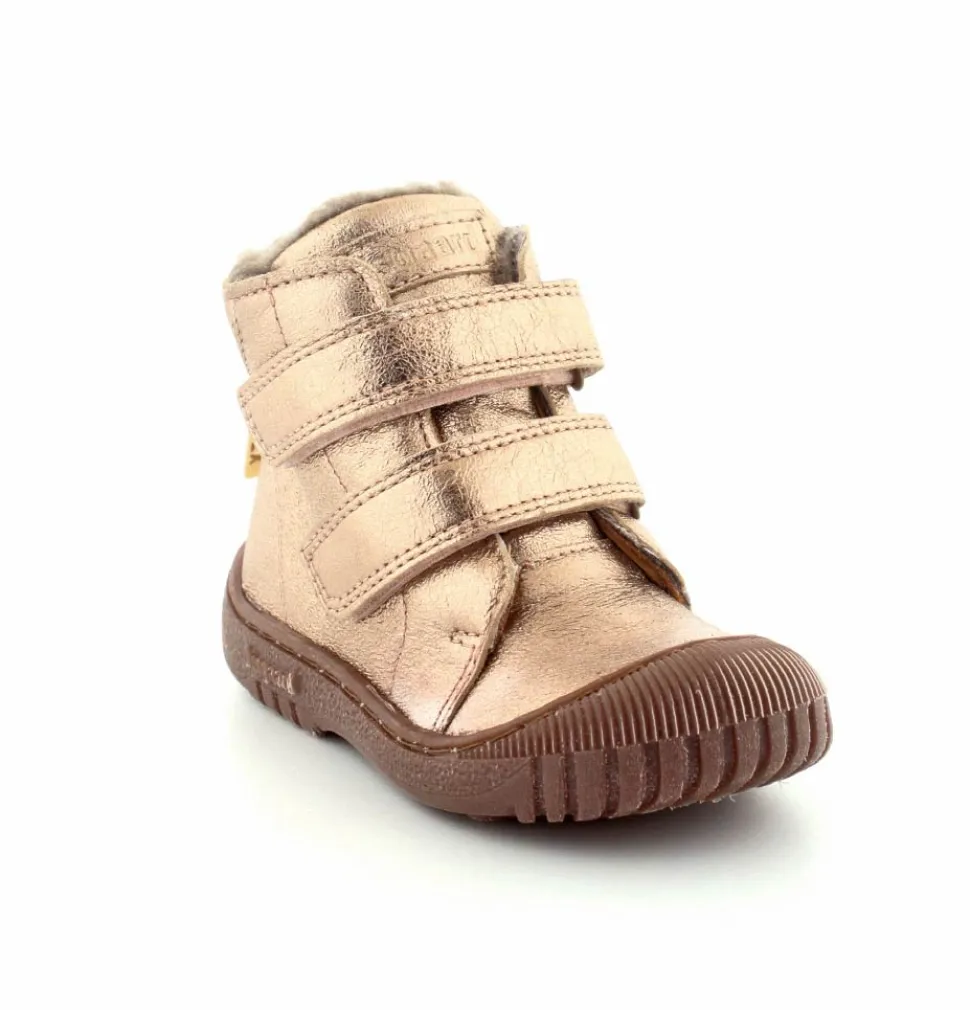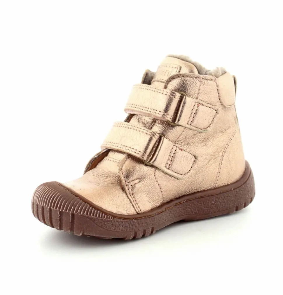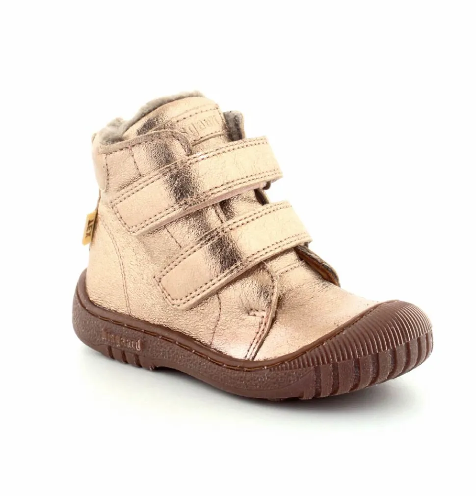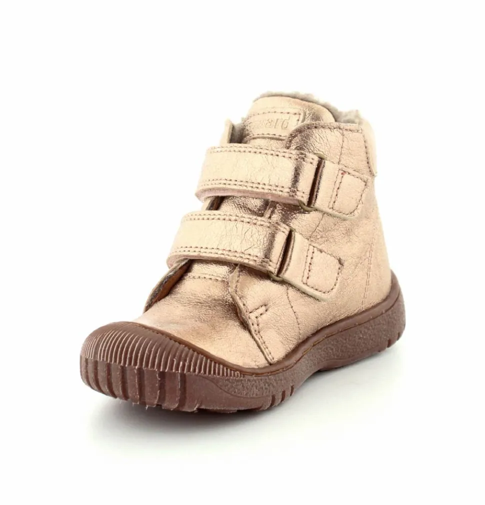 Super flotte og rigtig gode vinterstøvler fra Bisgaard i en flot bronzefarvet skind. Støvlerne er foeret med rigtig uldfoer, har gummisåler under bunden og er med tex membran, så den kan klare sne og kulde. Støvlen er nem at komme i med to regulerbare velcroremme.