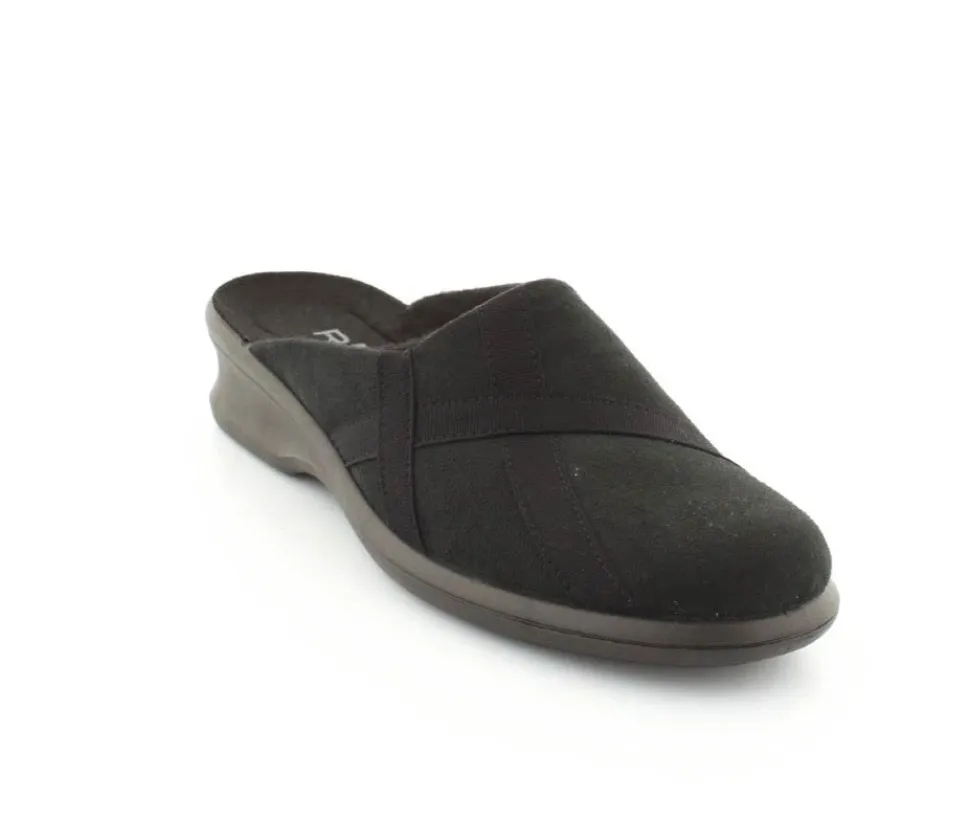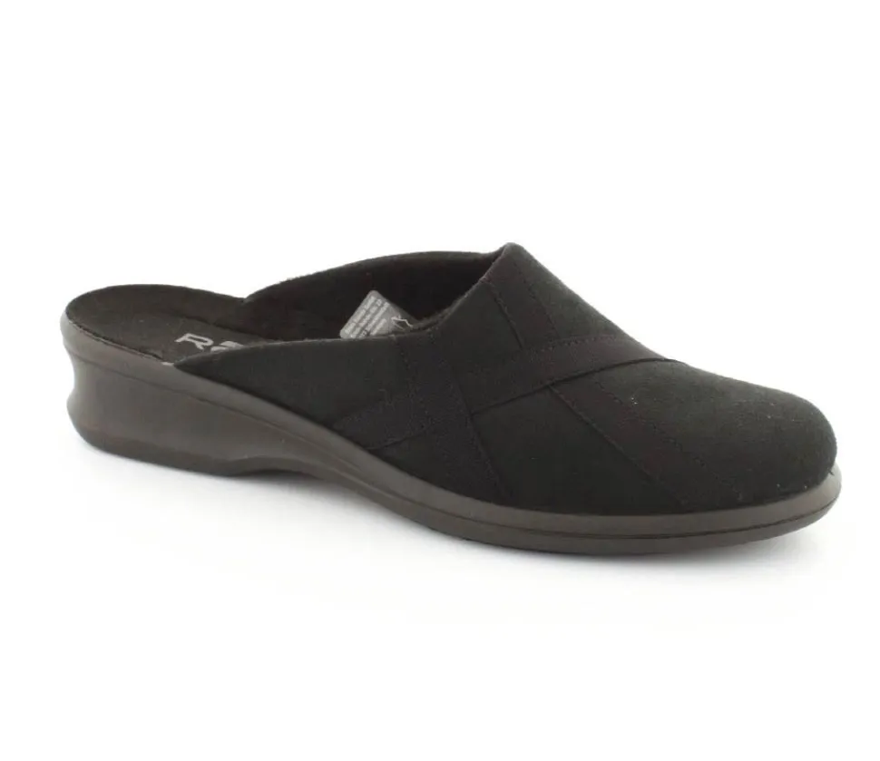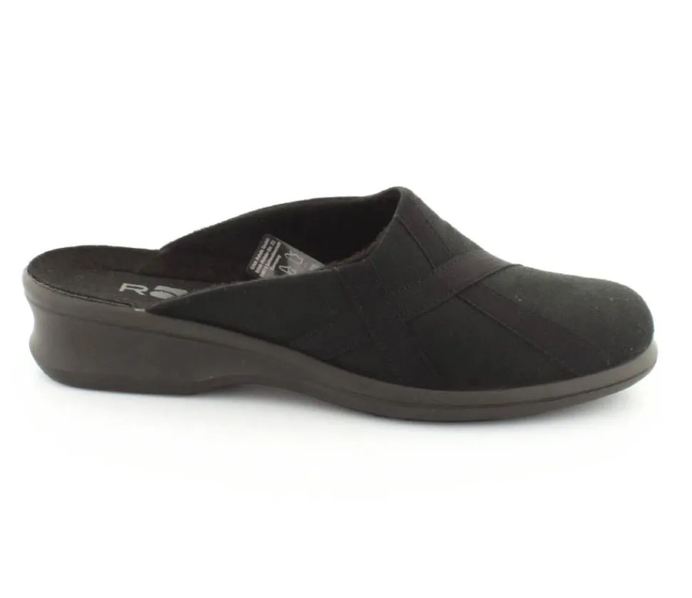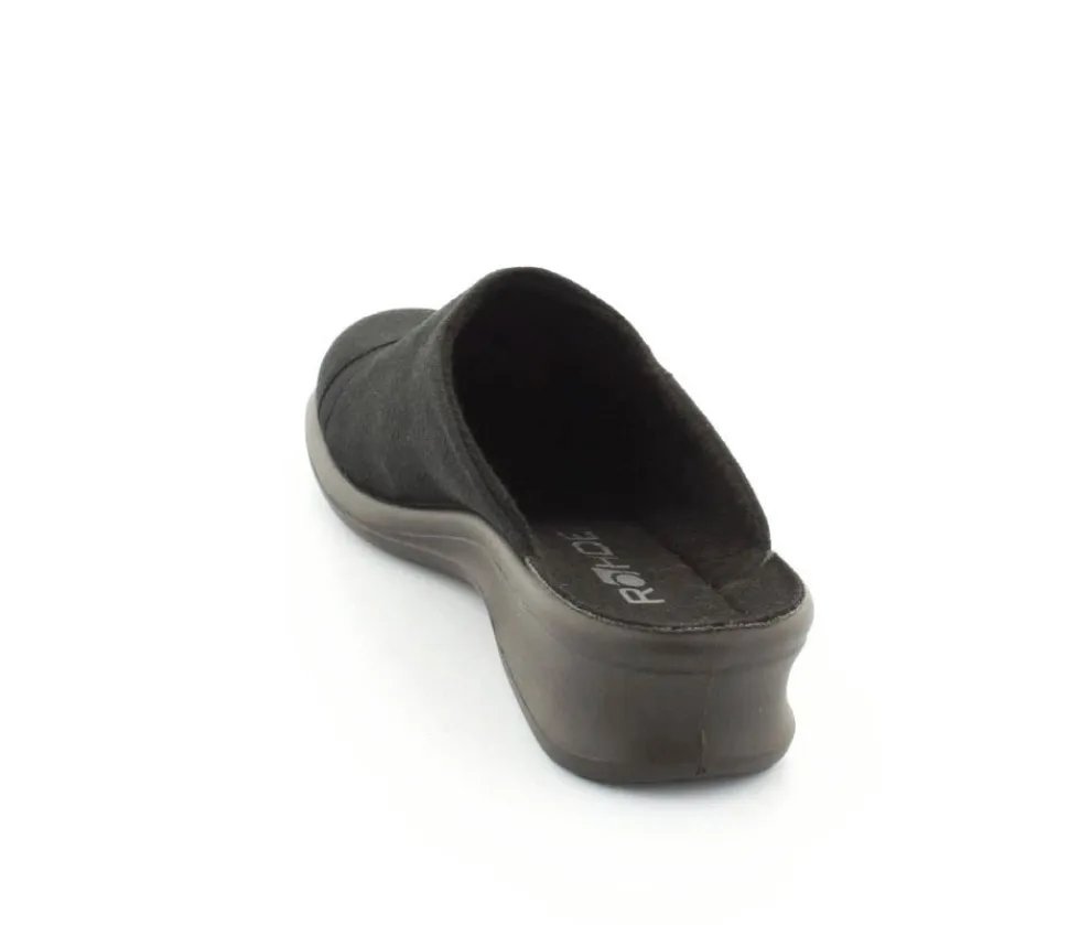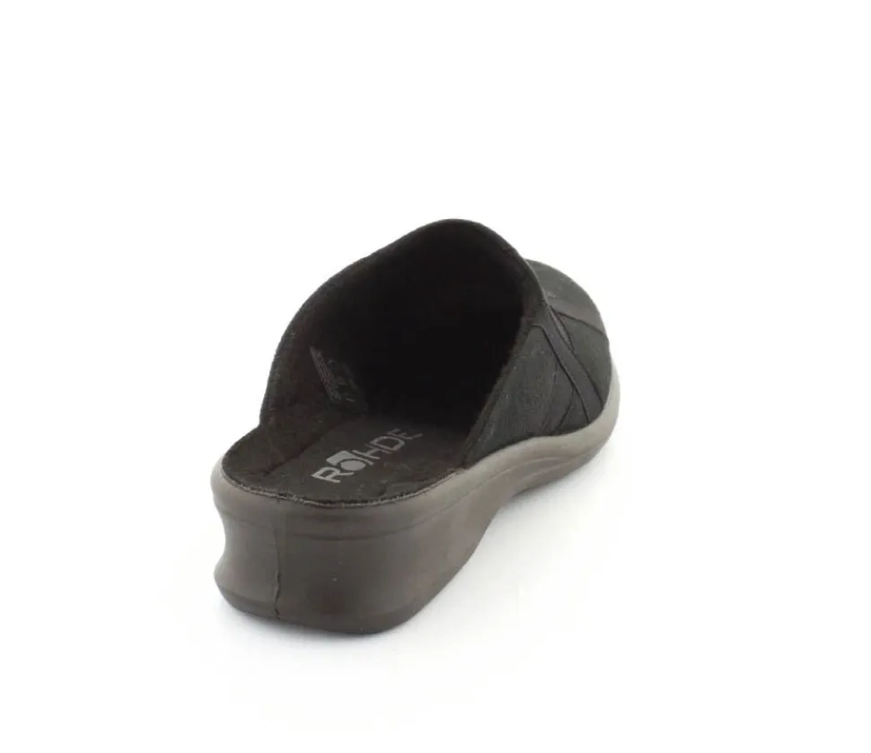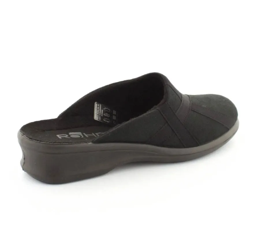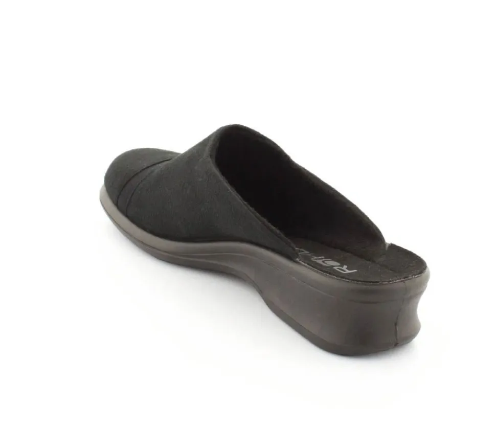 Hjemmesko fra Rohde lige til at stikke i. Hjemmeskoen er lavet i et blødt materiale i sort microfiber. Lunt foer indvendigt. Sålerne er bløde og fleksible og hælen er 4 cm høj.