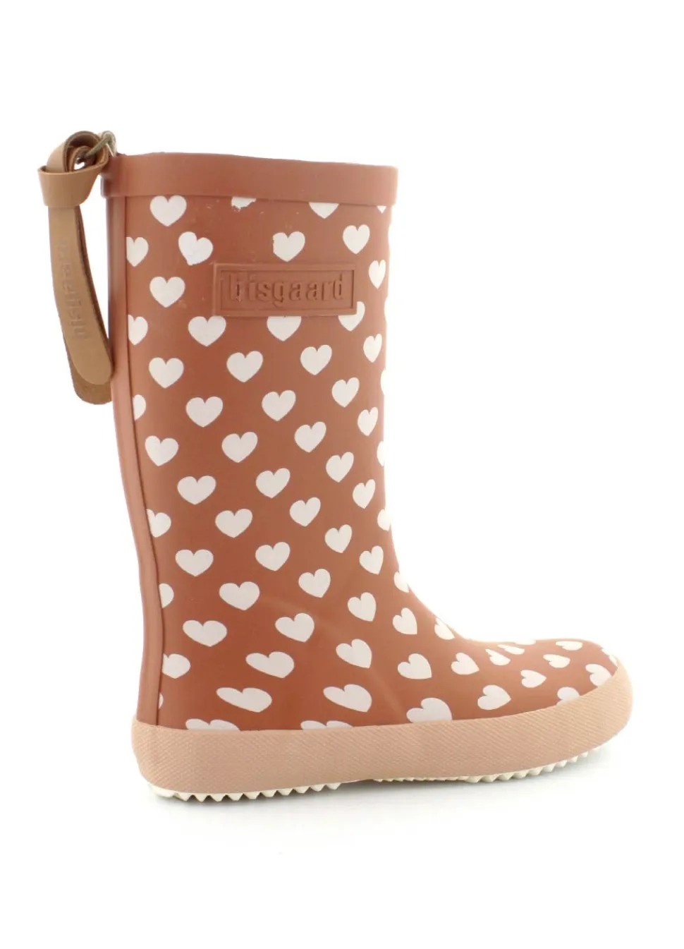 Skønne gummistøvler fra Bisgaard med små hjerter på. Det er den lange og smalle model fra Bisgaard, så den sidder flot til på fod og ben. Dejlig bløde gummisåler, naturgummi og bomuld foer indeni.