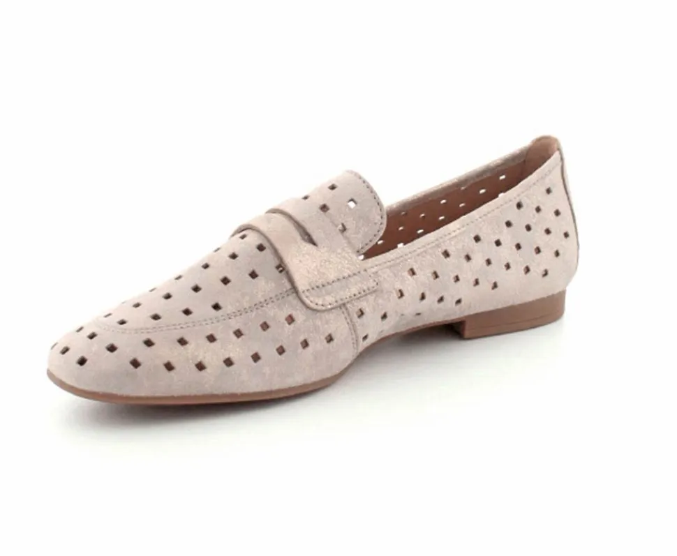 Flot og elegant loafer fra Gabor i blødt nubuck skind. Der er skåret små huller i skindet så den er dejlig åndbar og let at have på. Bløde skindsåler indeni og fleksible såler under bunden.