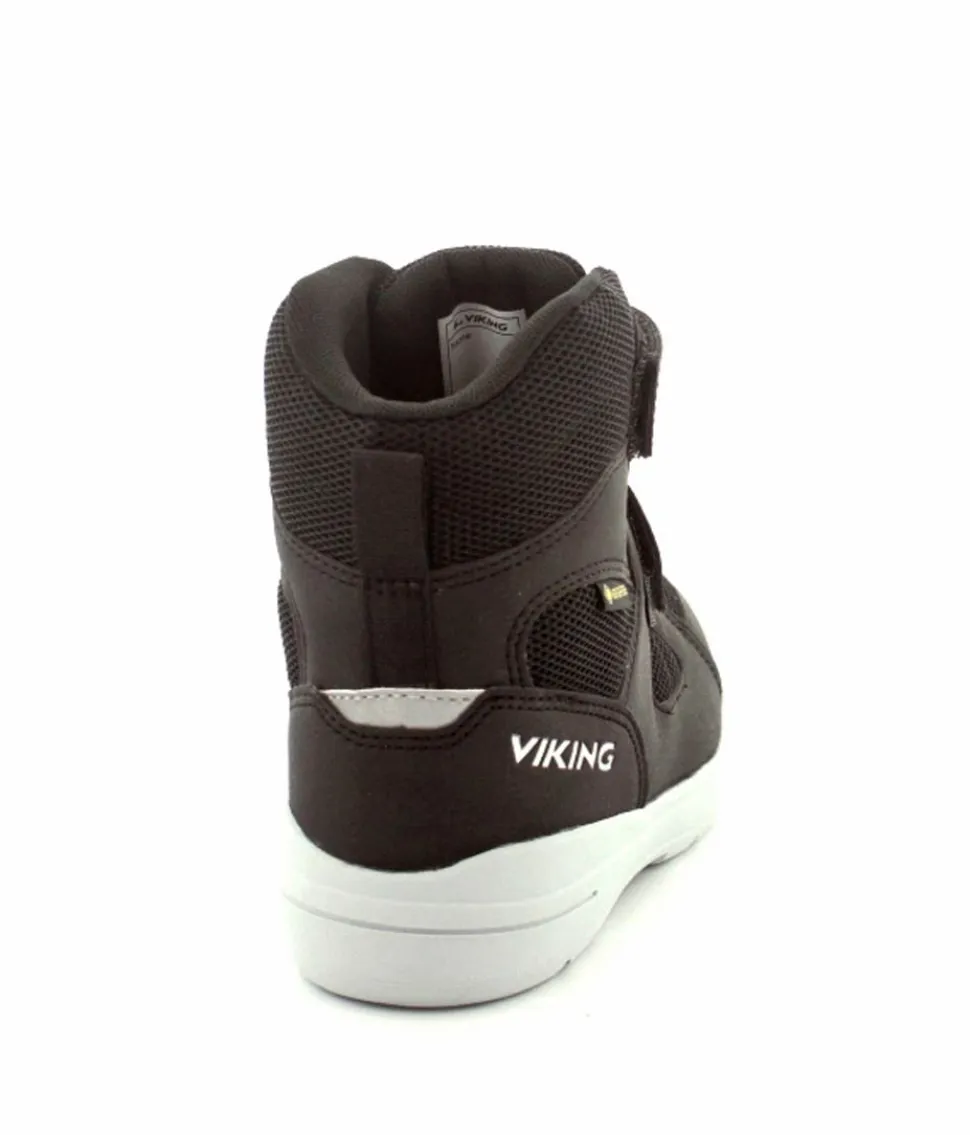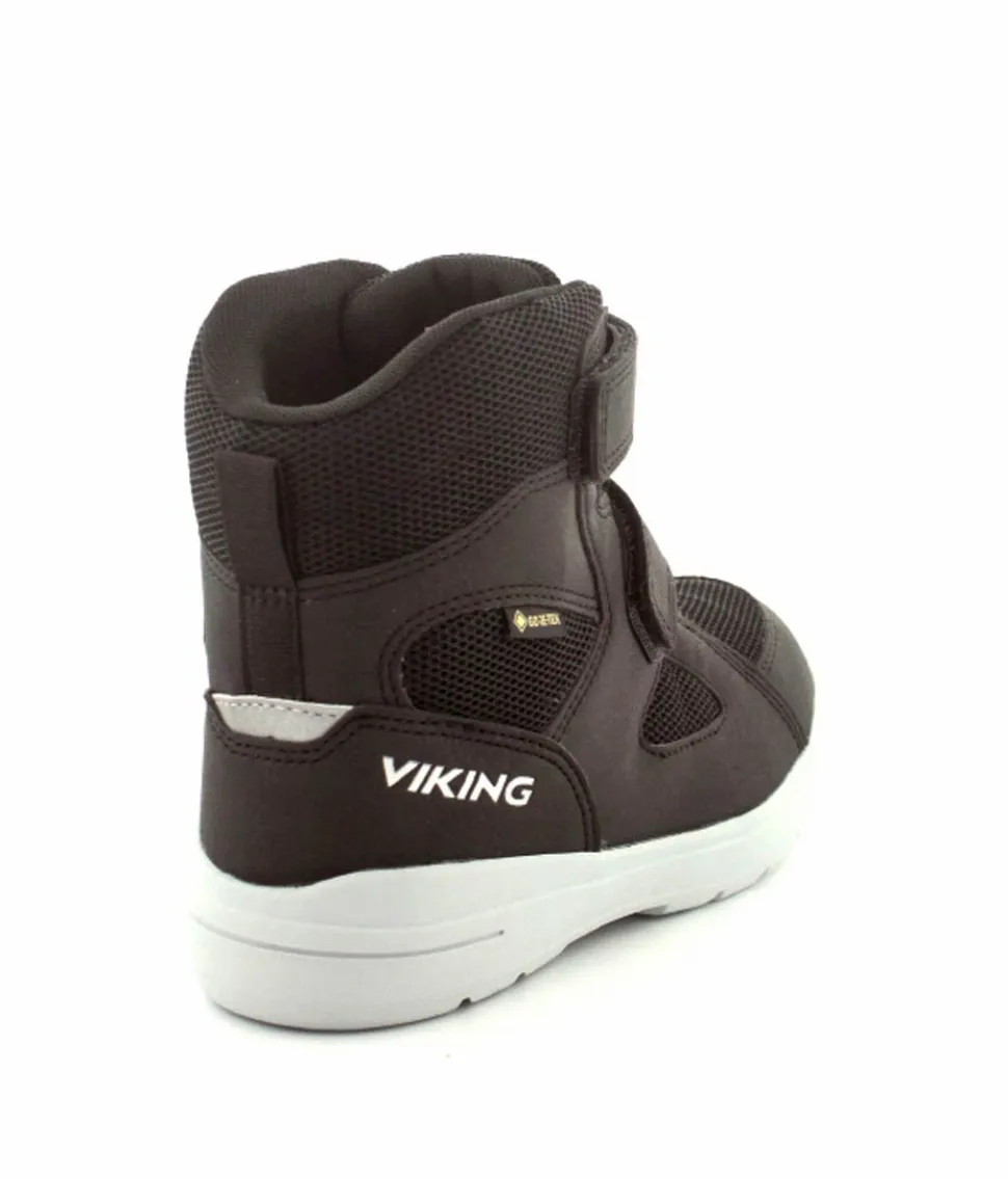Gode og praktiske vinterstøvler fra Viking model Fun Warm GTX i sort. Støvlen er med to regulerbare velcroremme, varmt foer, Gore-Tex membran så den kan klare sne og kulde. Gode og solide gummisåler under hele bunden. Reflekser på støvlen.