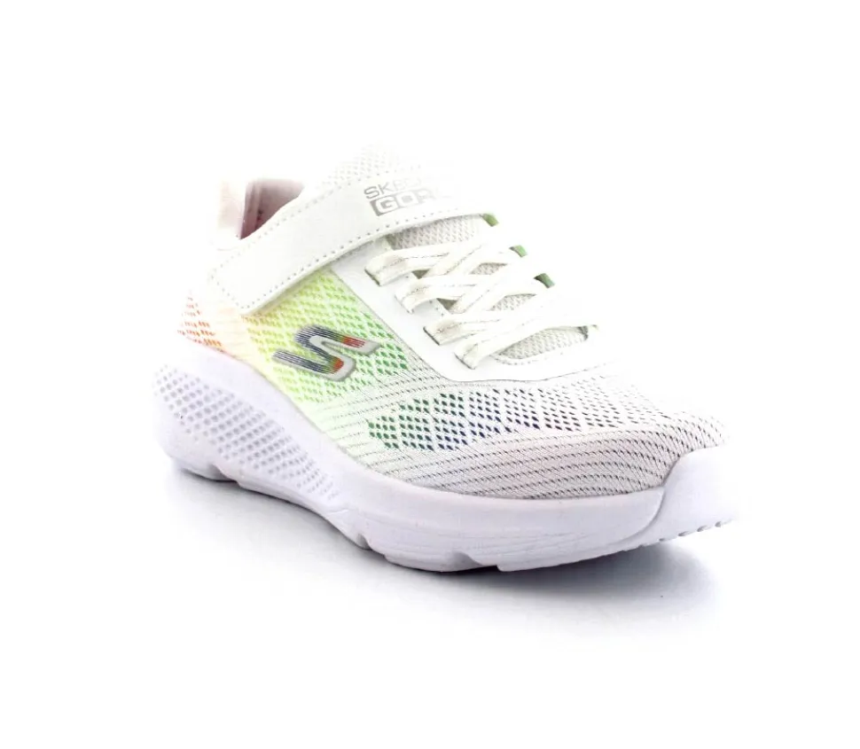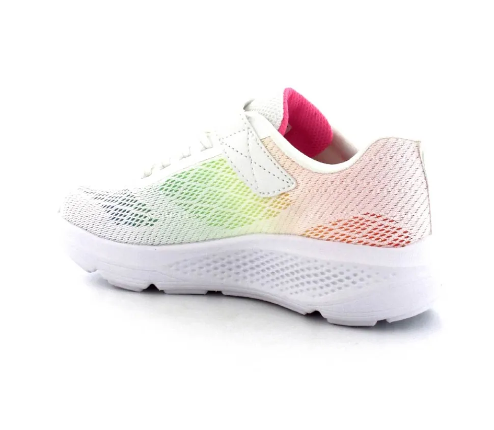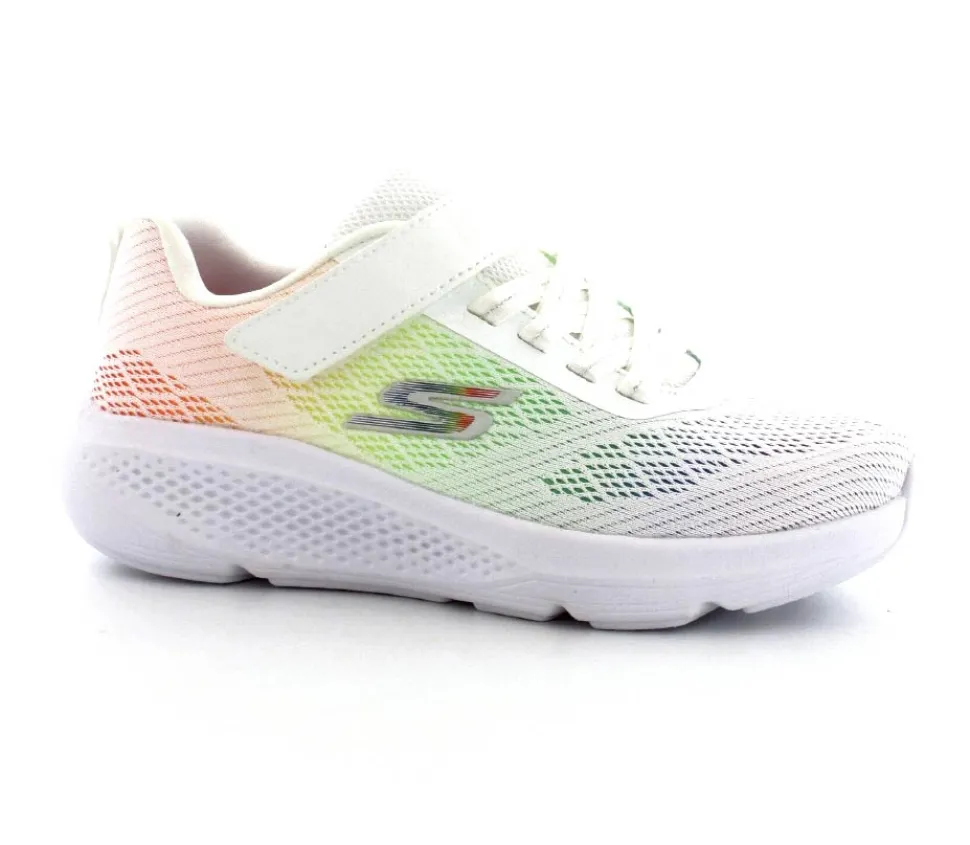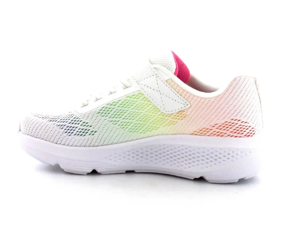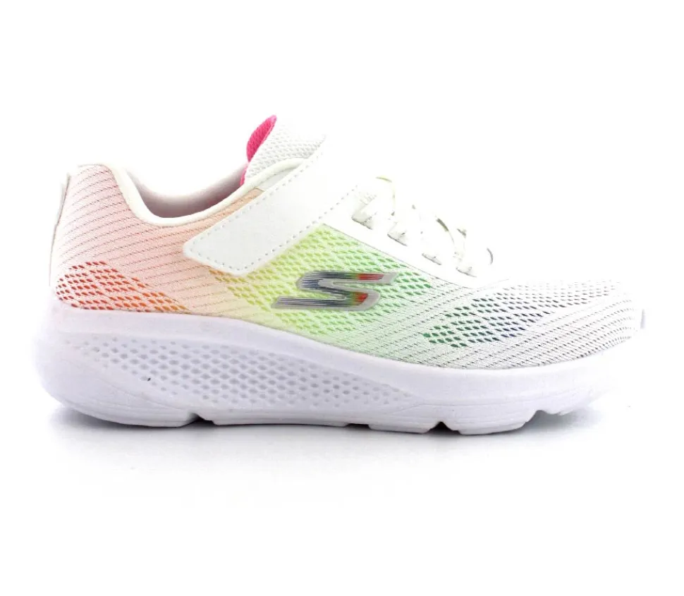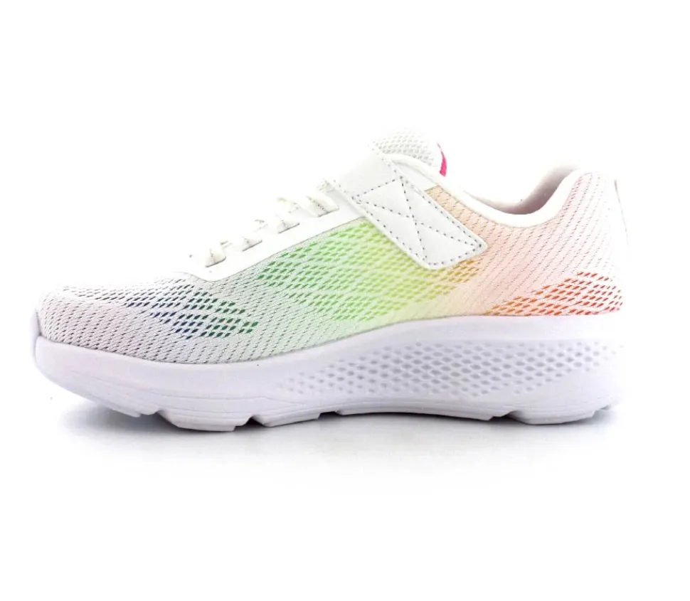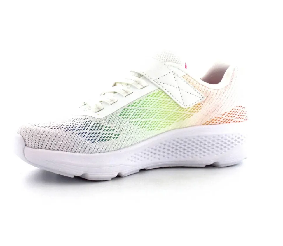 Super fed sneaks fra Skechers model Go Run Elevate i hvid med forskellige farver på som en regnbue. Skoen er perfekt til træning og løb men kan også bruges som hverdagssko. Regulerbar velcrorem og elastiksnøre. Skoen er lidt til den store side.