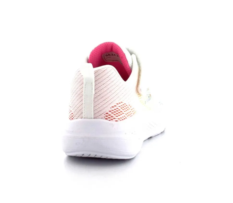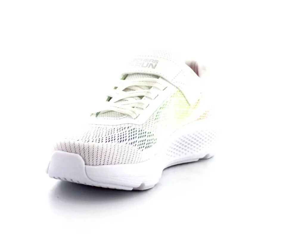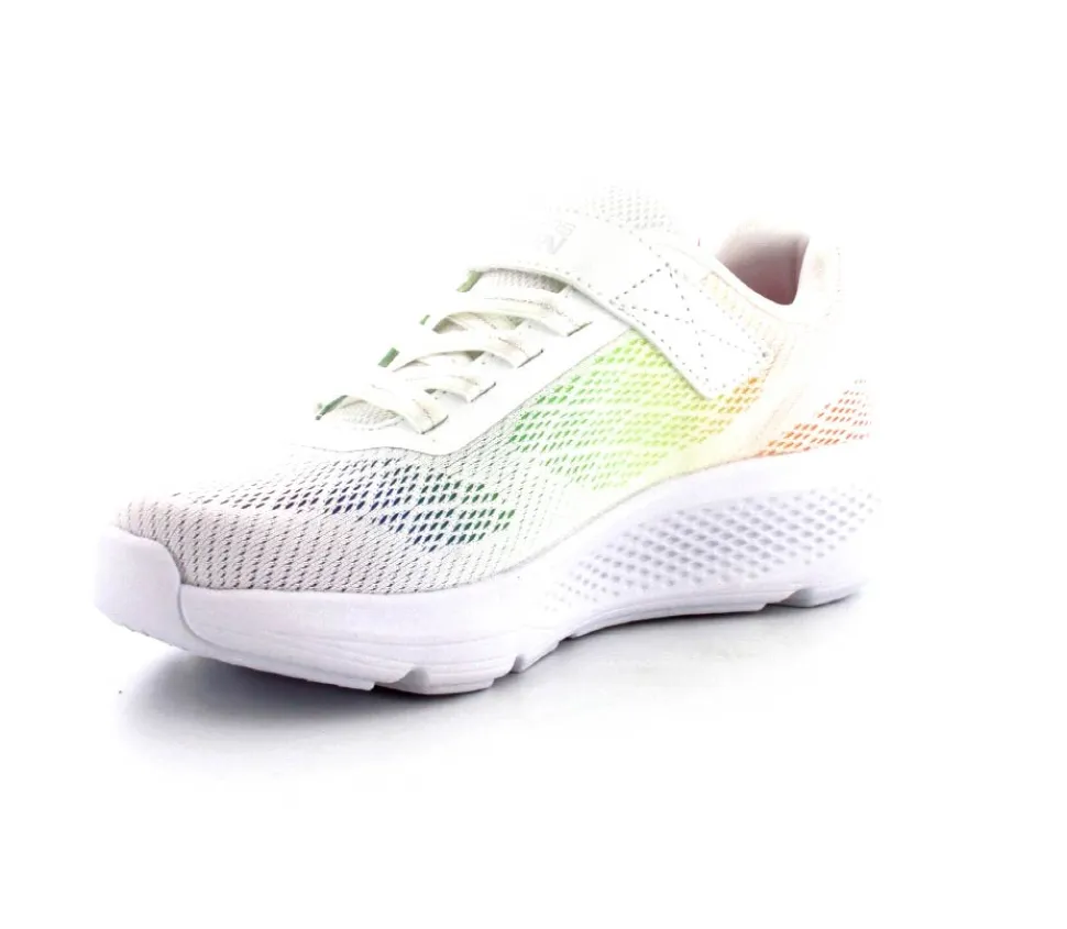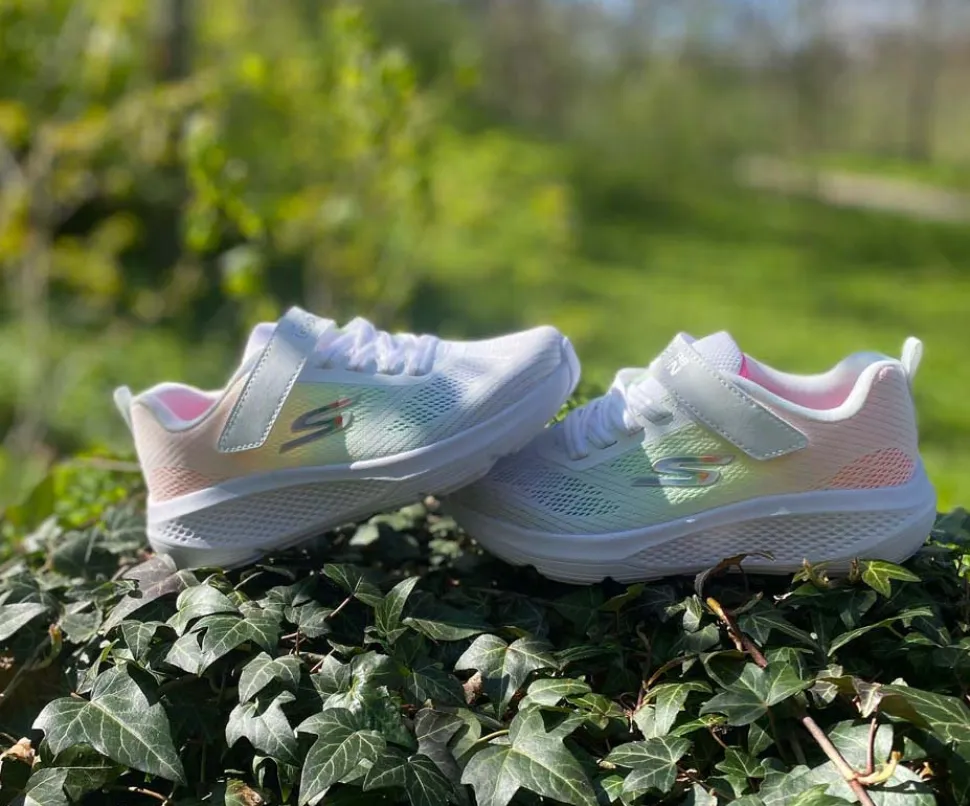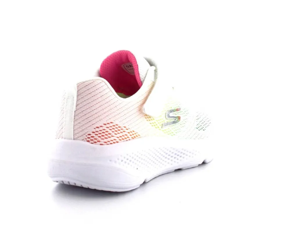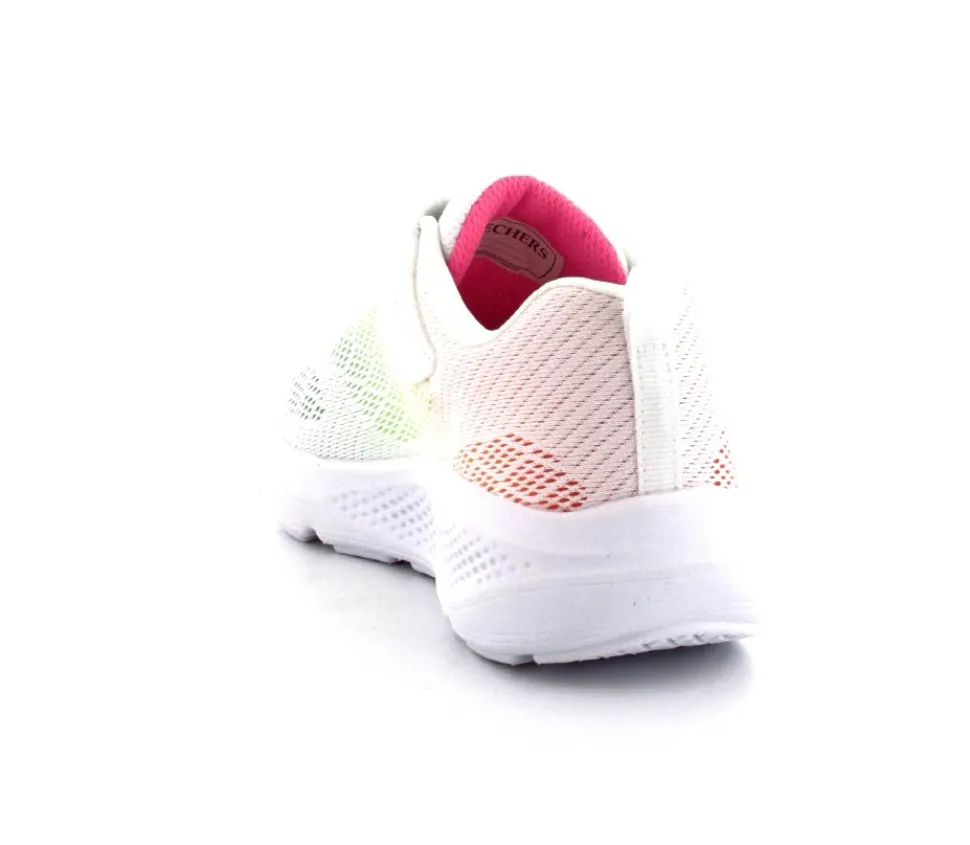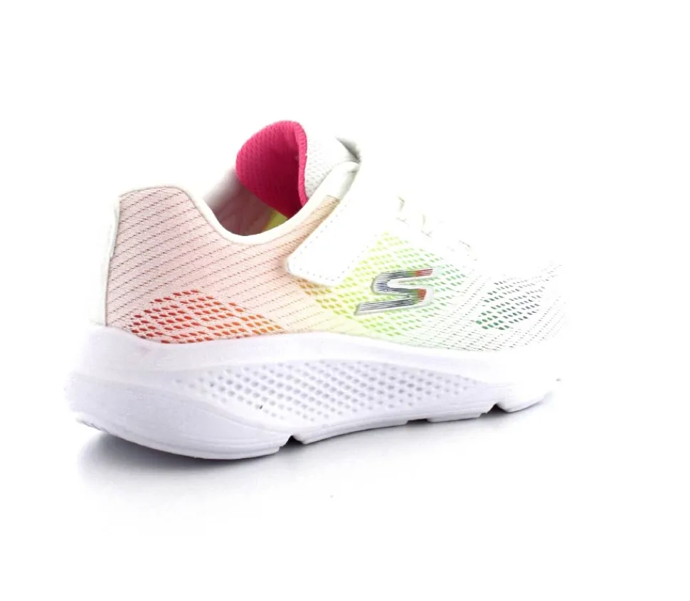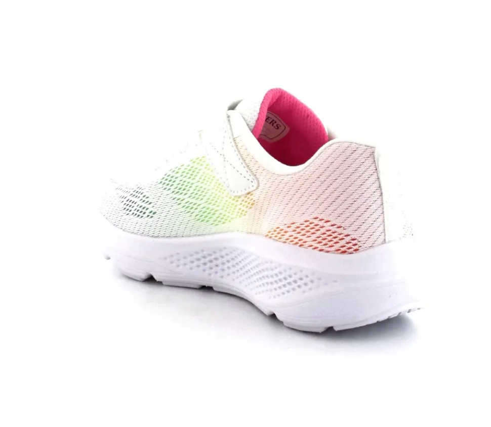 Super fed sneaks fra Skechers model Go Run Elevate i hvid med forskellige farver på som en regnbue. Skoen er perfekt til træning og løb men kan også bruges som hverdagssko. Regulerbar velcrorem og elastiksnøre. Skoen er lidt til den store side.