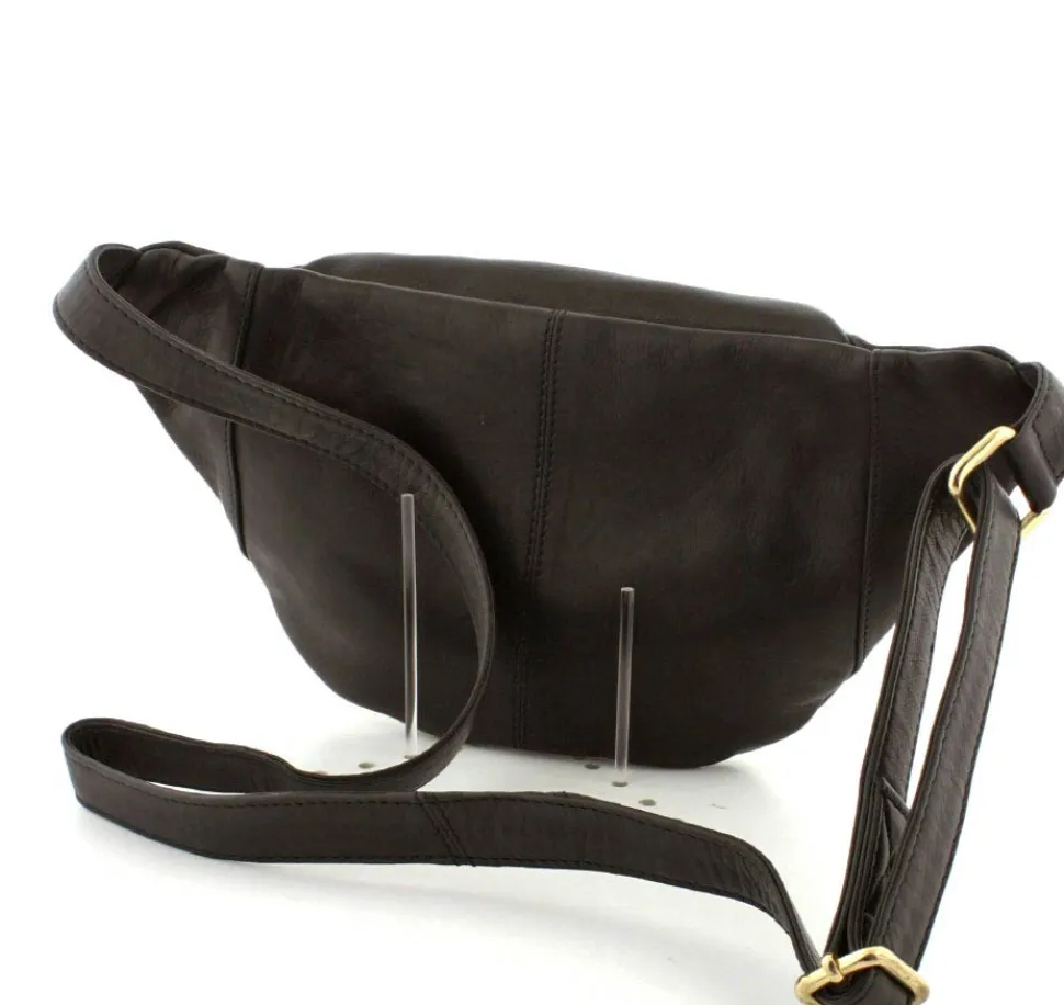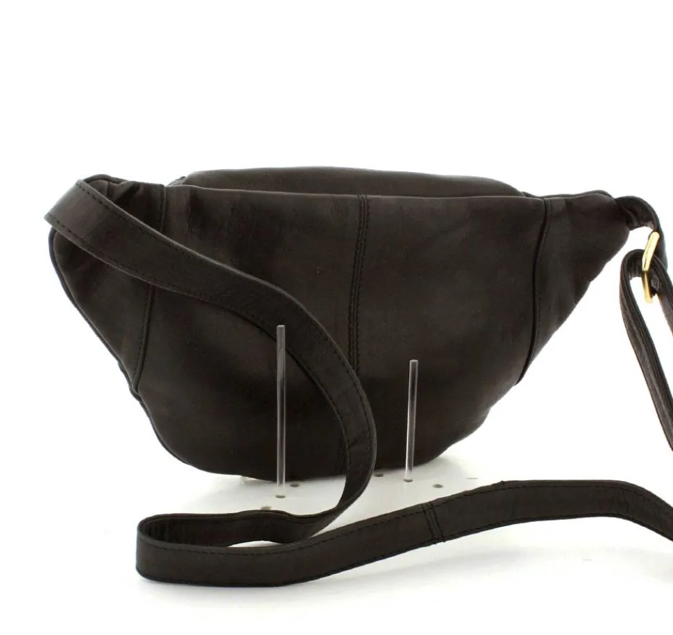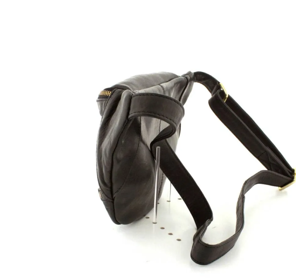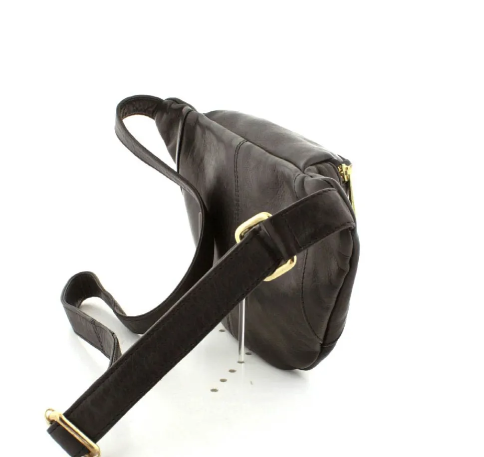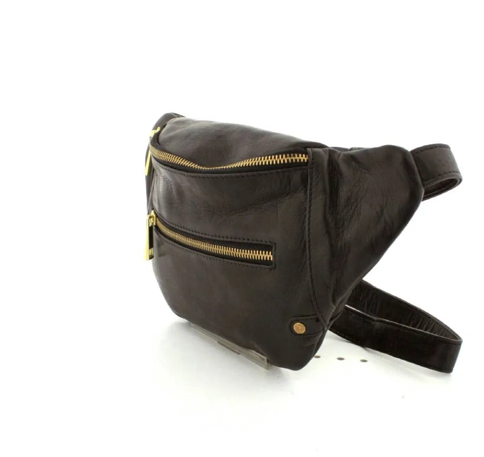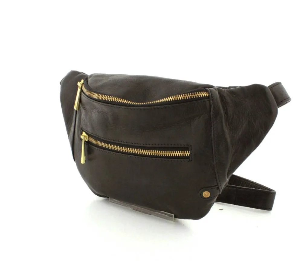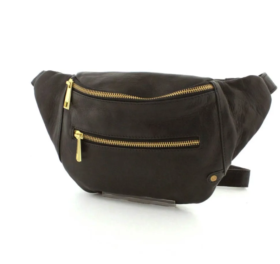 Rigtig flot Bumbag fra Depeche i lækkert sort skind fra serien Golden Chic. Tasken er med guldlynlåse og hægter, så den får et eksklusivt look. Tasken har en lynlåslomme foran og åbnes i toppen med lynlås. Indeni er der et stort rum, med lynlåslomme og små lommer. Tasken fra Depeche har en lang regulerbar rem, så tasken både kan bruges som skuldertaske, crossover og bæltetaske.