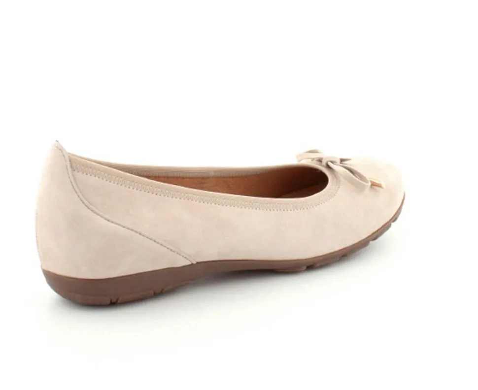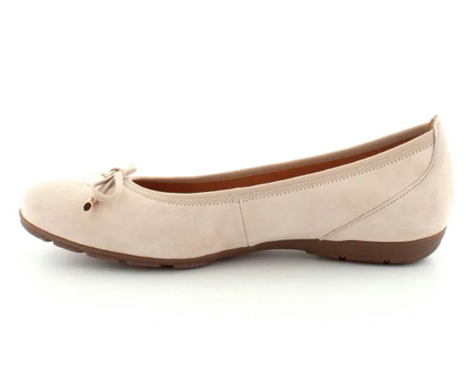 Flot lys ballerina fra Gabor med fin lille sløjfe. God plads i bredden og bløde gummisåler under bunden.