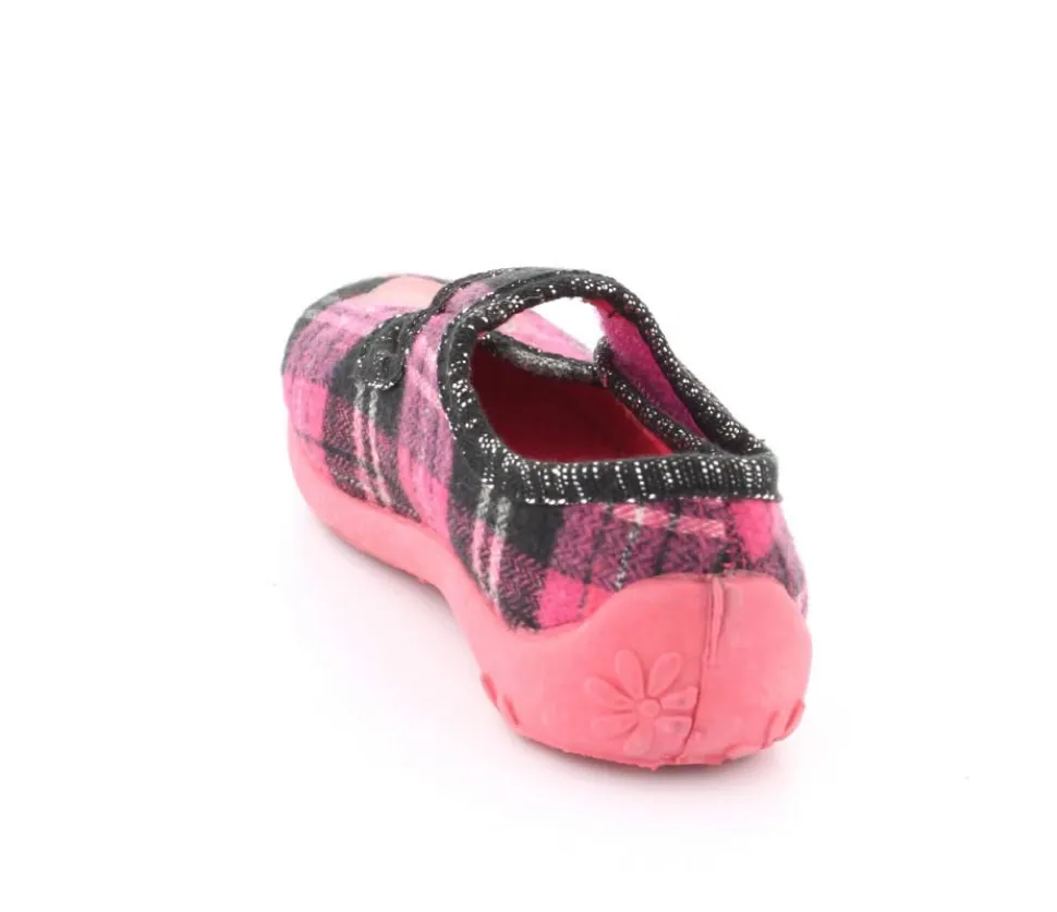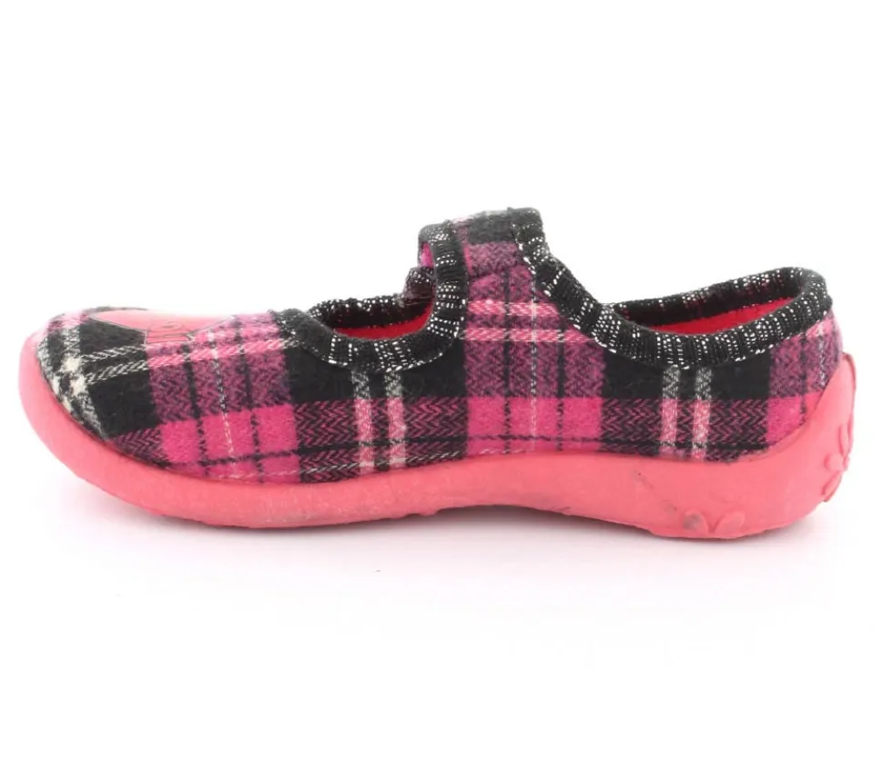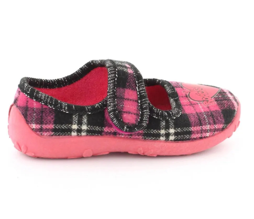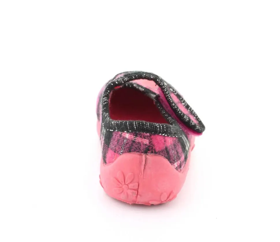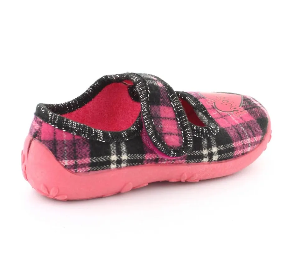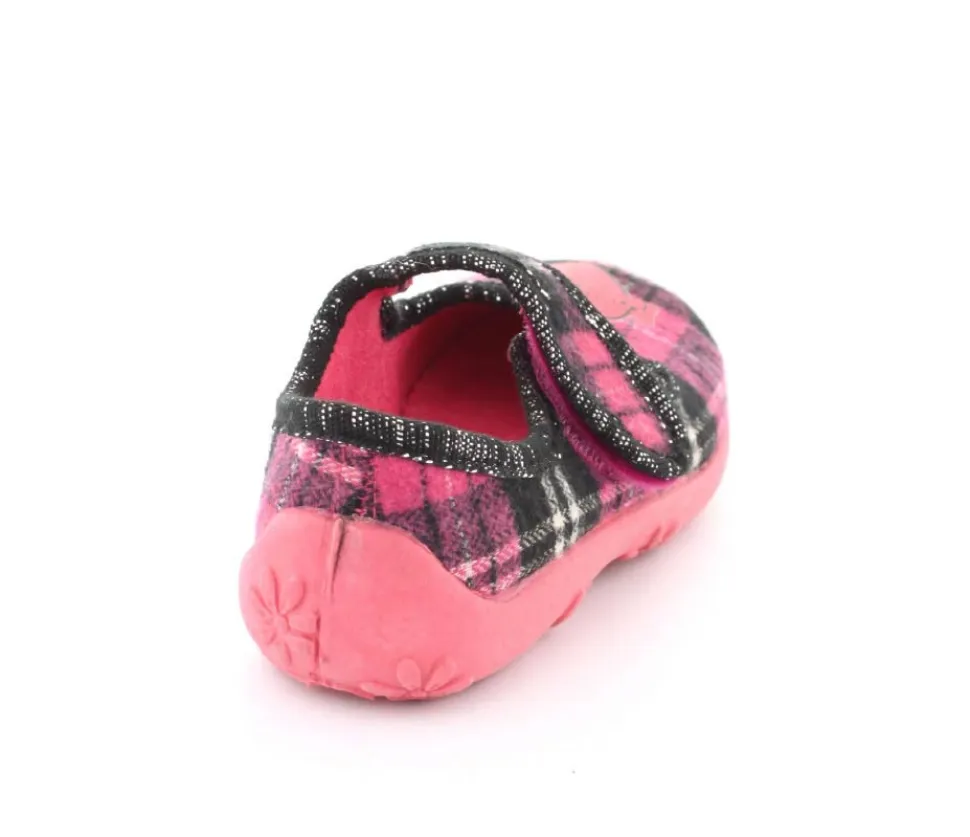 Super fin hjemmesko fra Kennedy i en smart ternet udgave. Skoe har rigtig bløde gummisåler, der er meget fleksible. Velcrorem over vristen, som kan justeres efter barnets fod. Hjerte på fronten.