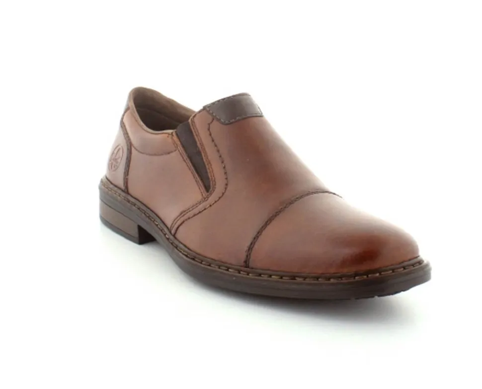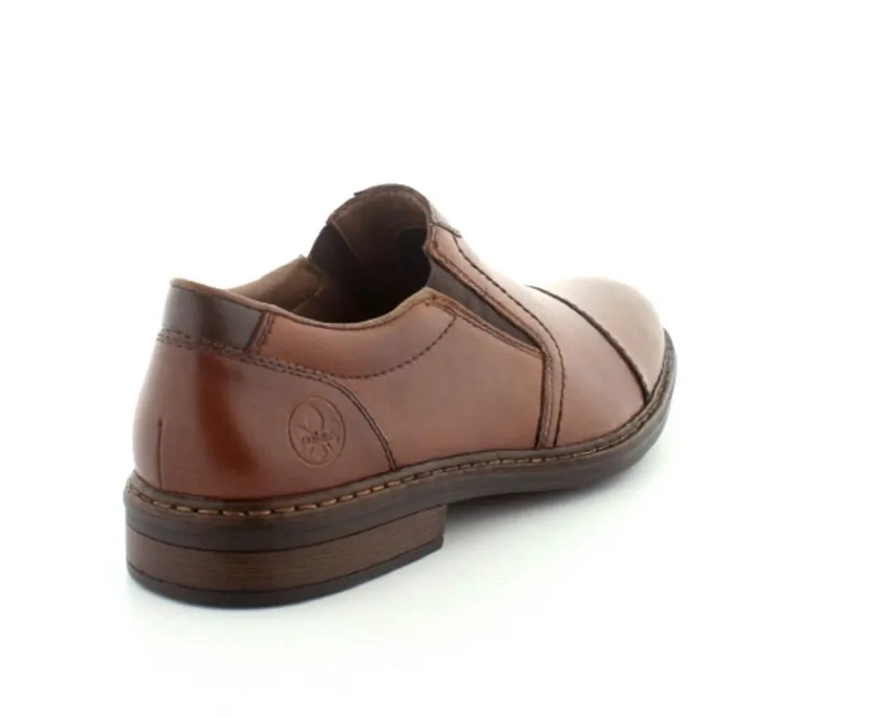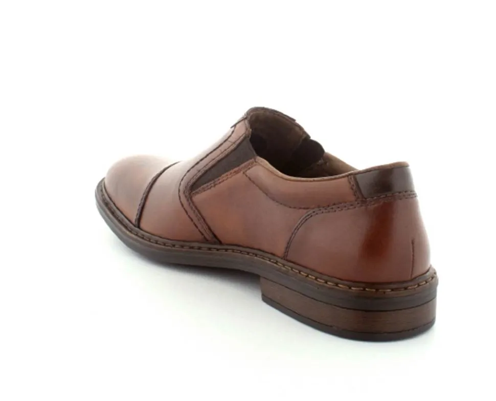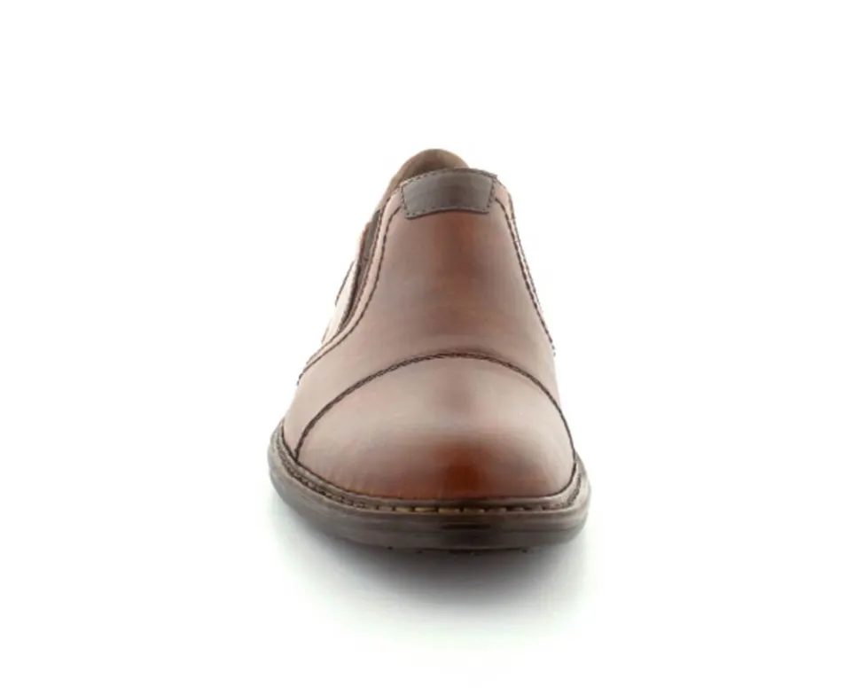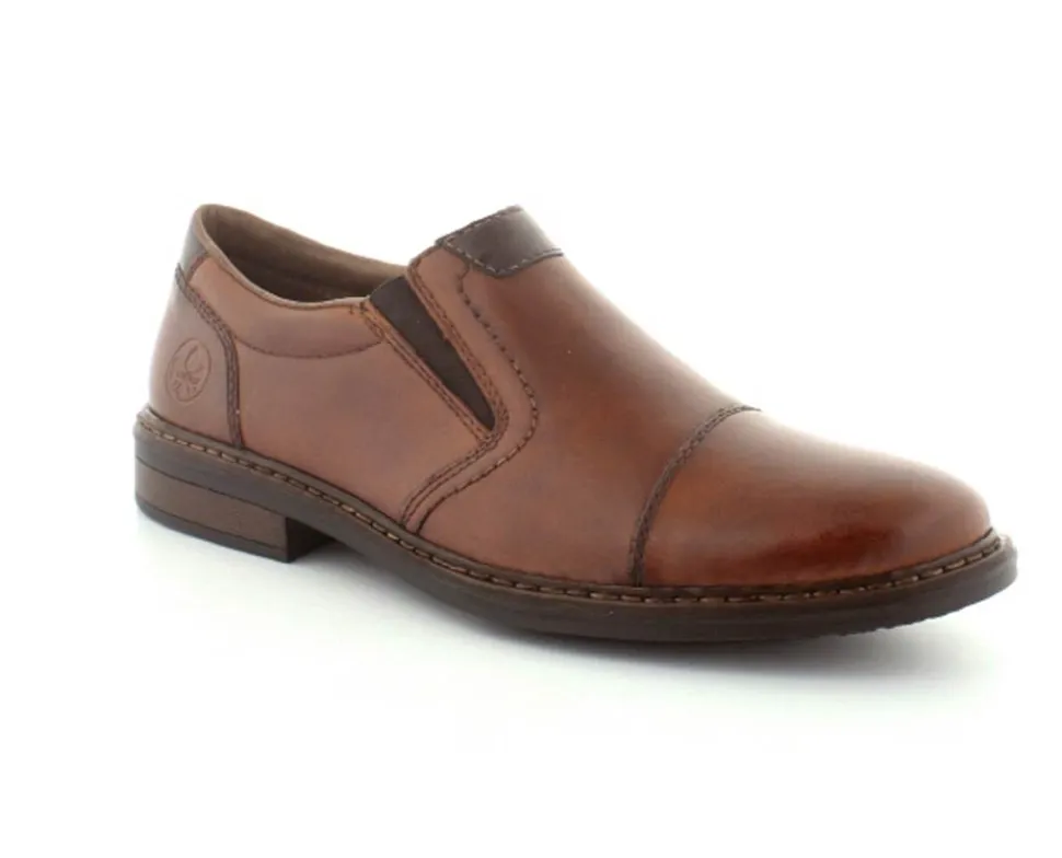 Flot og klassisk moccasin sko fra Rieker i cognacfarvet glat skind. Skoen er lige til at smutte i med elasik på begge sider af vristen. Skoen fra Rieker har lette, bløde og fleksible såler under hele bunden. Bløde skinddækssåler indeni. Skoen er med ekstra vidde.