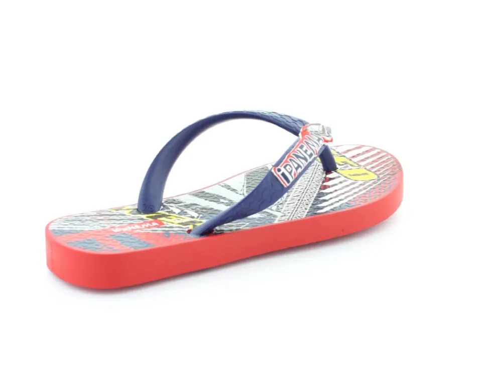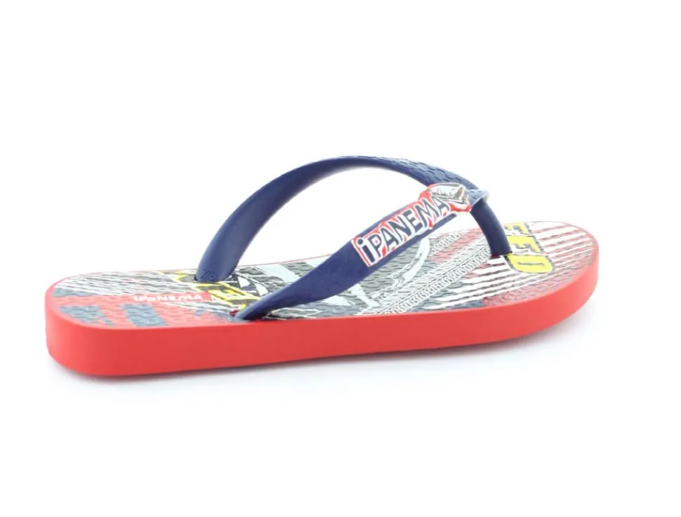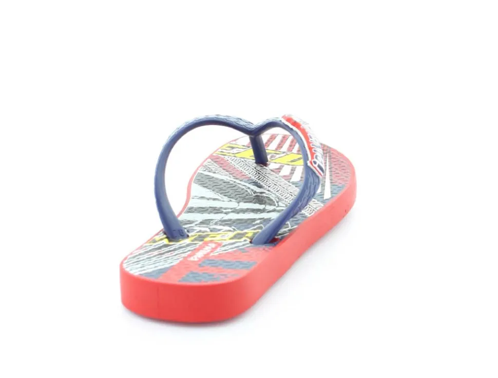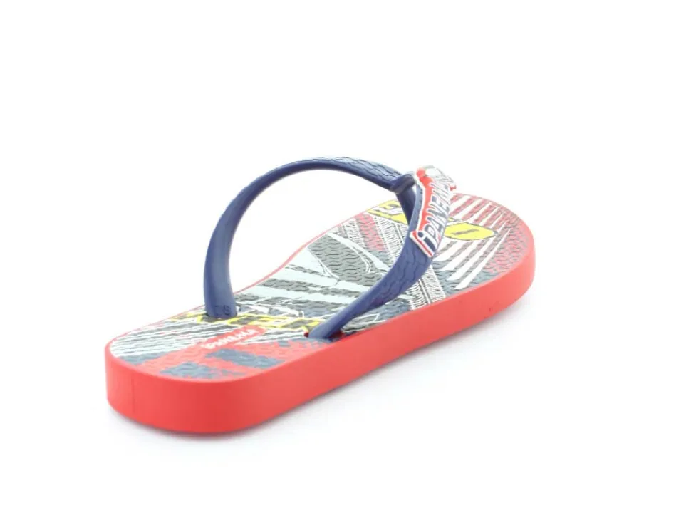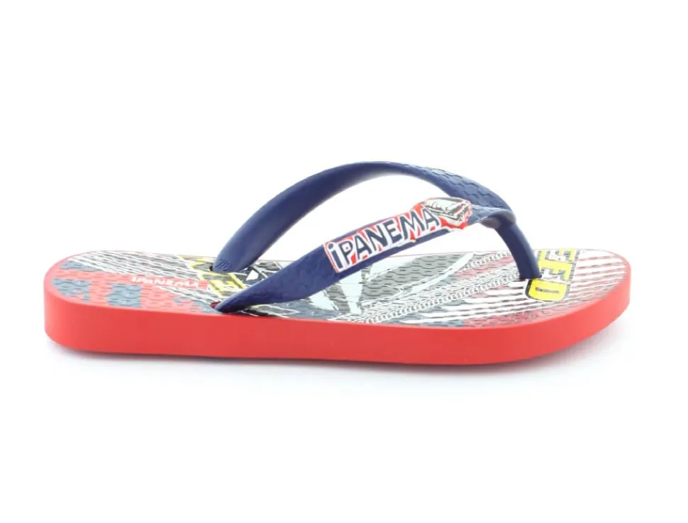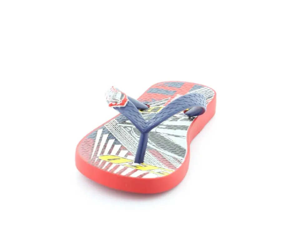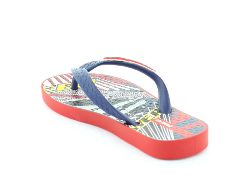 Super smart blå klip klap til drengene fra Ipanema med flotte røde detaljer på. Sandalen er lavet i det blødeste gummimateriale, der har stødabsoberende såler, og de er 100 % recycle. Sandalen fra Ipanema er super god til ferien, når der er meget varmt eller i svømmehallen. Sandalen er meget lille i størrelsen.