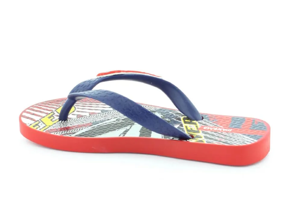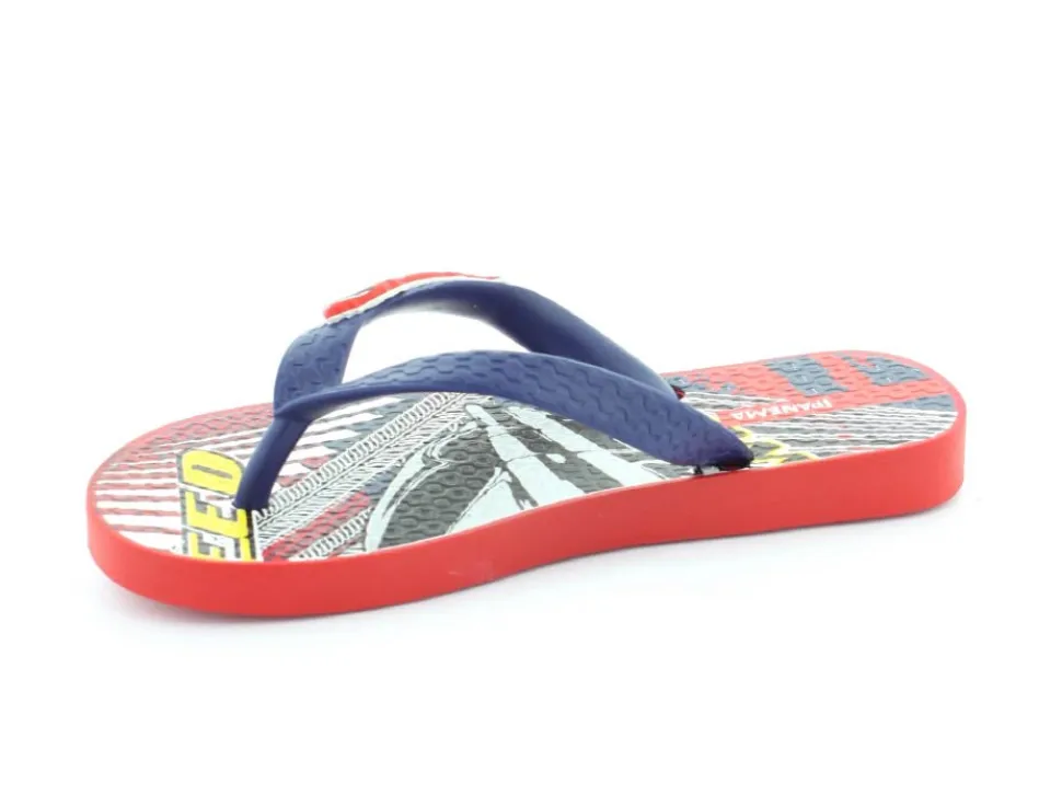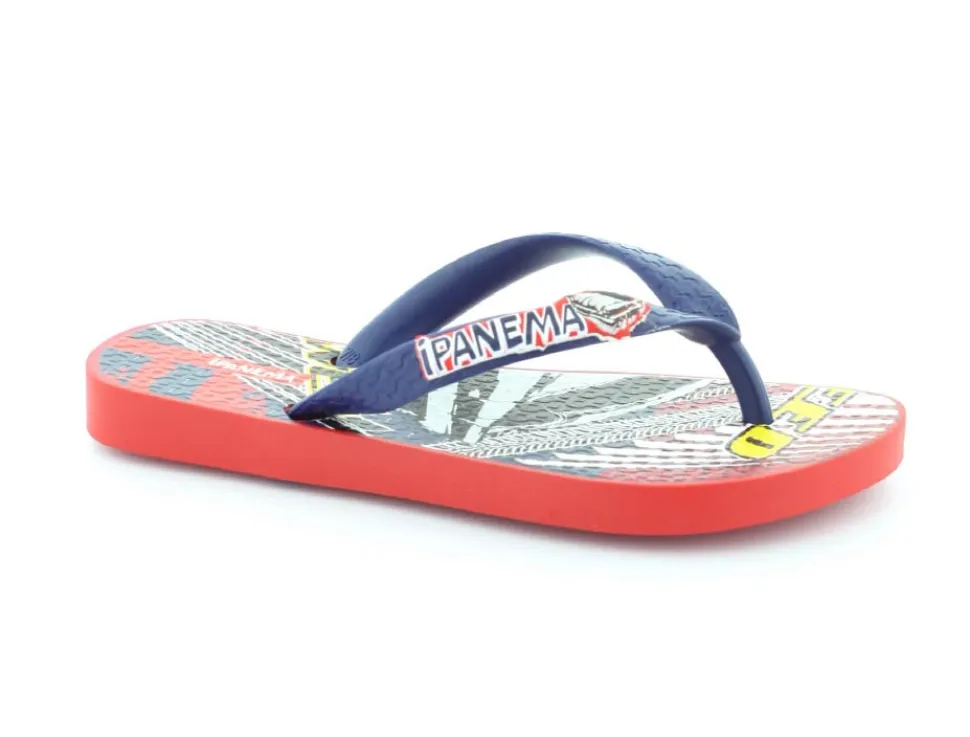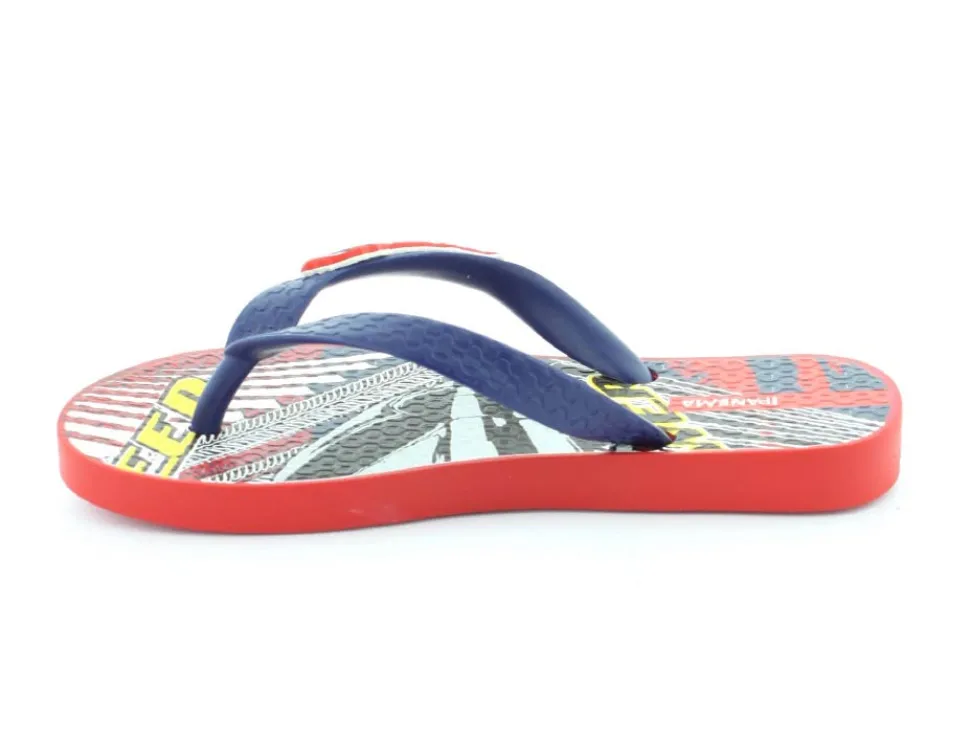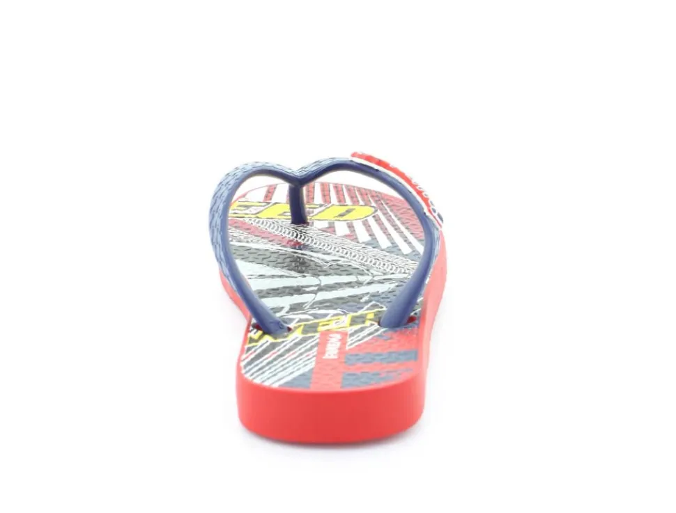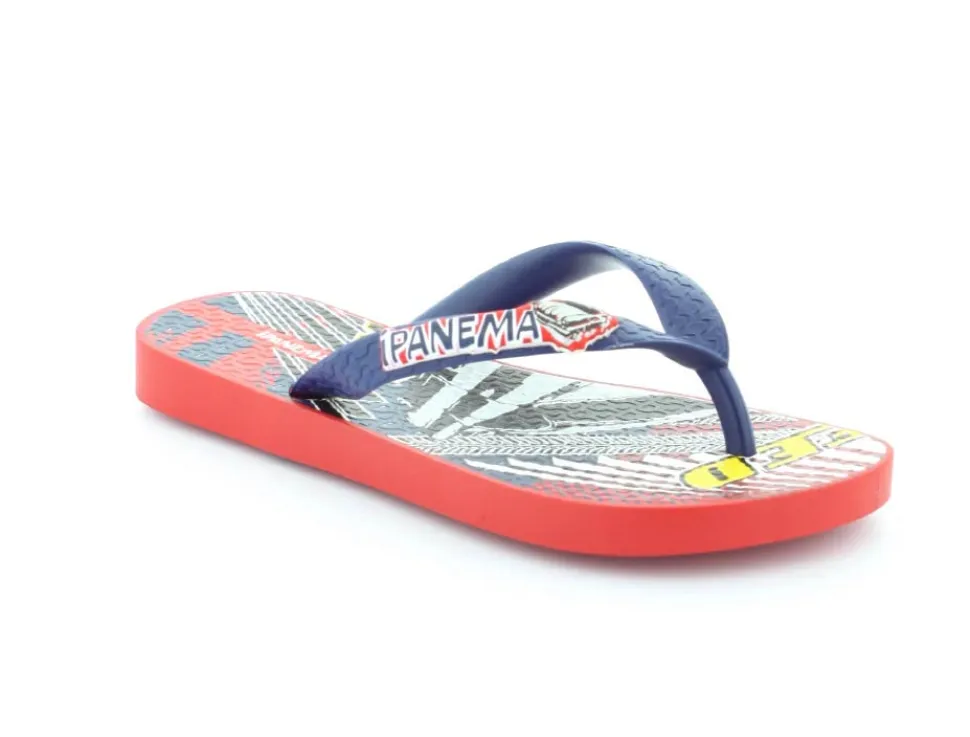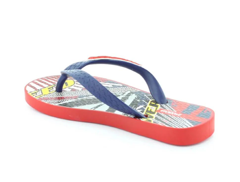 Super smart blå klip klap til drengene fra Ipanema med flotte røde detaljer på. Sandalen er lavet i det blødeste gummimateriale, der har stødabsoberende såler, og de er 100 % recycle. Sandalen fra Ipanema er super god til ferien, når der er meget varmt eller i svømmehallen. Sandalen er meget lille i størrelsen.