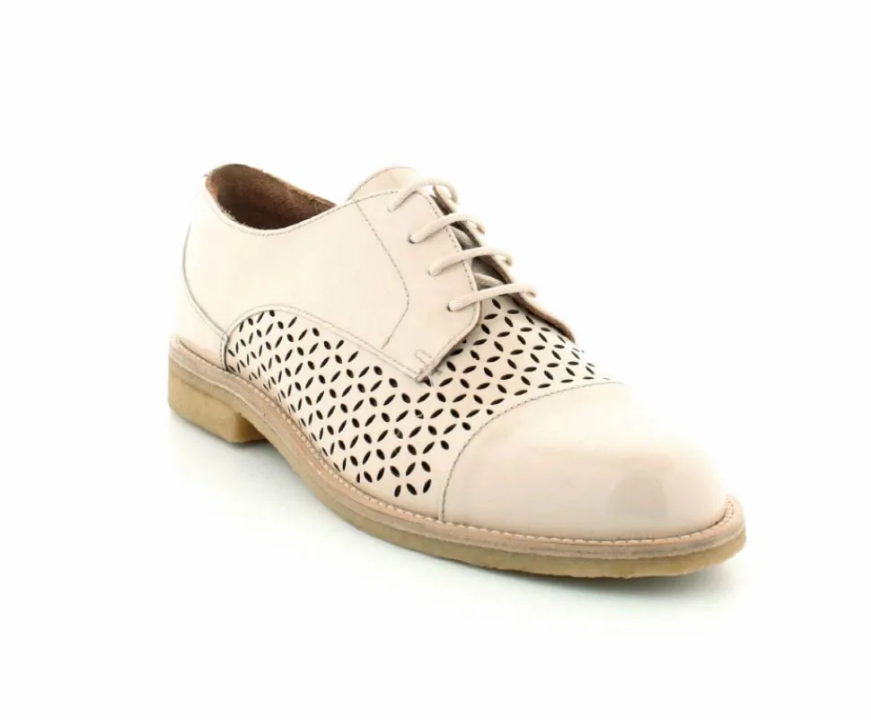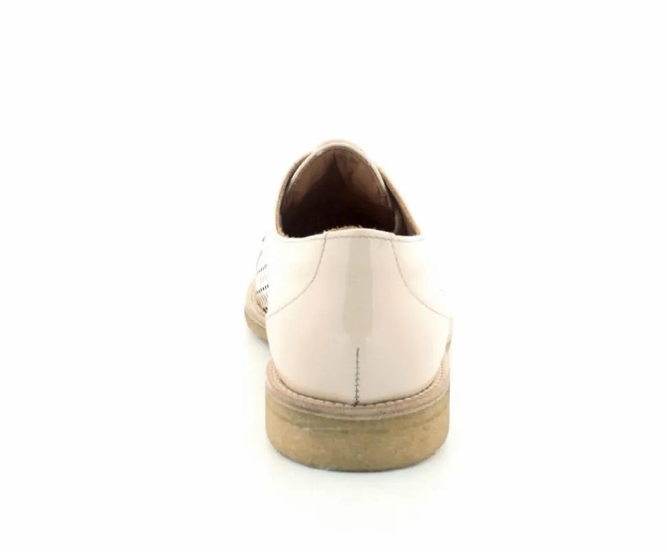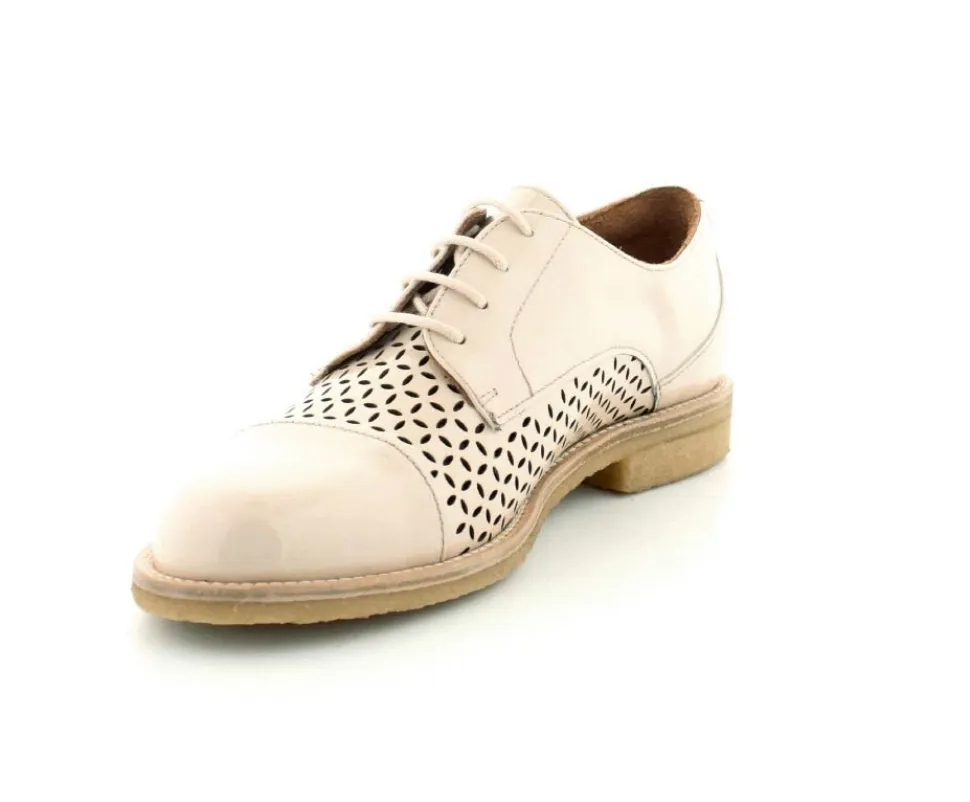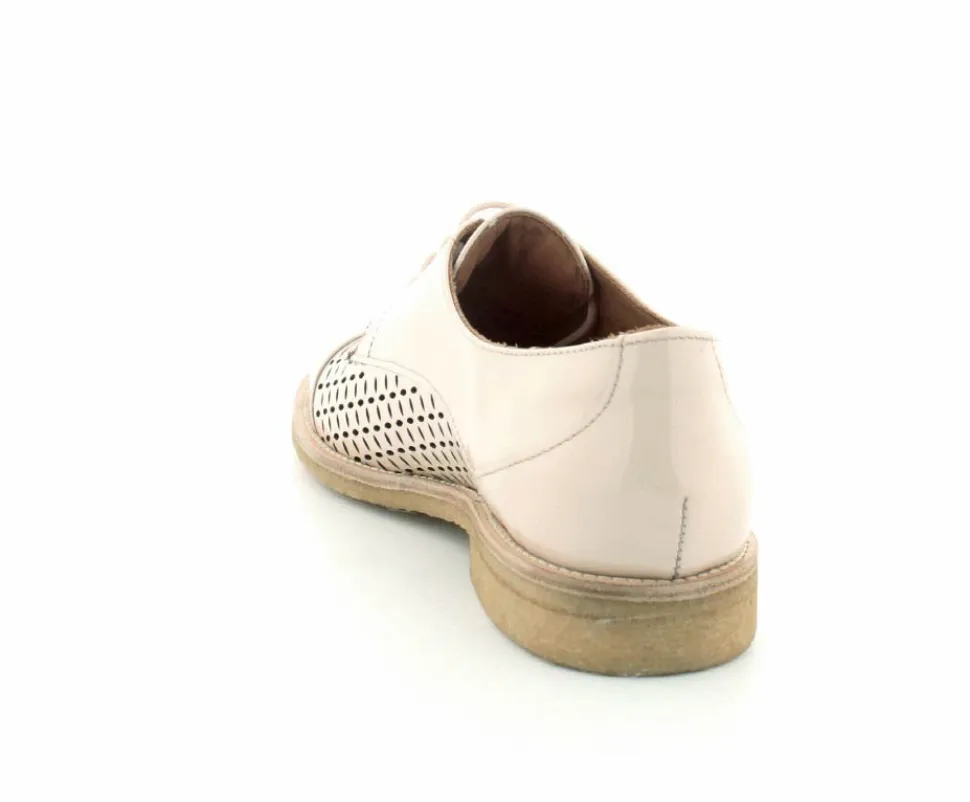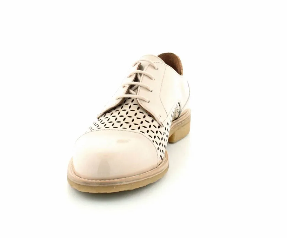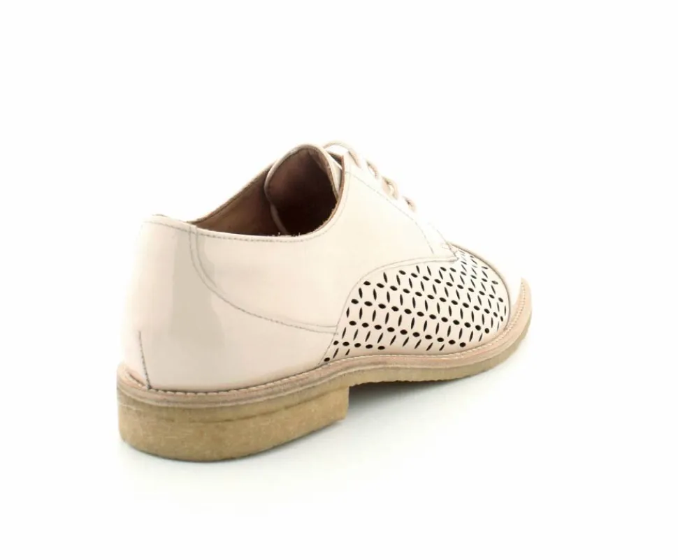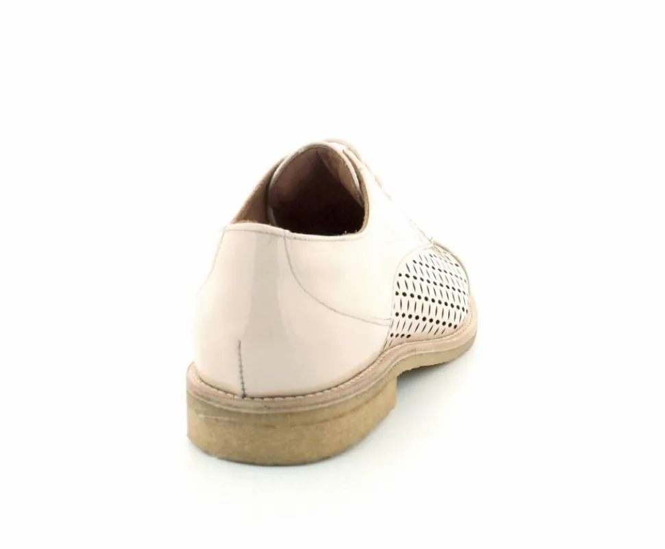 Flot og elegant laksko fra BilliBi i en lækker lys farve. Skoen er en snøresko med små udskæringer i skindet og med skindfoer indeni. Der er bløde fleksible rågummisåler under hele bunden.