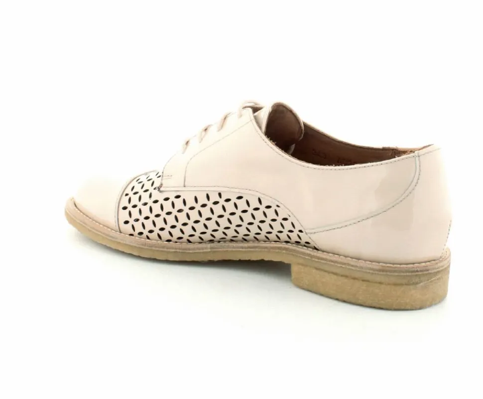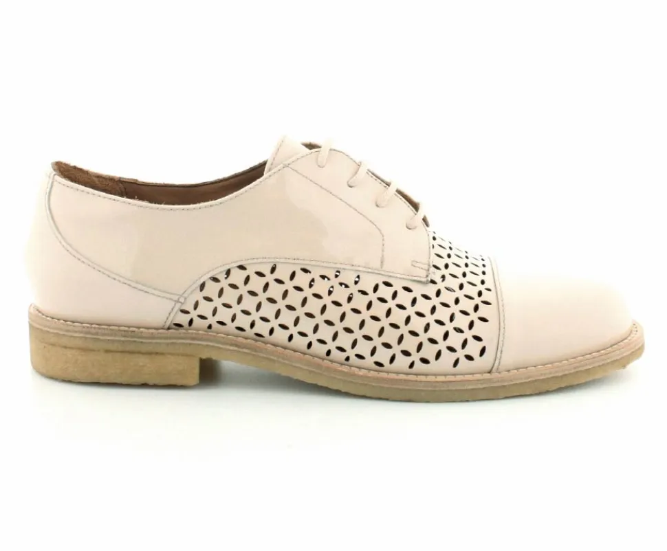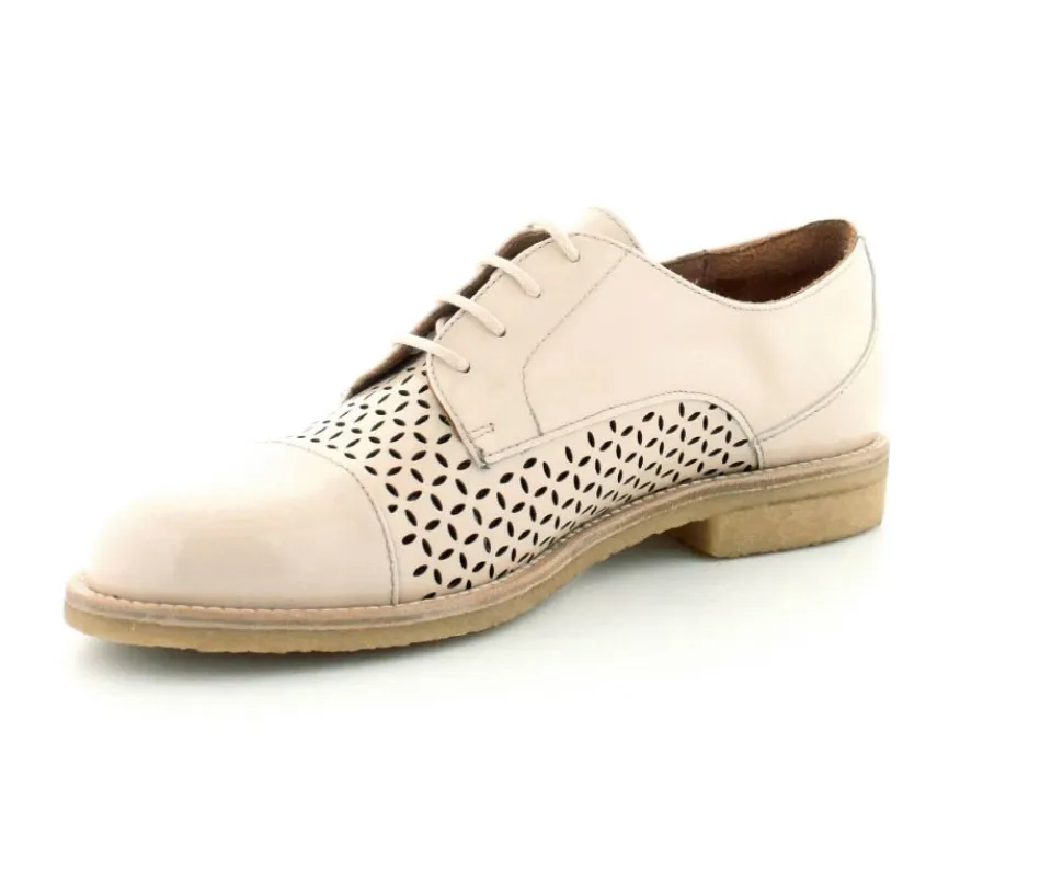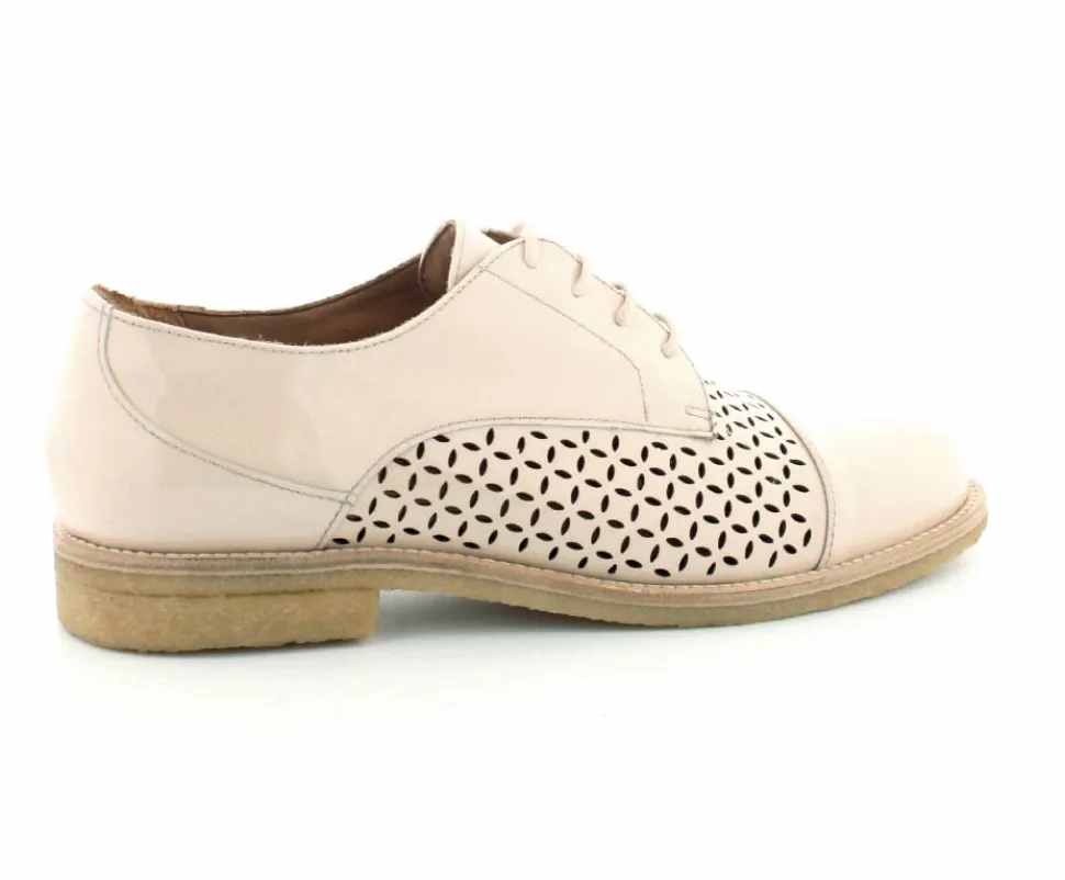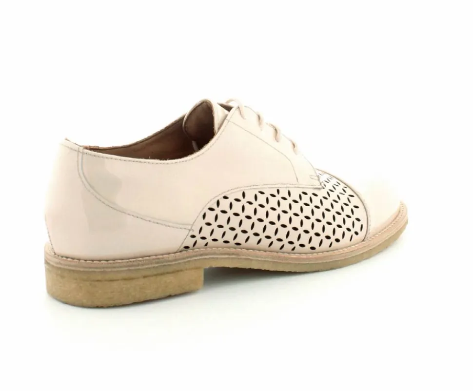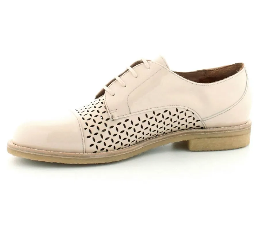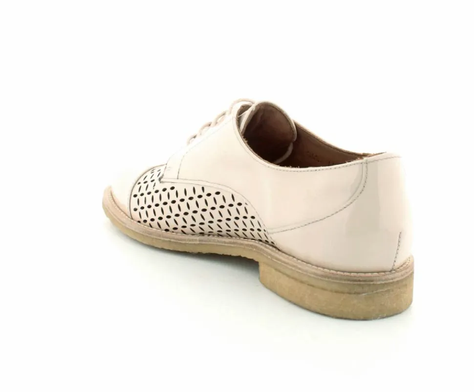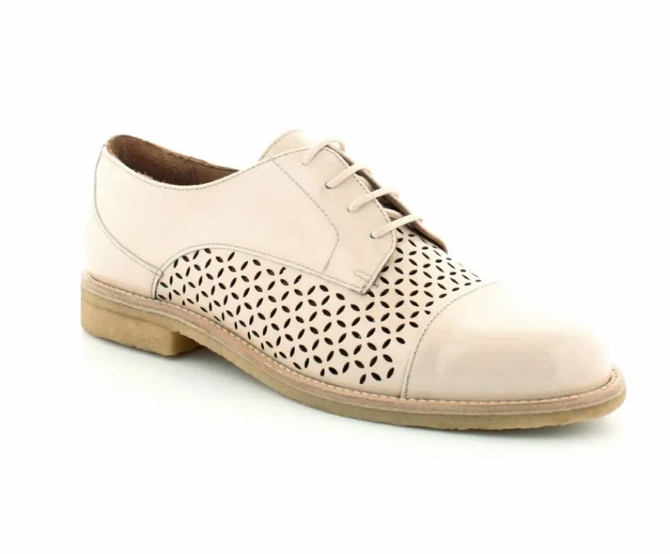 Flot og elegant laksko fra BilliBi i en lækker lys farve. Skoen er en snøresko med små udskæringer i skindet og med skindfoer indeni. Der er bløde fleksible rågummisåler under hele bunden.