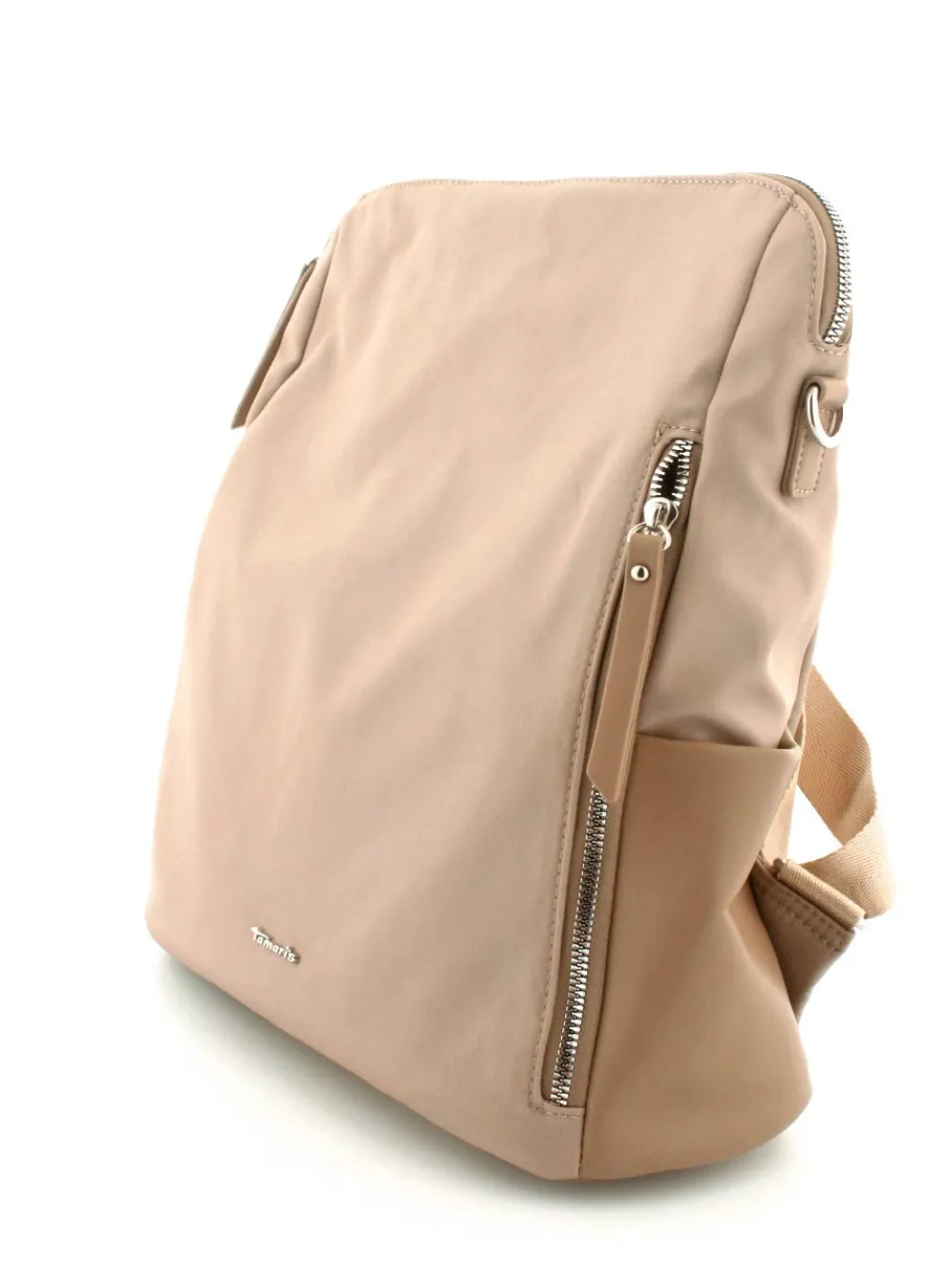 Super flot rygsæk fra Tamaris mosel Larissa i et flot sandfarvet nylonmateriale. Tasken kan også bruges som crossover, da der medfølger en lang regulerbar skulderrem, der kan klikkes på. Der er mange gode rum i tasken.