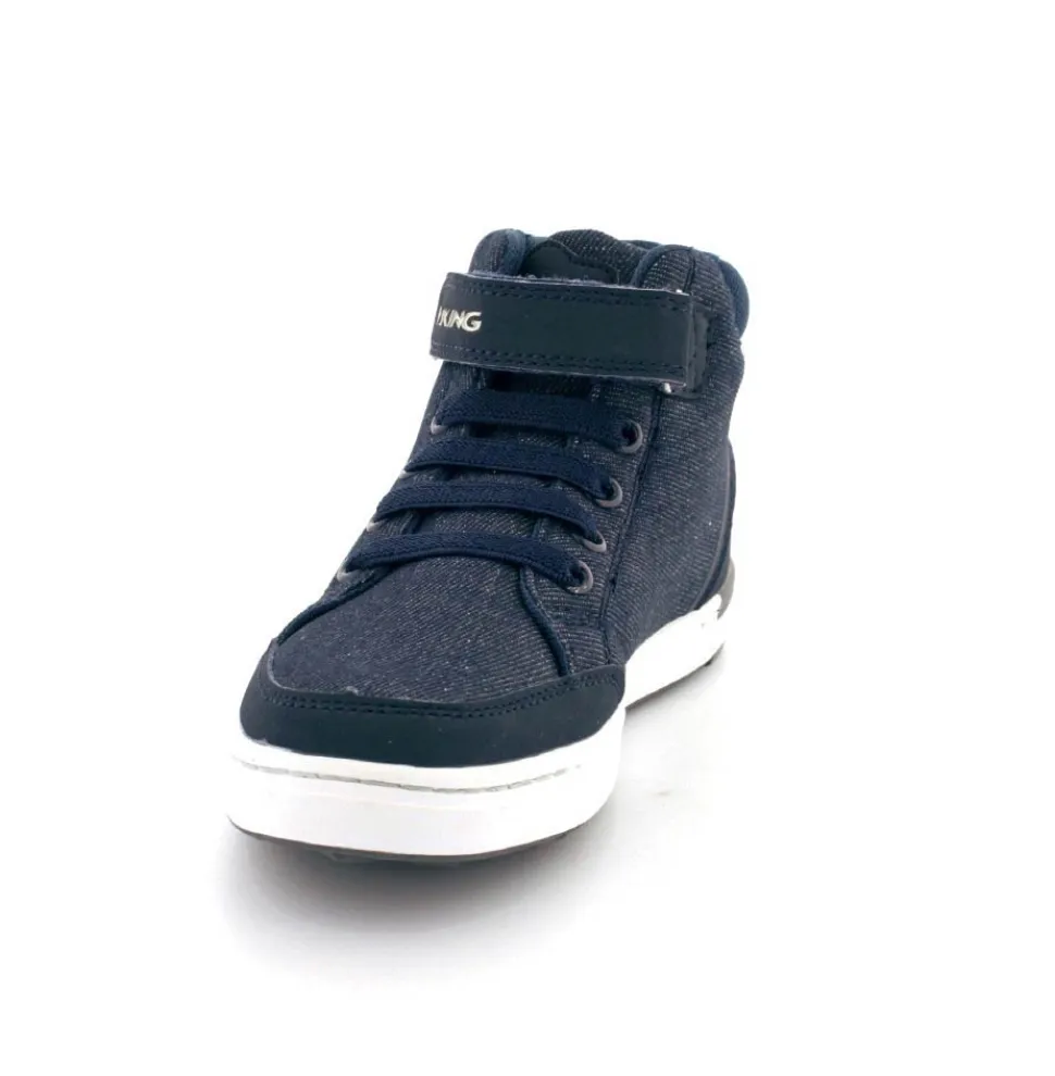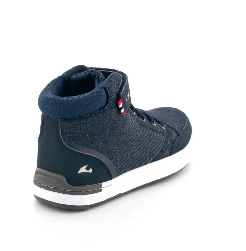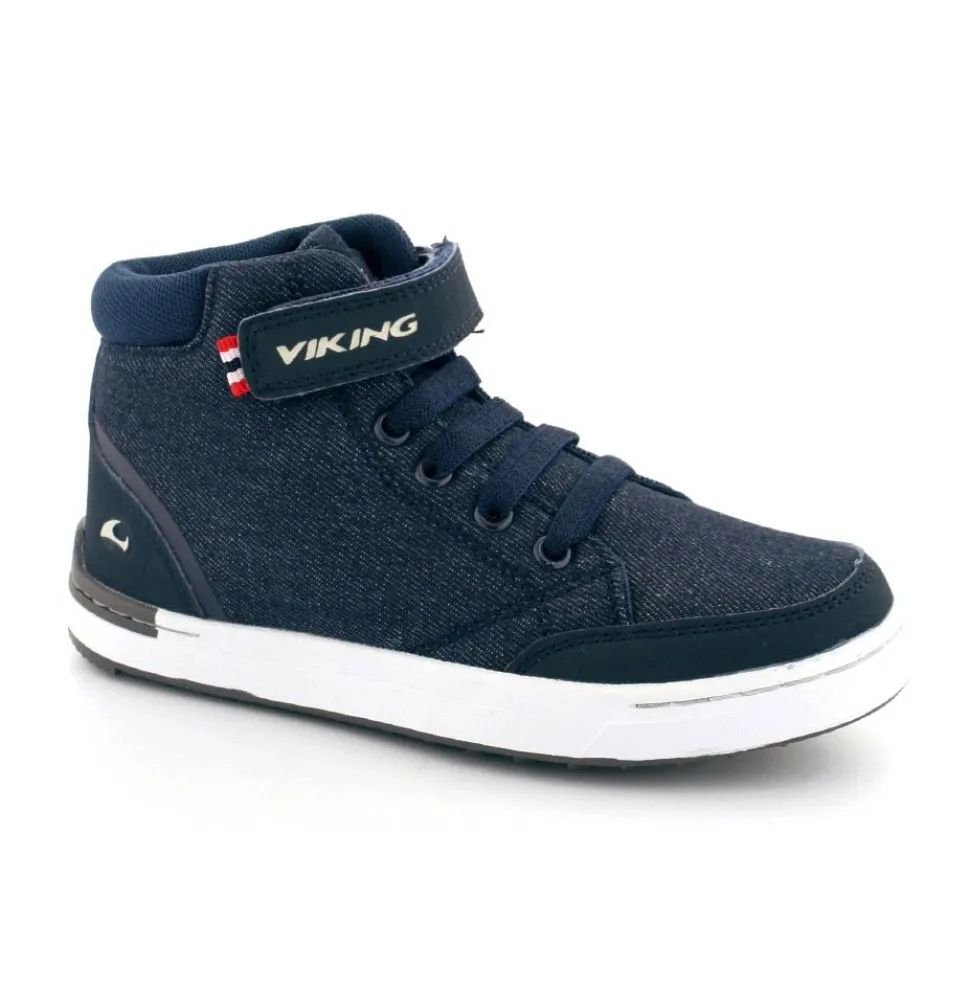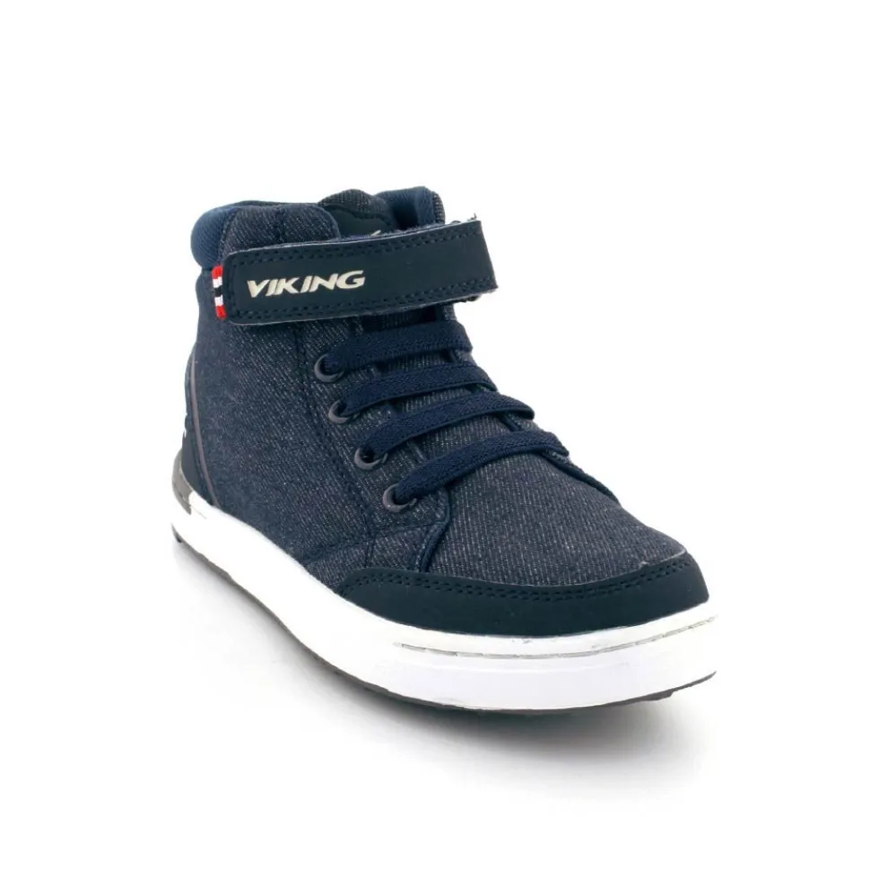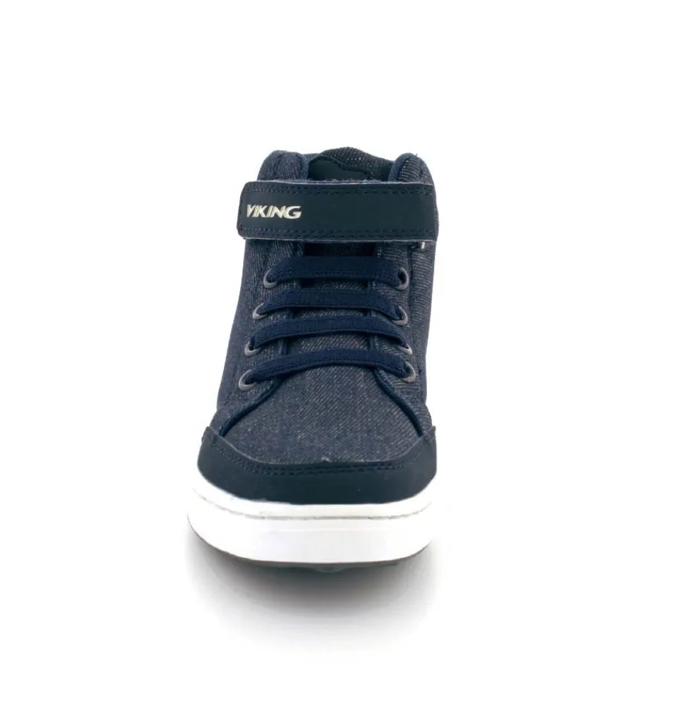 Super smarte overgangsstøvler fra Viking model Mark Mid i mørkeblåt kanvas. Støvlen er let at komme i med en regulerbar velcrorem og elastiksnøre. Der er god fast hælkappe og aftagelige indlægssåler. Støvlen fra Viking har lækre bløde gummisåler under bunden og kan vaskes på 30 grader skåneprogram.