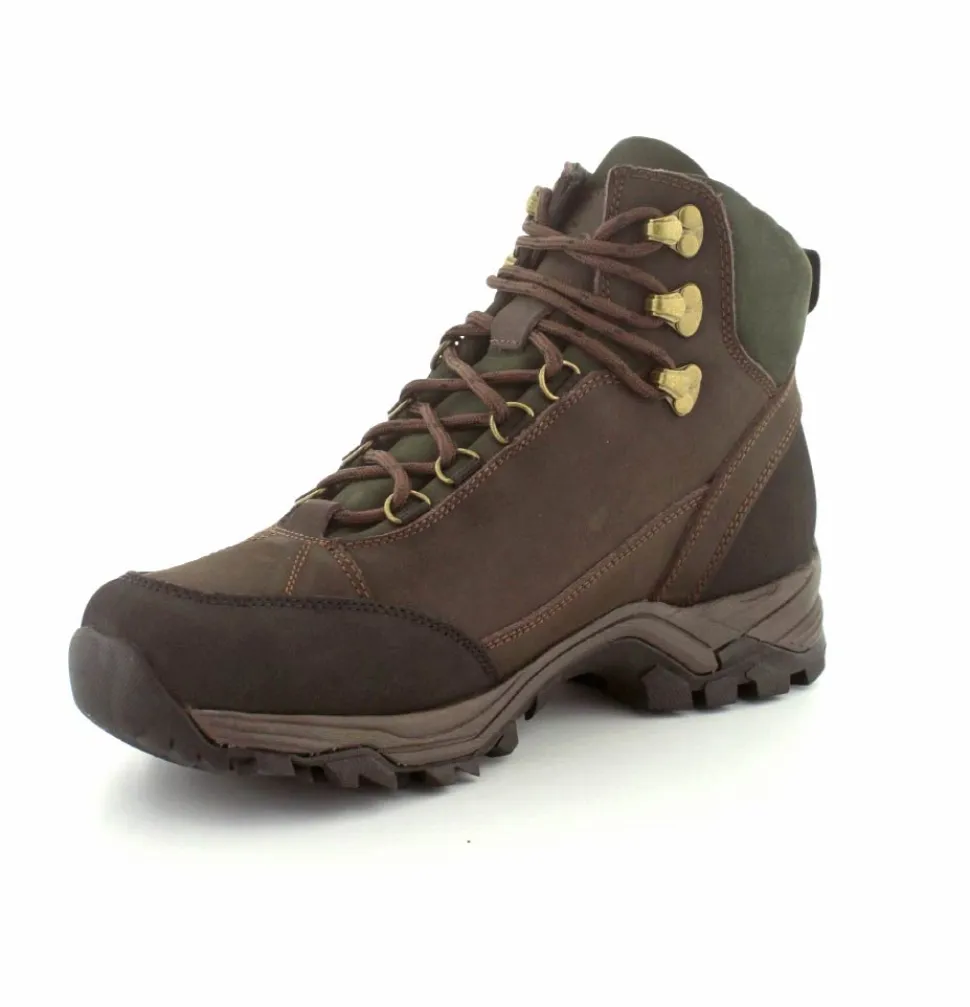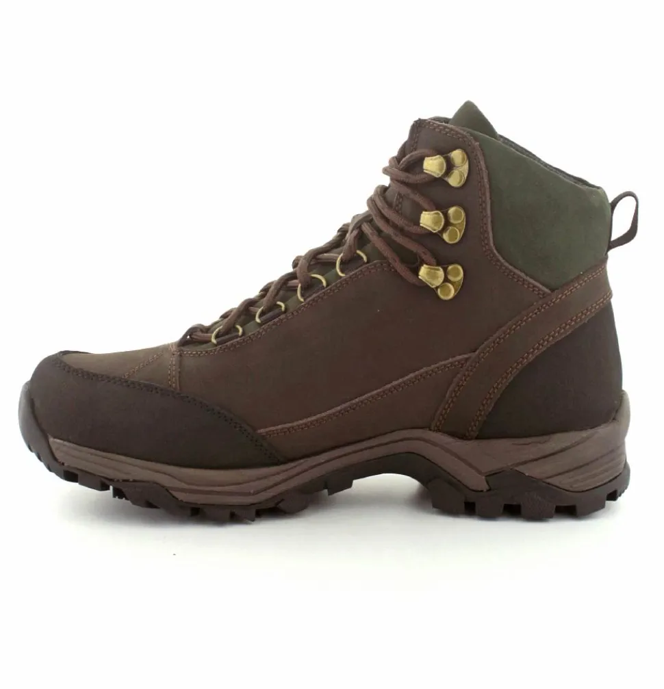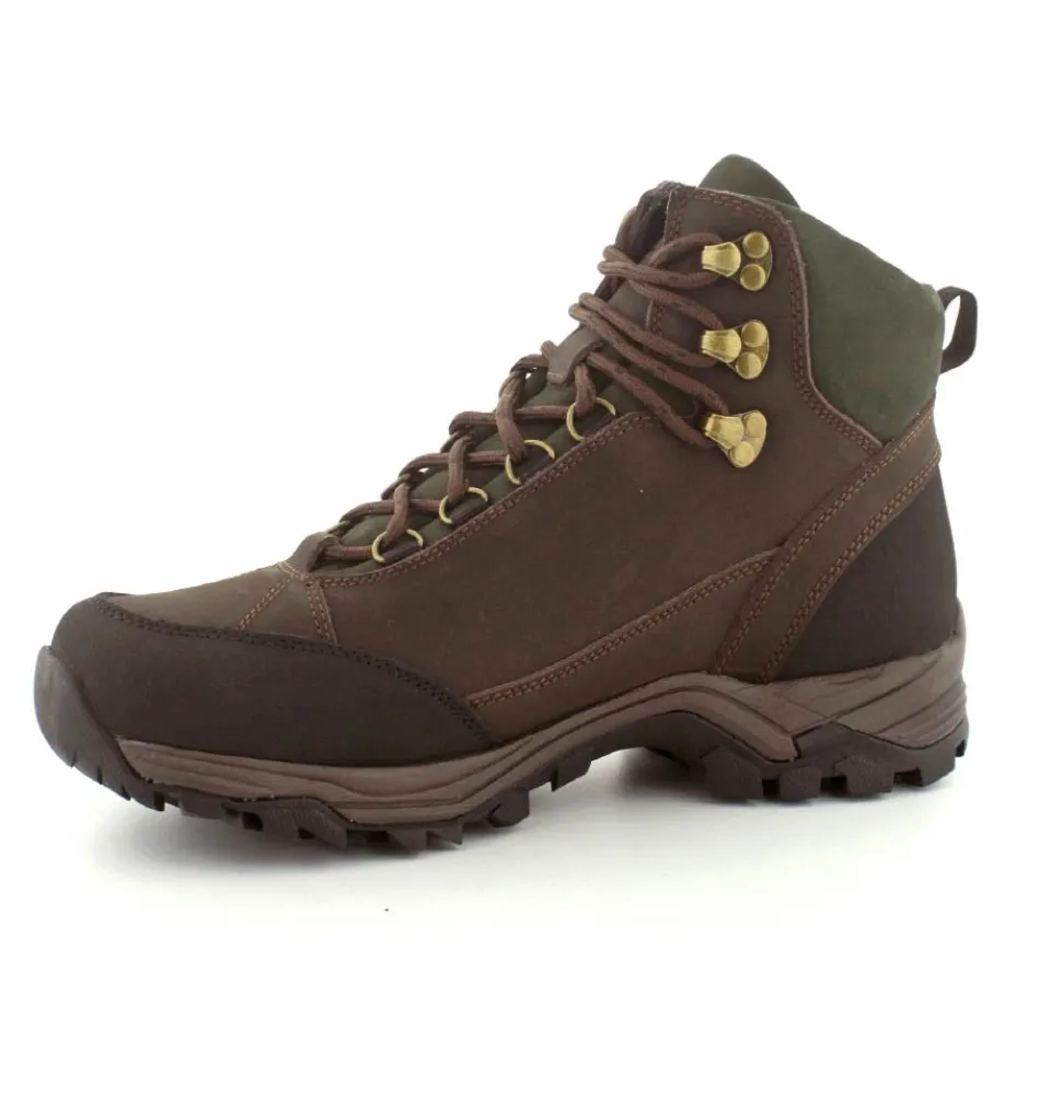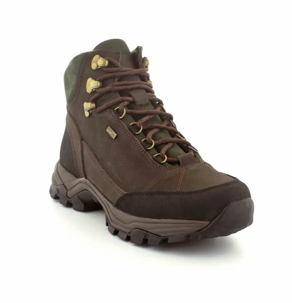 Super god vandrestøvle fra Green Comfort model North Outdoor. Støvlen er en snørestøvle i farven mørkebrun og mørk grøn. Den er lavet i skind og er med Tex-membran, så den også er vandtæt. Den aftagelig indlægssål er med ekstra svangstøtte. Gode solide gummisåler under hele bunden med god profil.