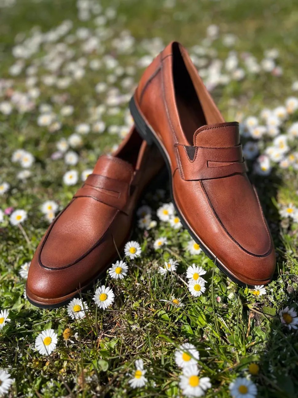Super smarte loafers fra Lloyd model Otis i et flot cognacfarvet skind. Skoen er let og blød at træde i og har et rigtigt flot look. Skoen er til den store side.