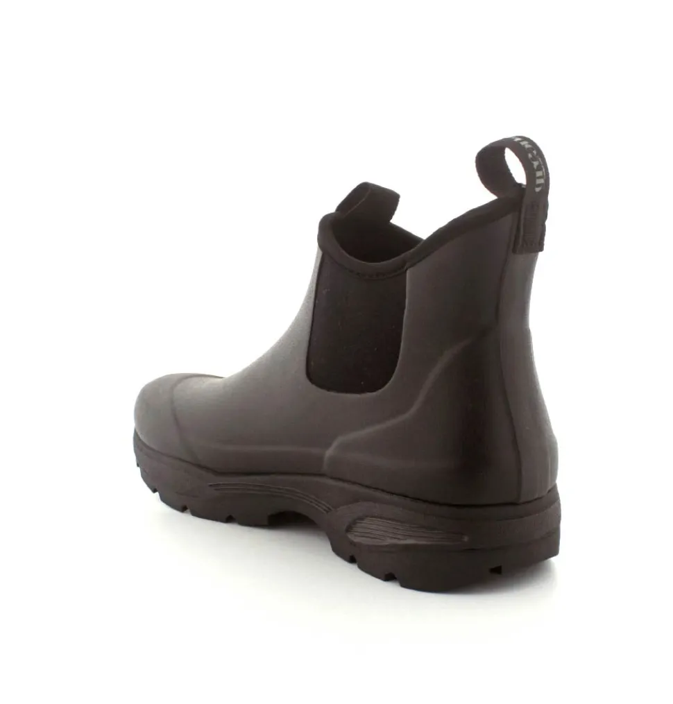 Rigtig gode gummistøvler til herre fra Green Comfort model Rain i sort. Støvlen er en kort model, så den er nem at trække på. Der er neopren indeni og rigtig gummi udenpå. Skøn at gå i med god bredde til foden. Aftagelige indlægssåler med ekstra svang. Perfekte til haven og gåture med hunden.