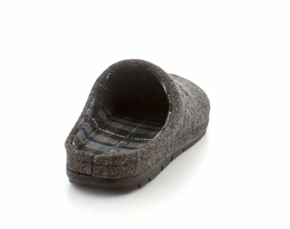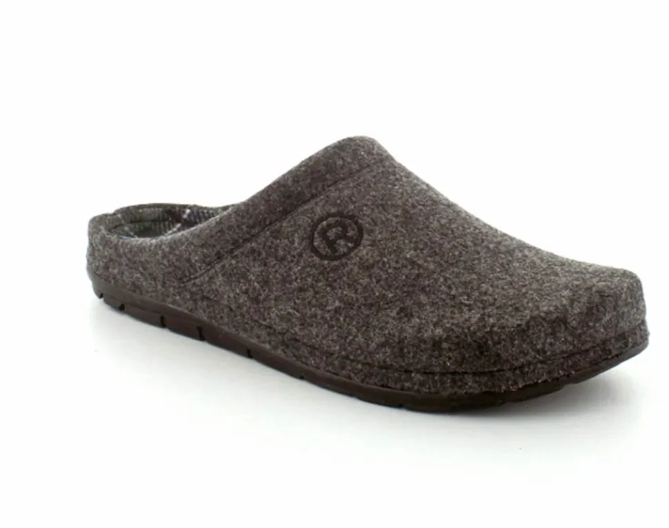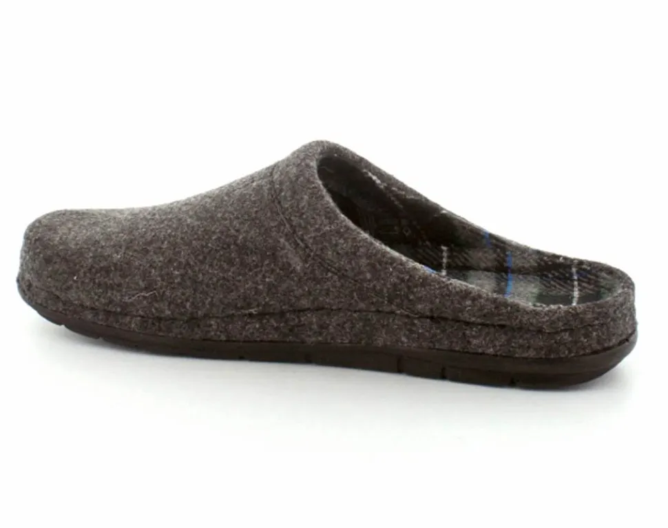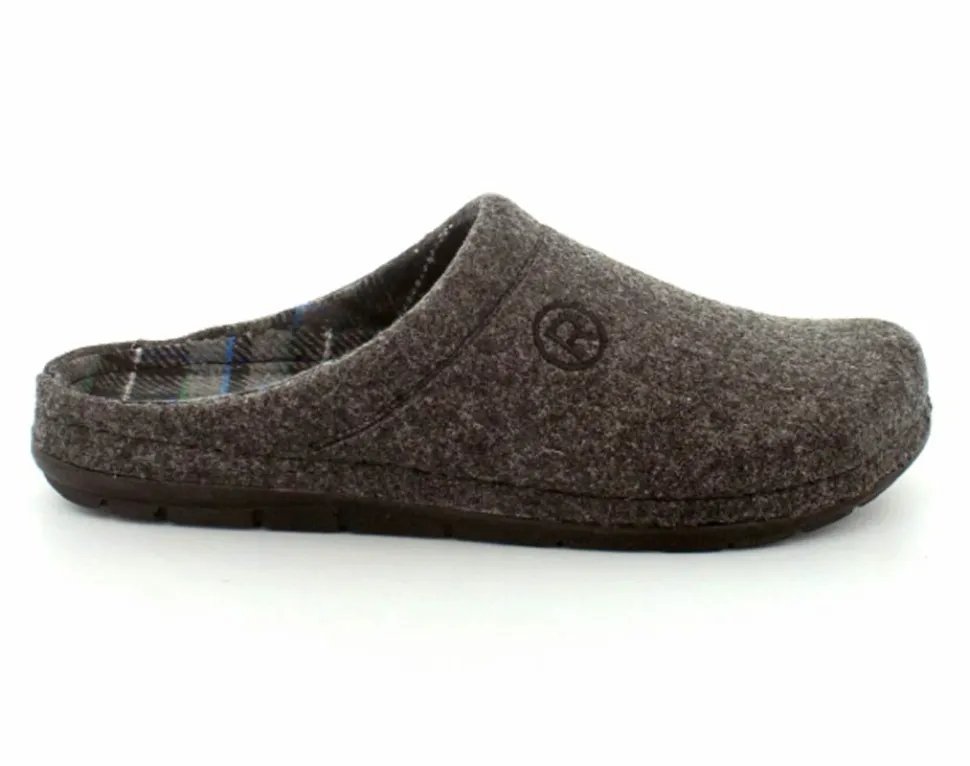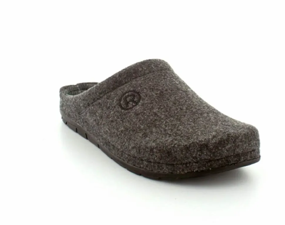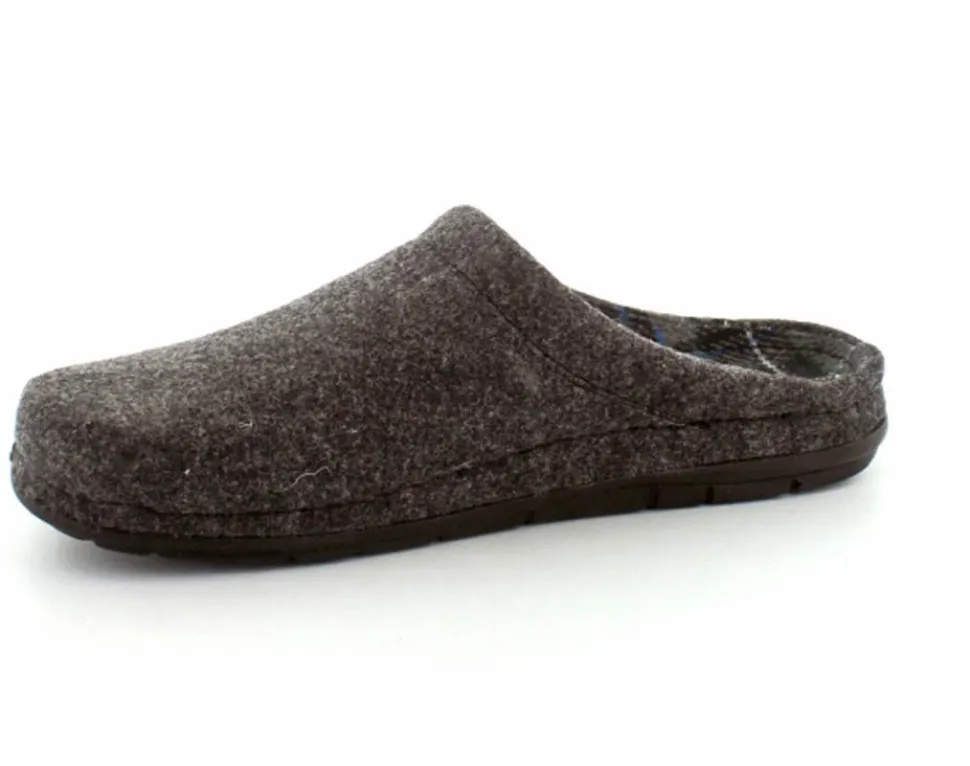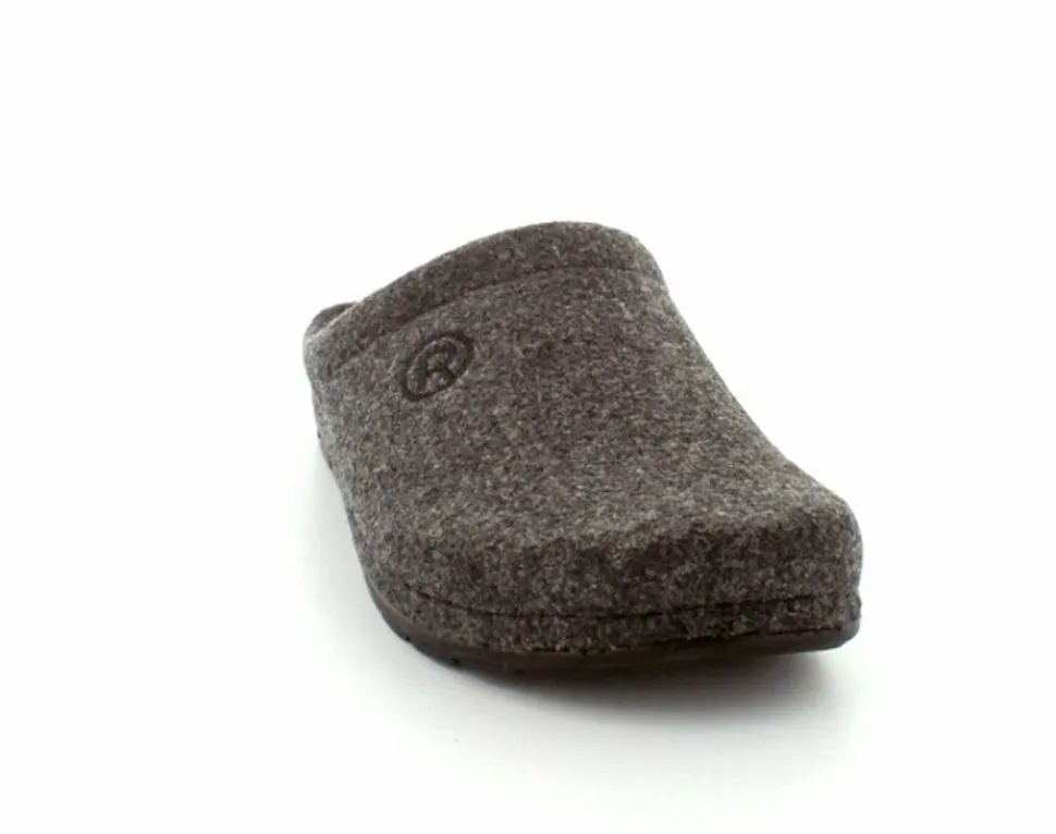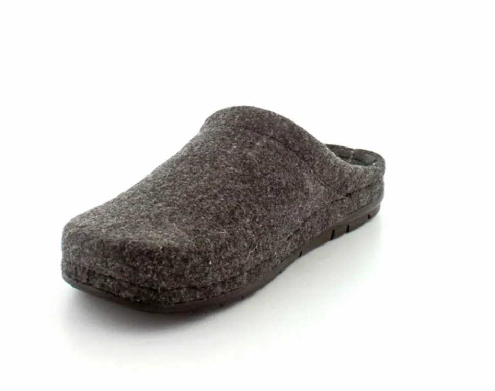 Skønne hjemmesko fra Rohde i mørkegrå uldfilt. Lige til at stikke i med en rigtig god bredde. Stødabsoberende såler under hele bunden, der godt kan tåle at gå udenfor.