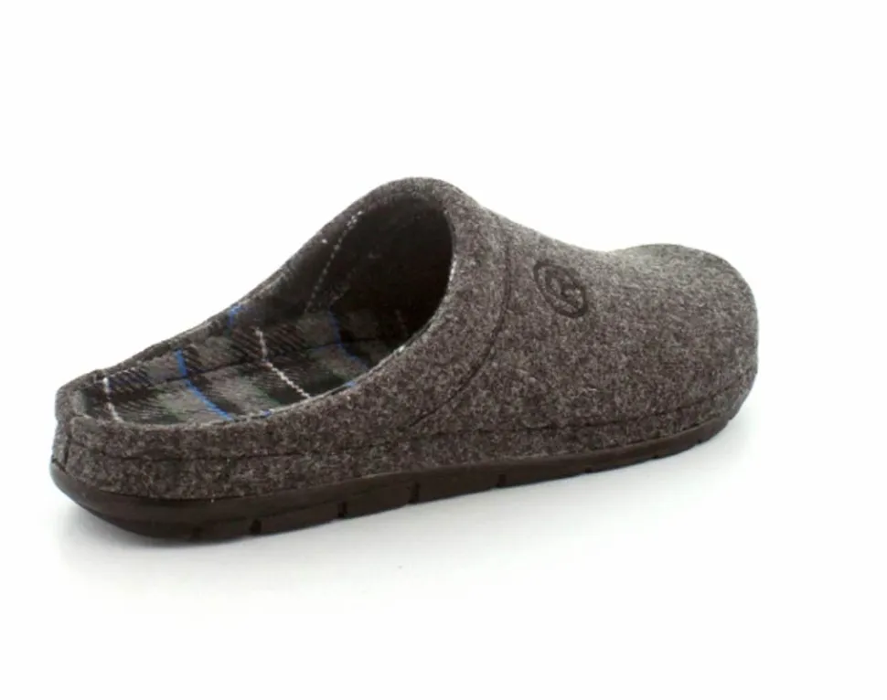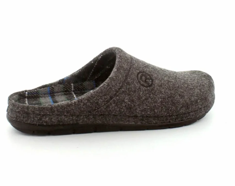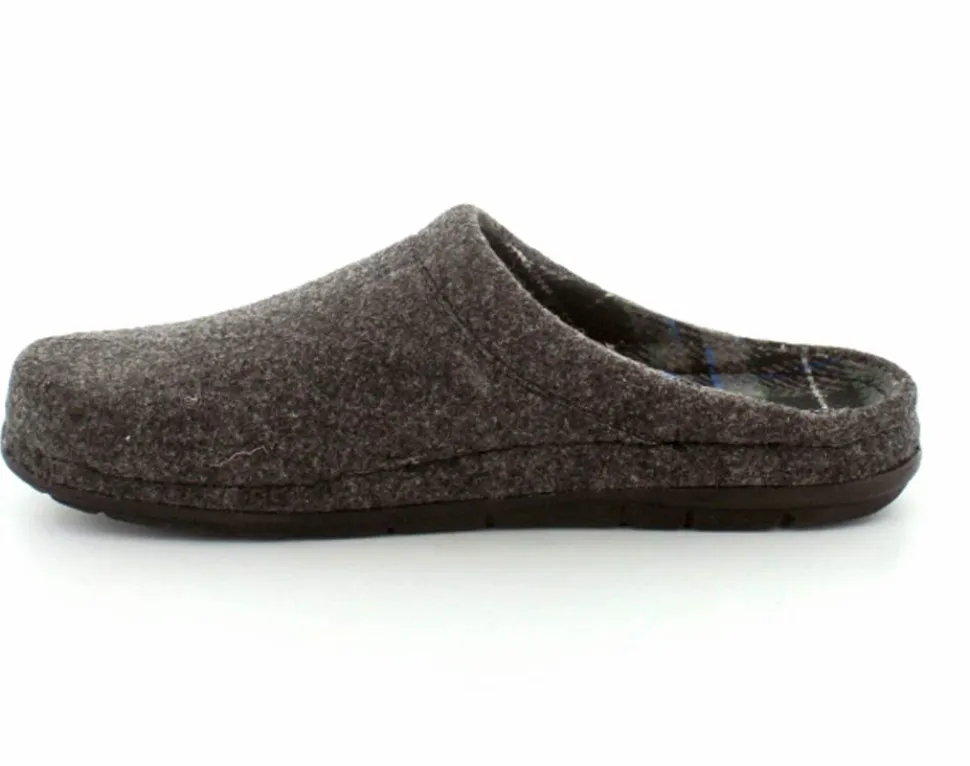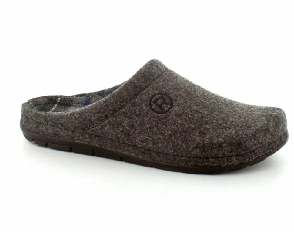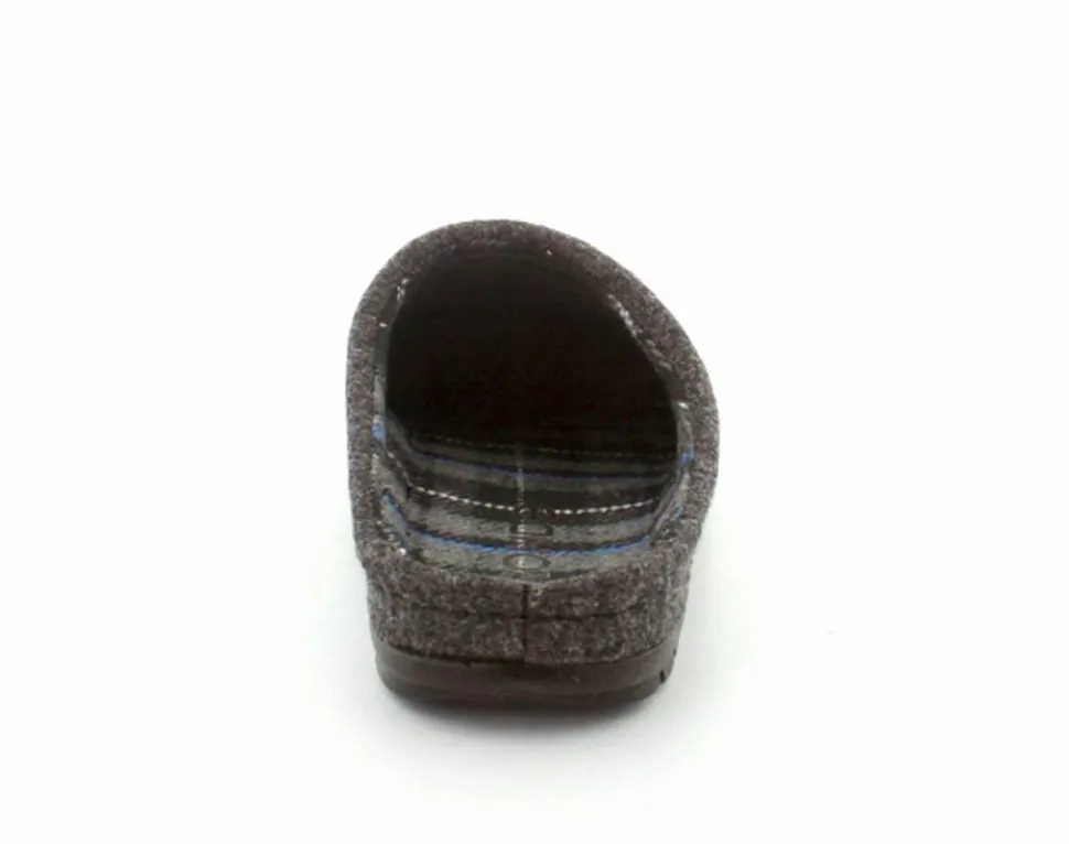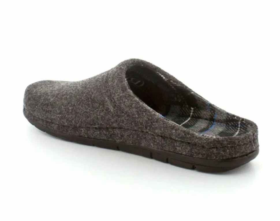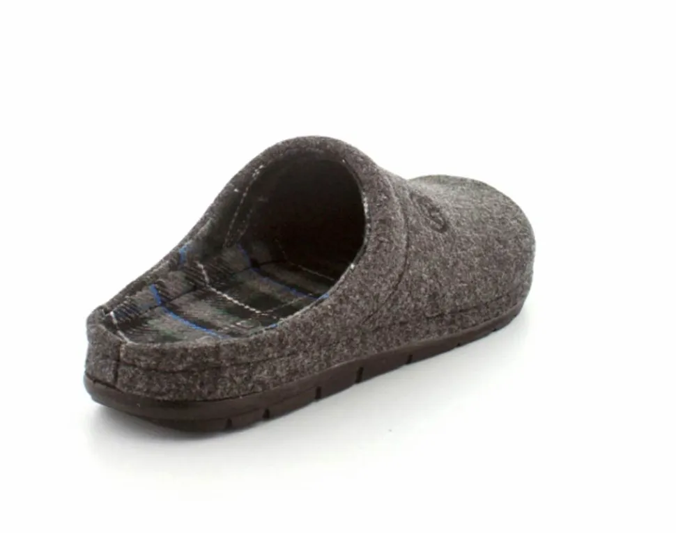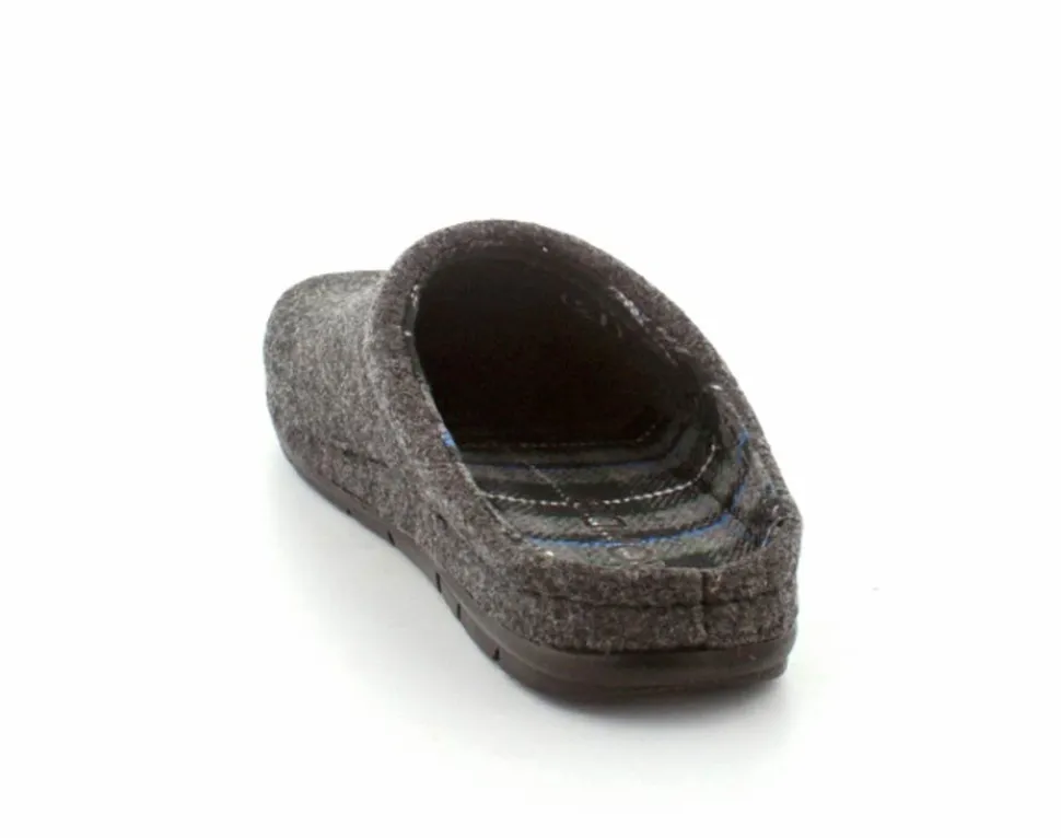 Skønne hjemmesko fra Rohde i mørkegrå uldfilt. Lige til at stikke i med en rigtig god bredde. Stødabsoberende såler under hele bunden, der godt kan tåle at gå udenfor.