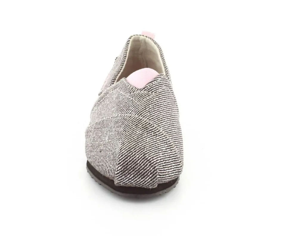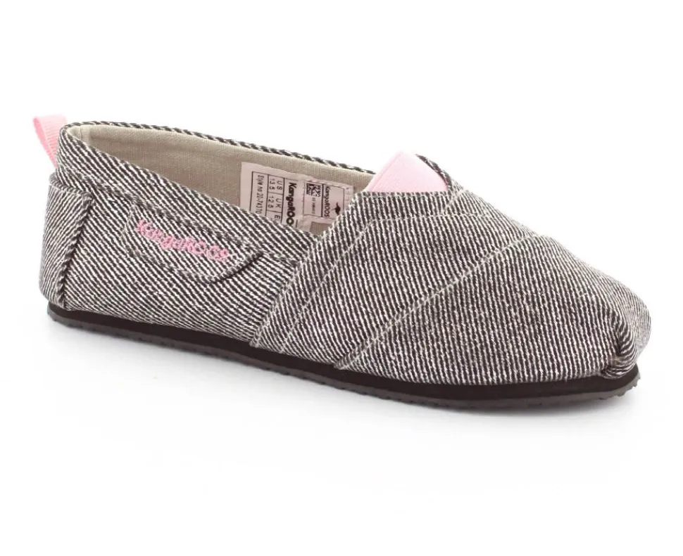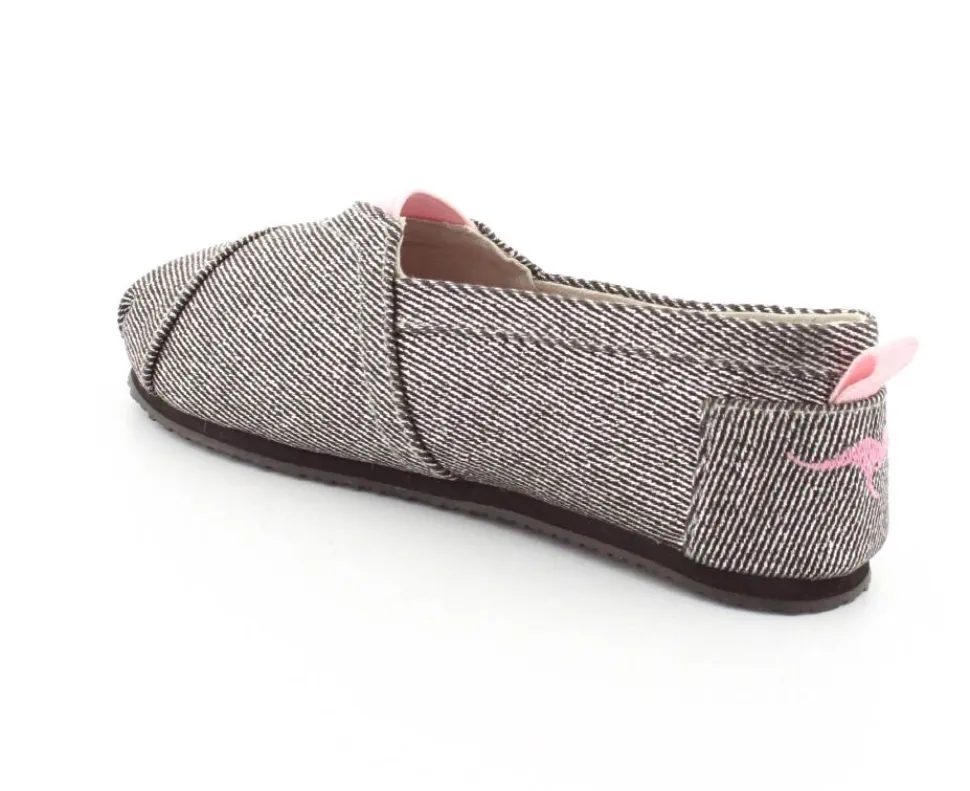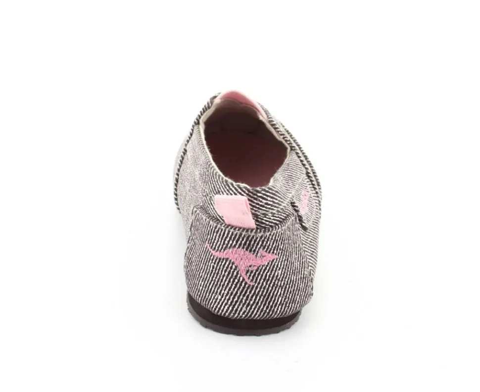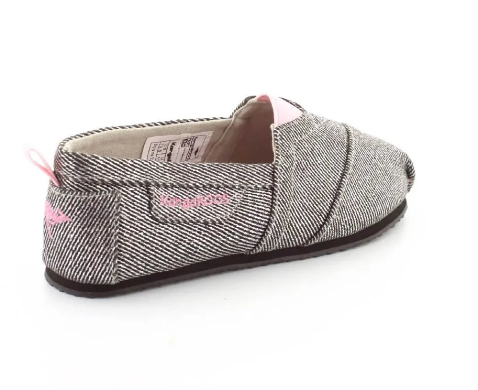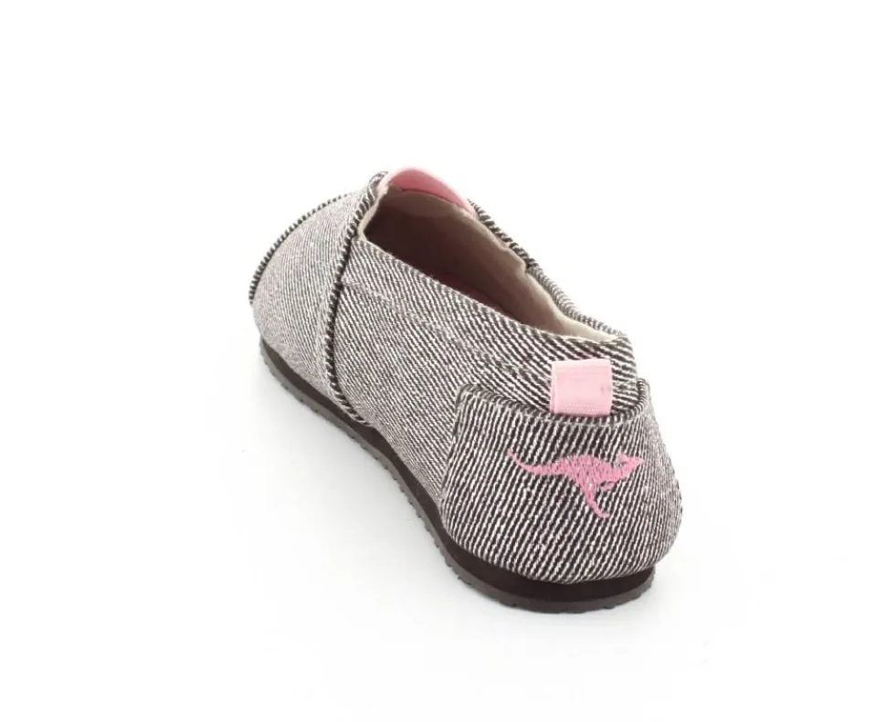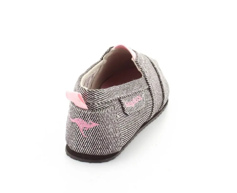 Super fin og smart sko fra Kangaroos, som både kan bruges som sommersko eller hjemmesko. Skoen er lige til at smutte i og lavet i sølvfarvet kanvas med rosa farvet elastik ved vristen. Blød sål indvendigt og gummisåler under bunden.