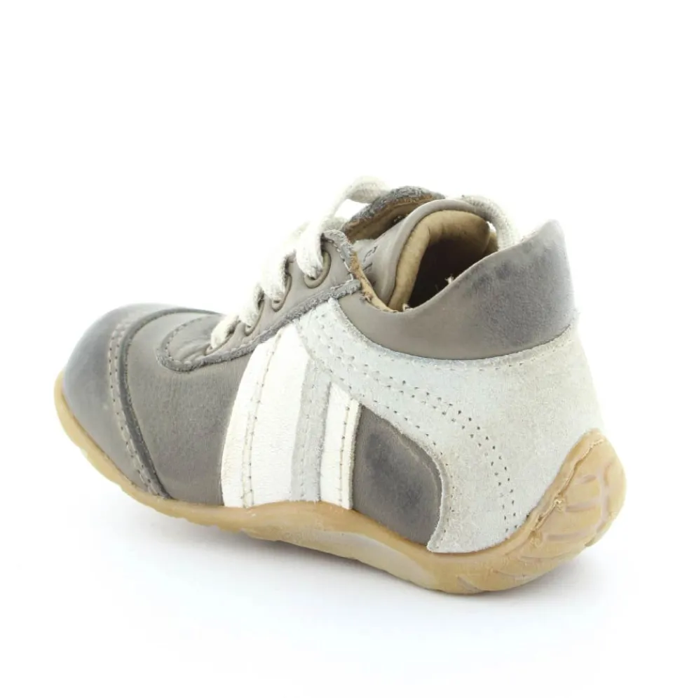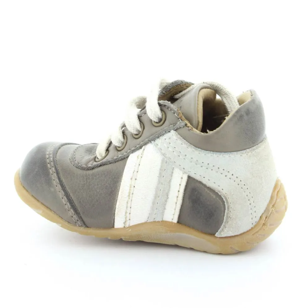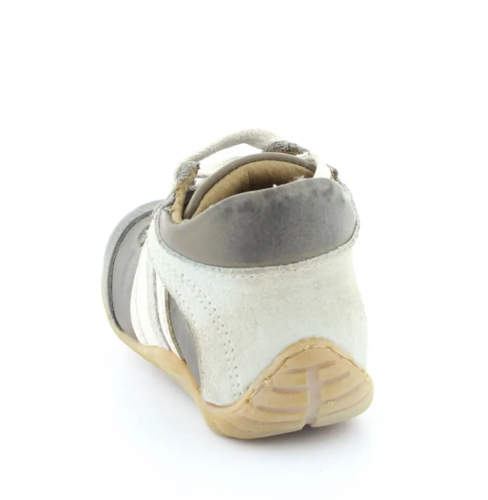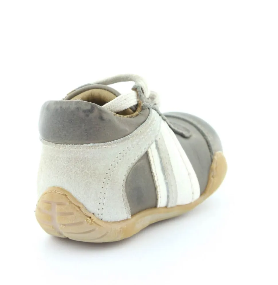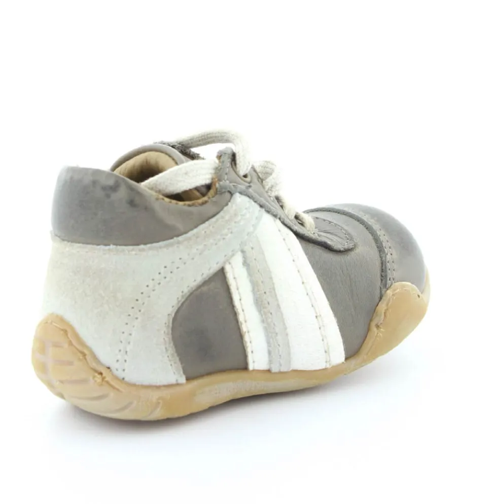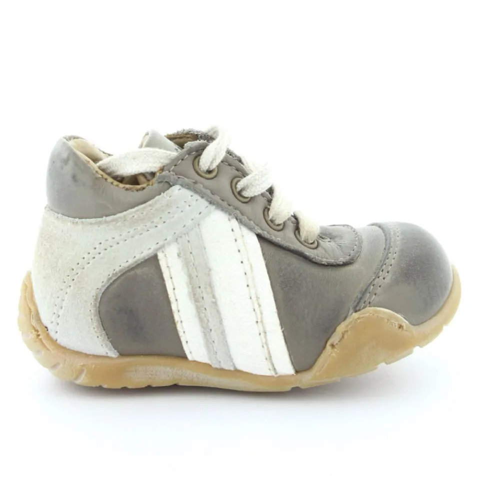 Skindsko fra Bisgaard. Smart snøresko i flot grå farve. Bløde gummisåler som er perfekt til den første sko. Skoen går op om anklen, så den støtter godt. Kan snøres helt til. Skoen har skindfor.