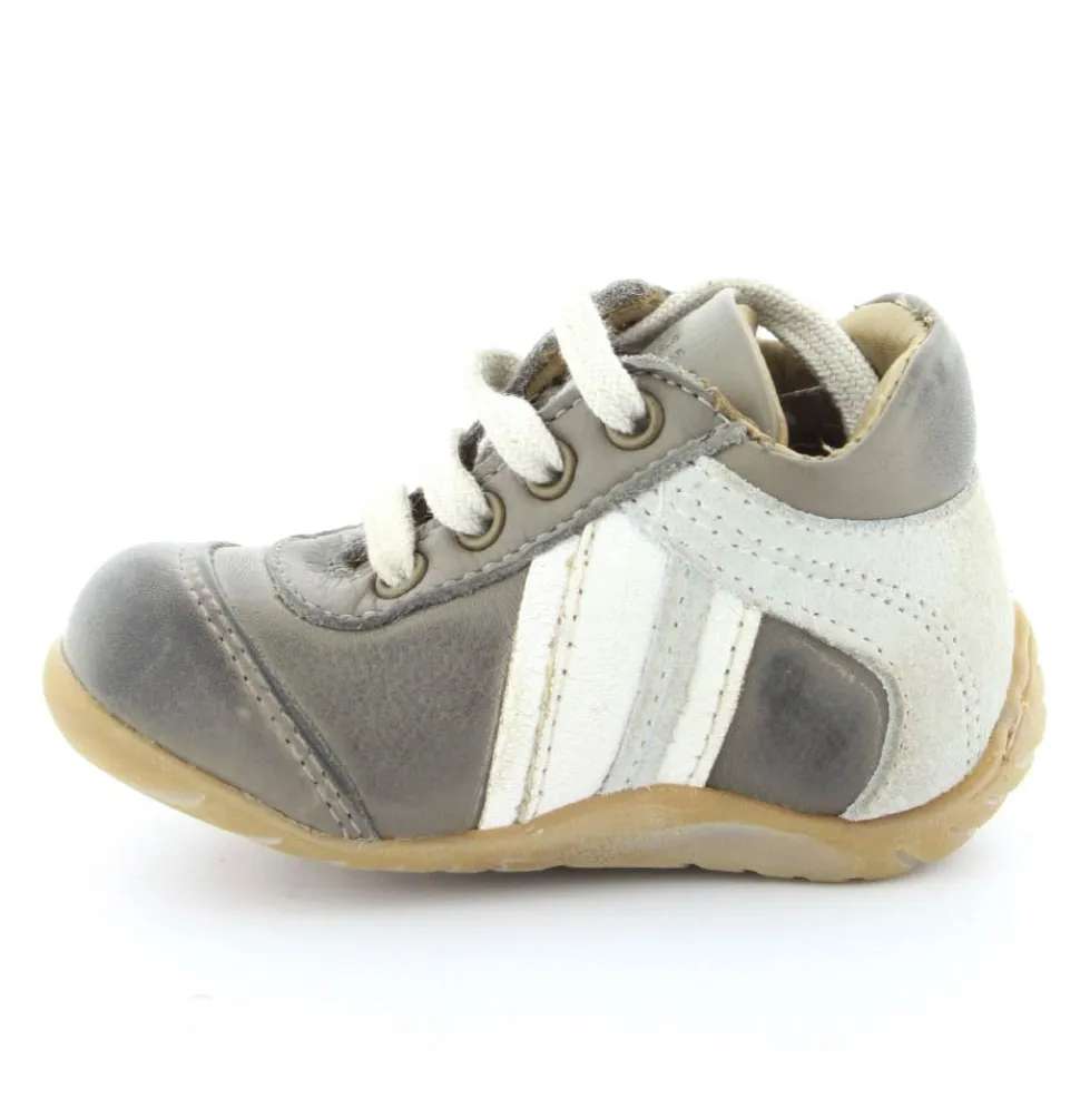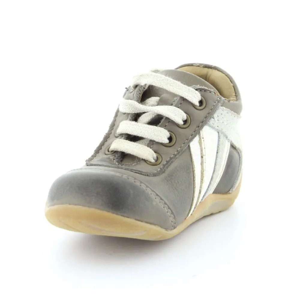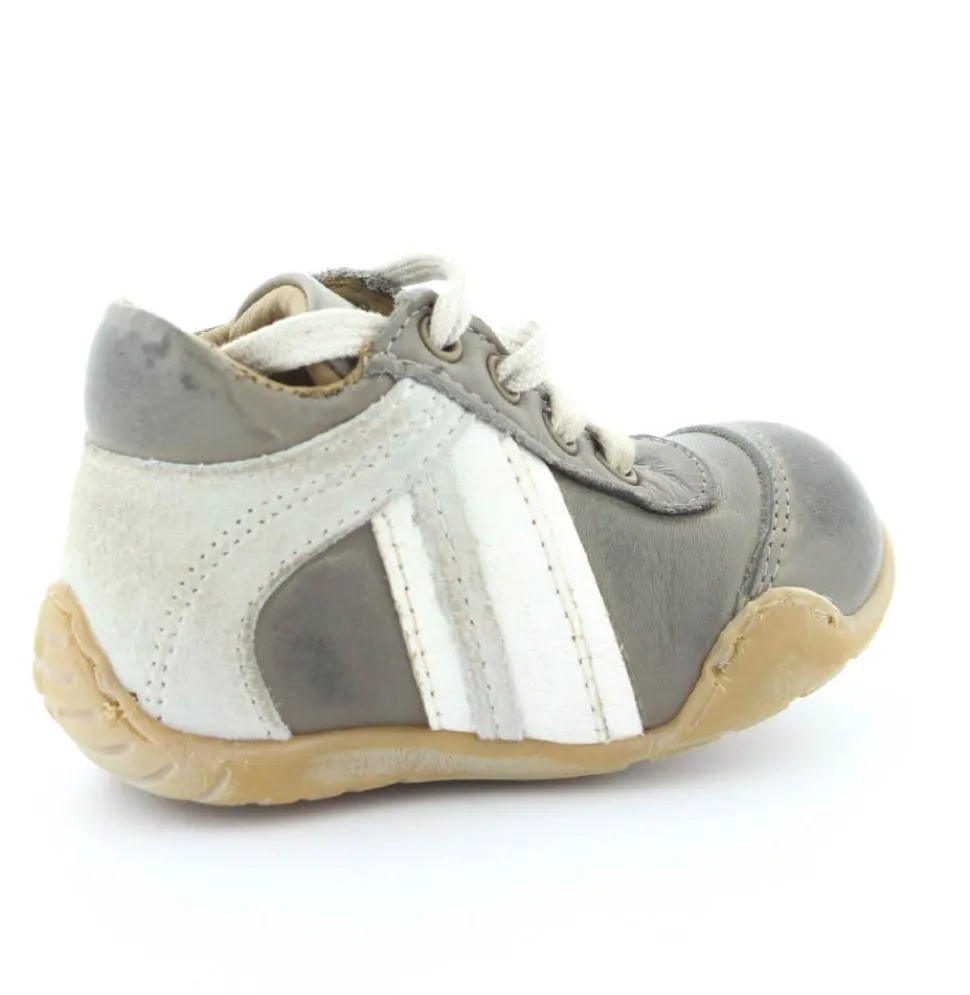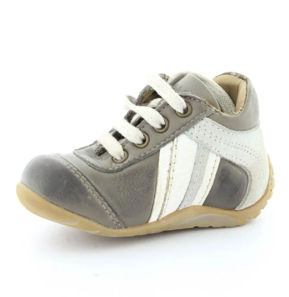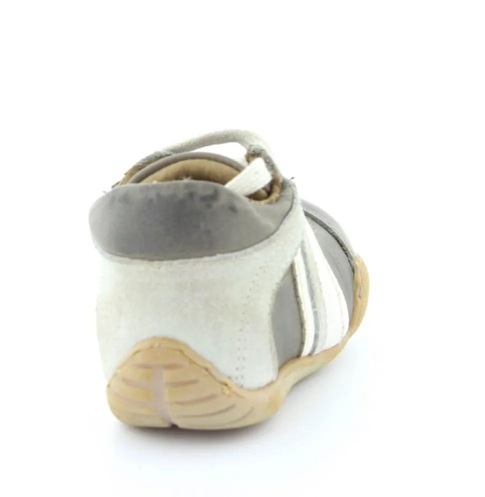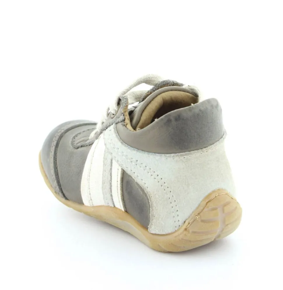Skindsko fra Bisgaard. Smart snøresko i flot grå farve. Bløde gummisåler som er perfekt til den første sko. Skoen går op om anklen, så den støtter godt. Kan snøres helt til. Skoen har skindfor.