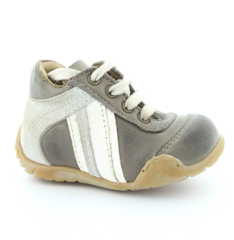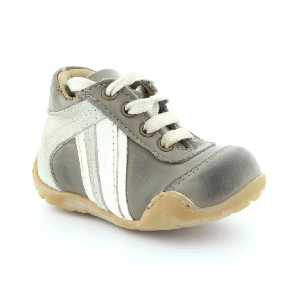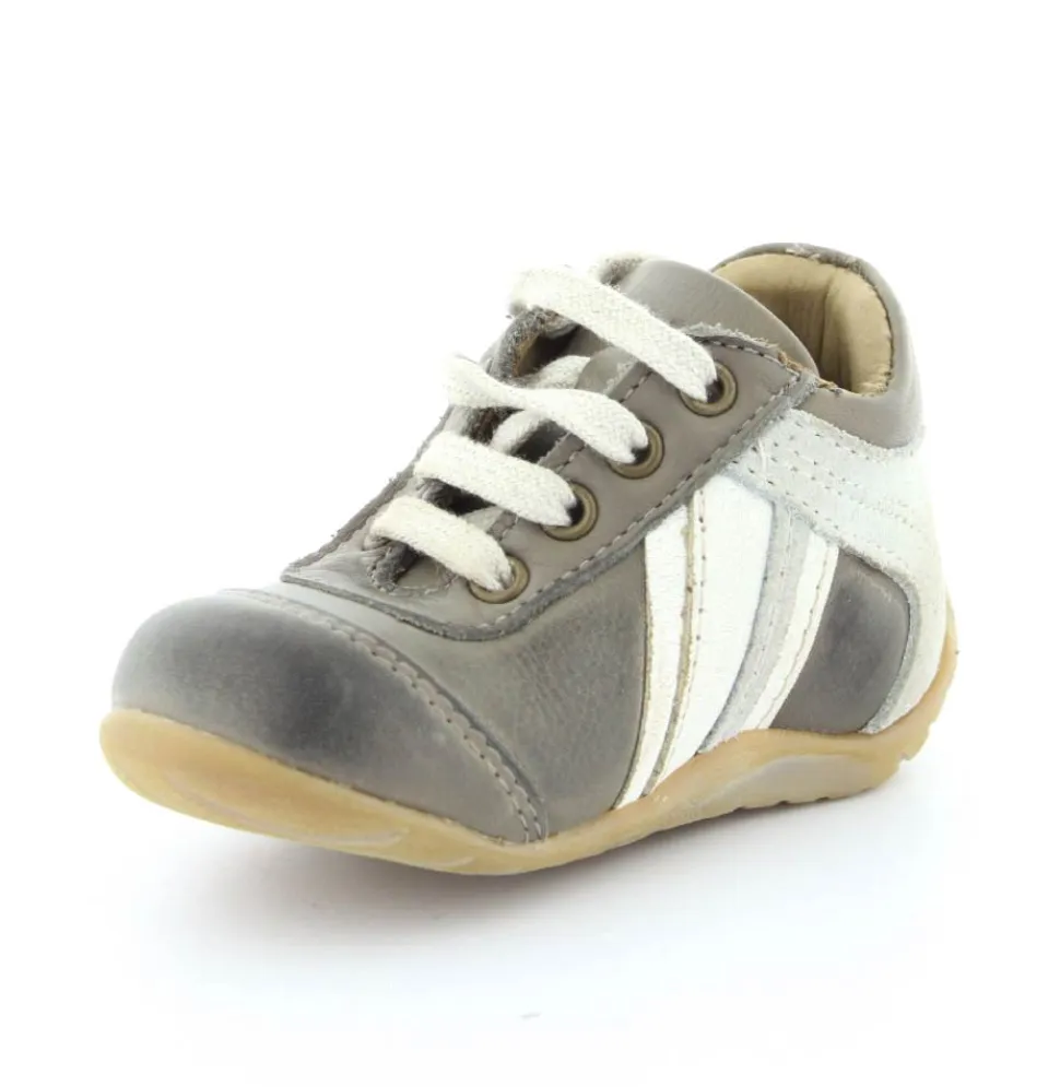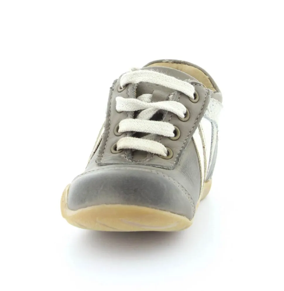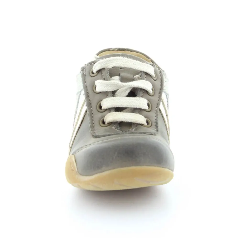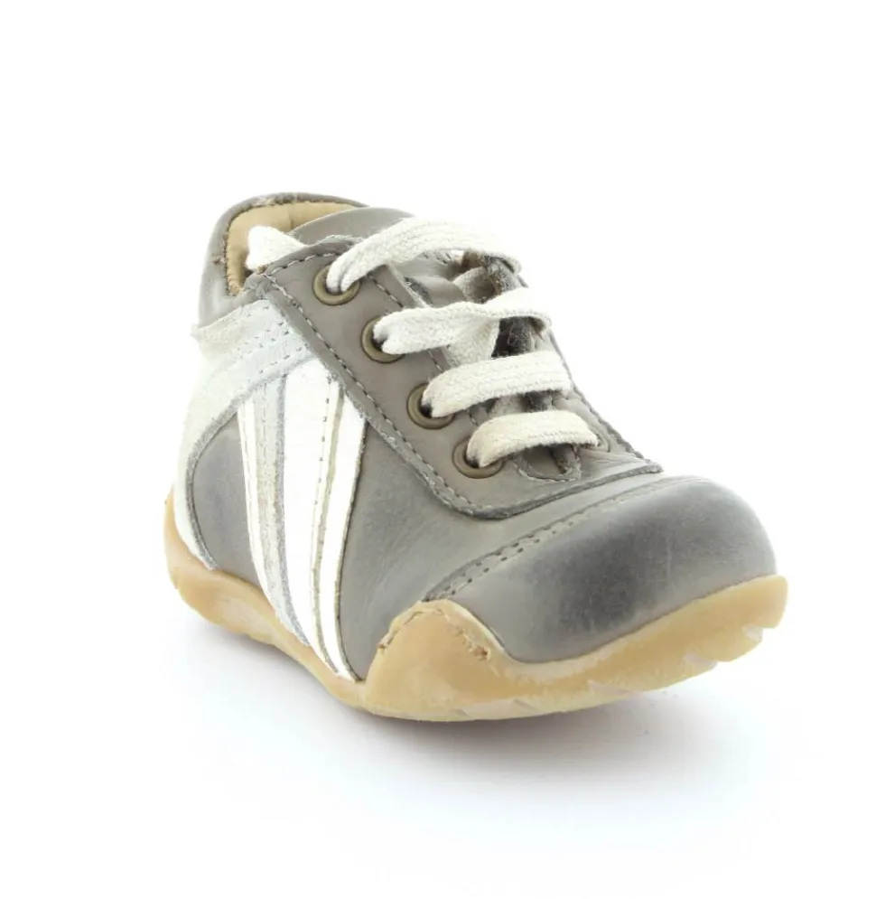Skindsko fra Bisgaard. Smart snøresko i flot grå farve. Bløde gummisåler som er perfekt til den første sko. Skoen går op om anklen, så den støtter godt. Kan snøres helt til. Skoen har skindfor.