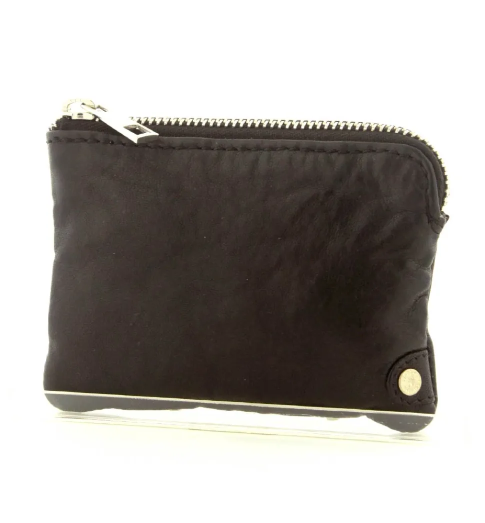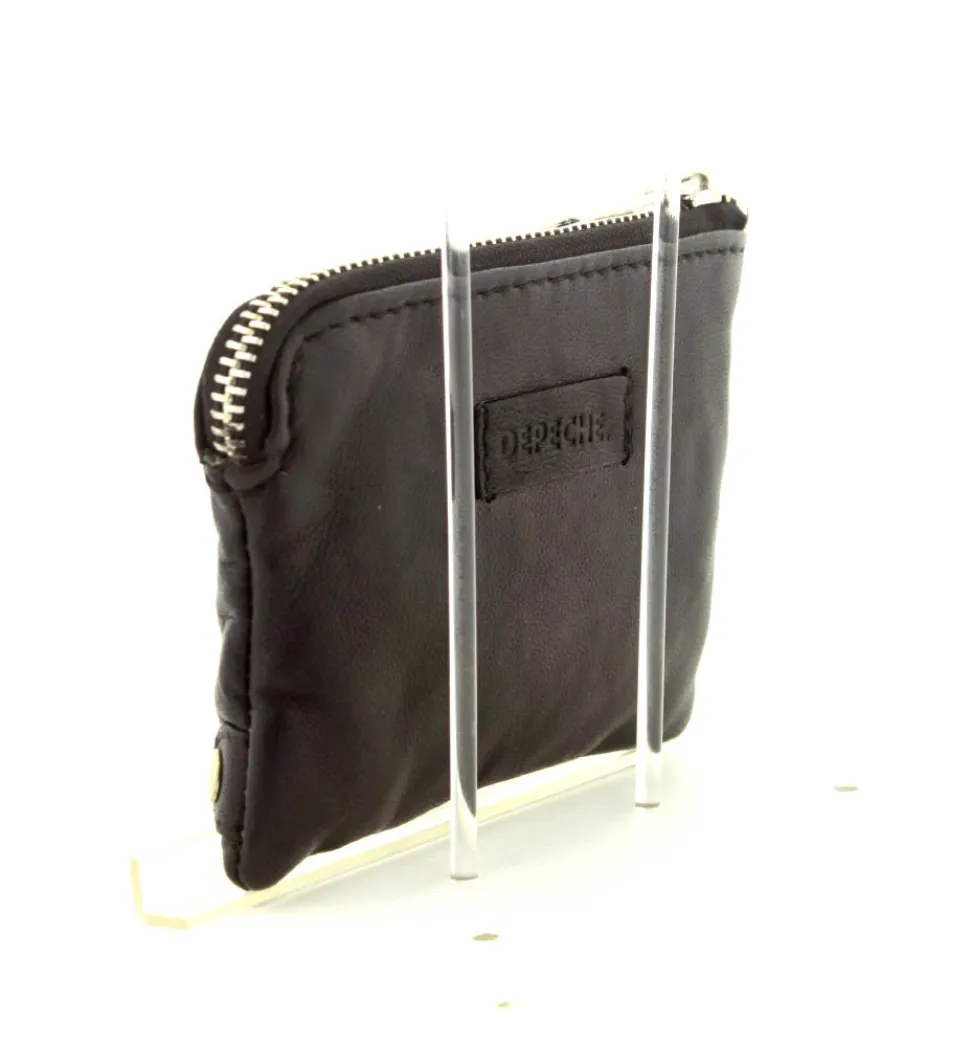 Smart lille creditcard holder i sort skind fra Depeche. Der er lynlås i toppen til et srum, hvor der er fire små rum på den ene side til kort. Lynlåsen er i sølv. Smart lige at have med i lommen eller tasken.