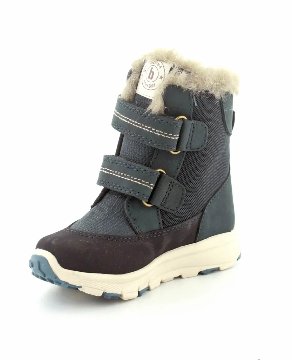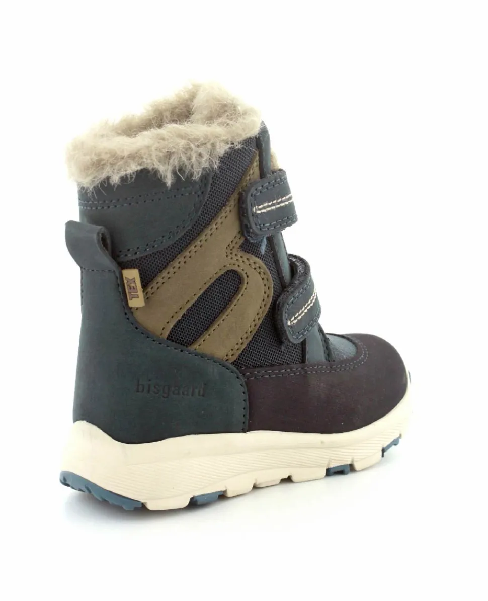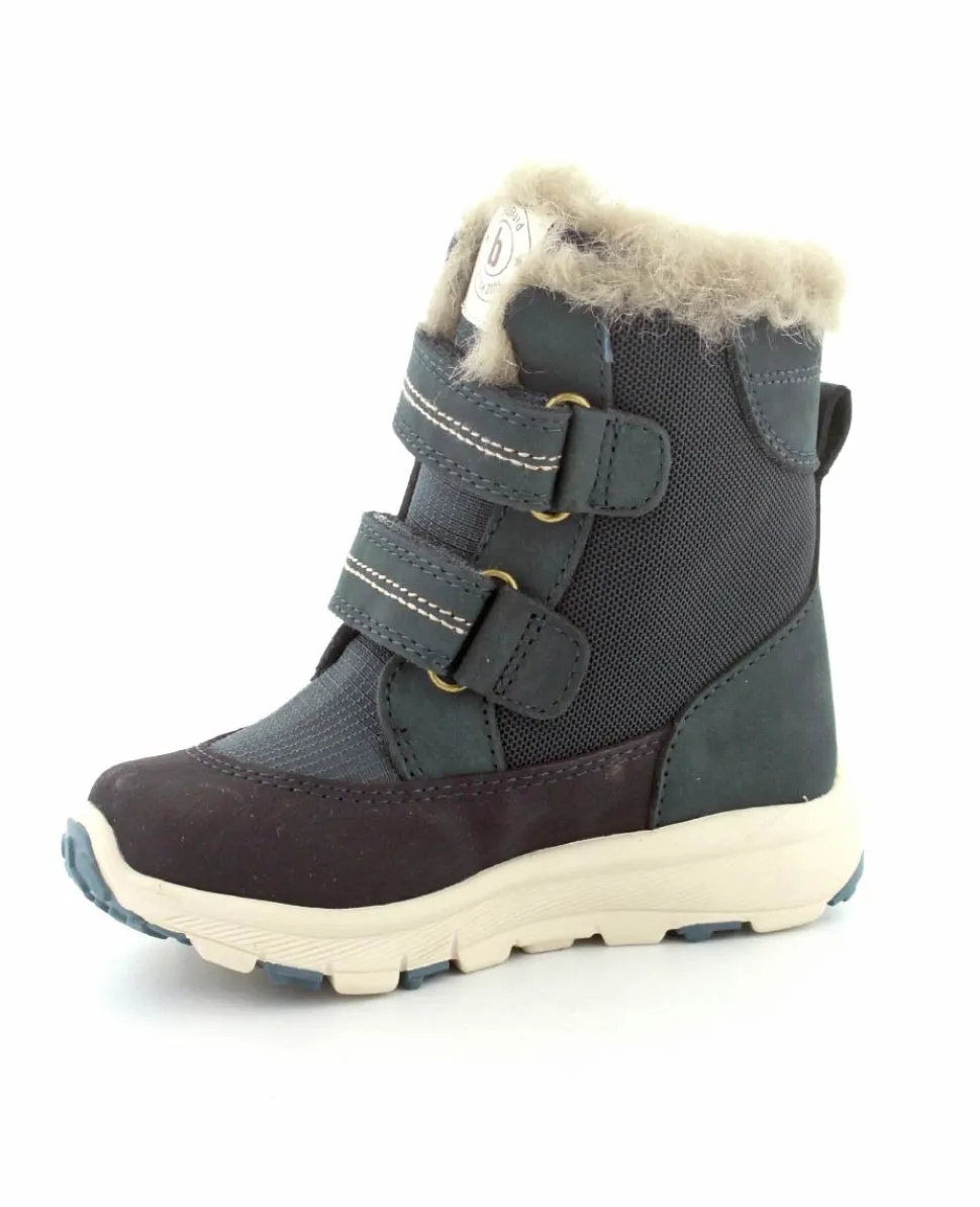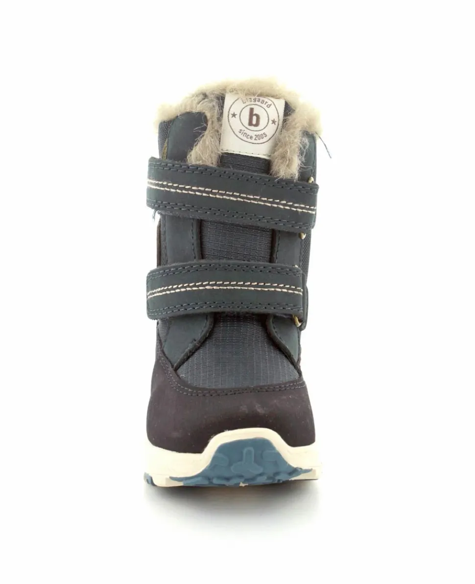 Skønne og lette vinterstøvler fra Bisgaard model Spencer i en flot blå farve. Støvlen er nem at komme i med to regulerbare velcroremme. Varmt foer indeni og pelskant i toppen. Der er aftagelige uldsåler indeni. Støvlen er med texmembran, så den også er vandtæt.