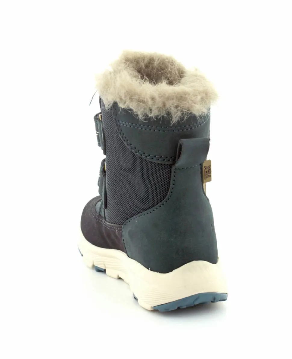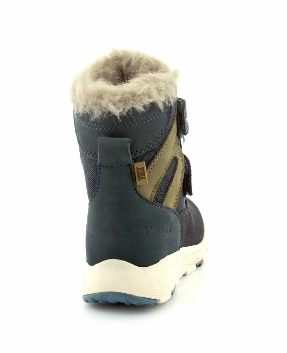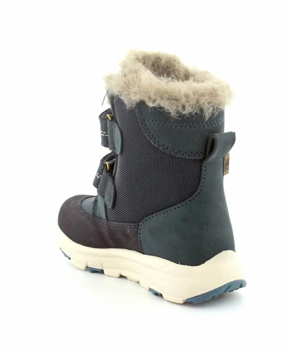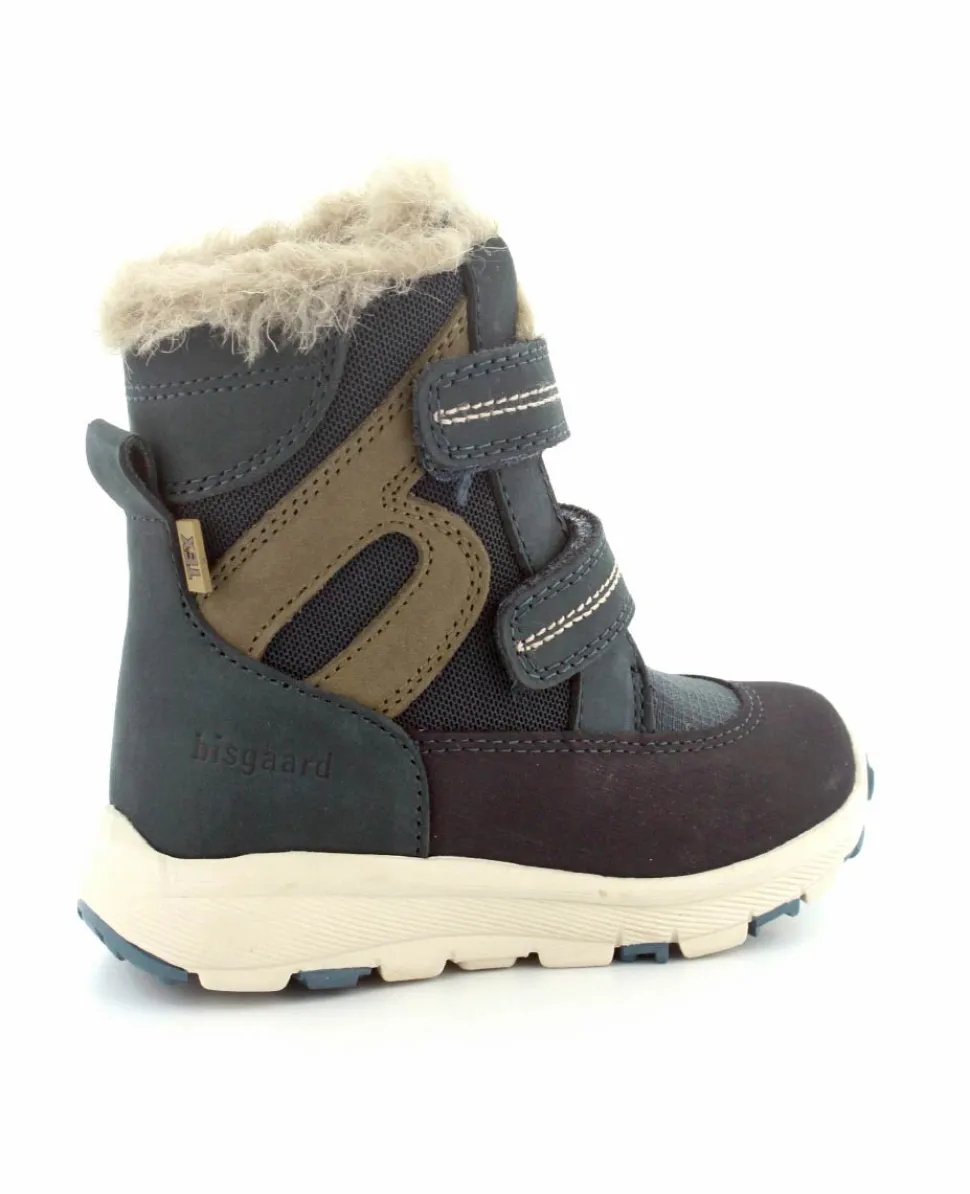 Skønne og lette vinterstøvler fra Bisgaard model Spencer i en flot blå farve. Støvlen er nem at komme i med to regulerbare velcroremme. Varmt foer indeni og pelskant i toppen. Der er aftagelige uldsåler indeni. Støvlen er med texmembran, så den også er vandtæt.