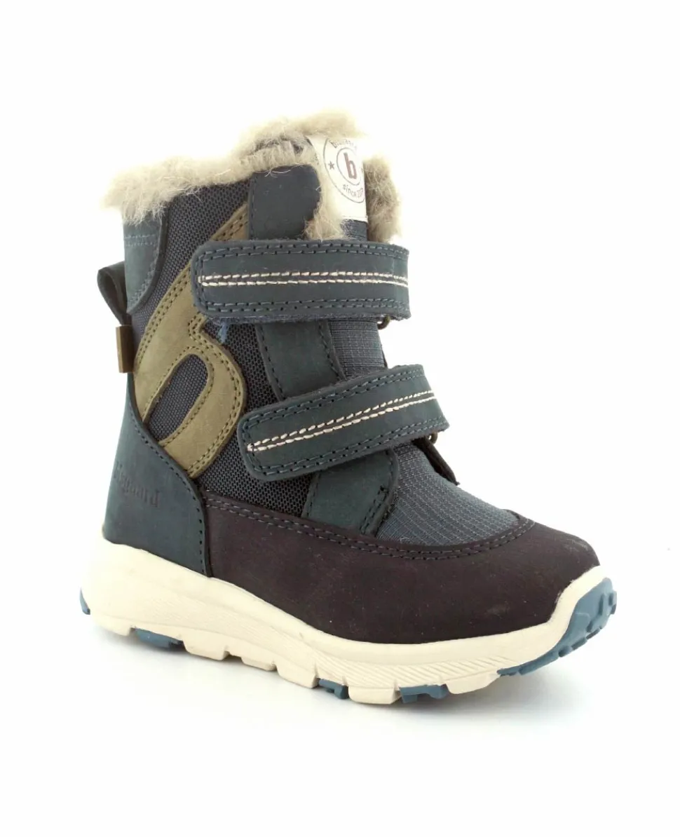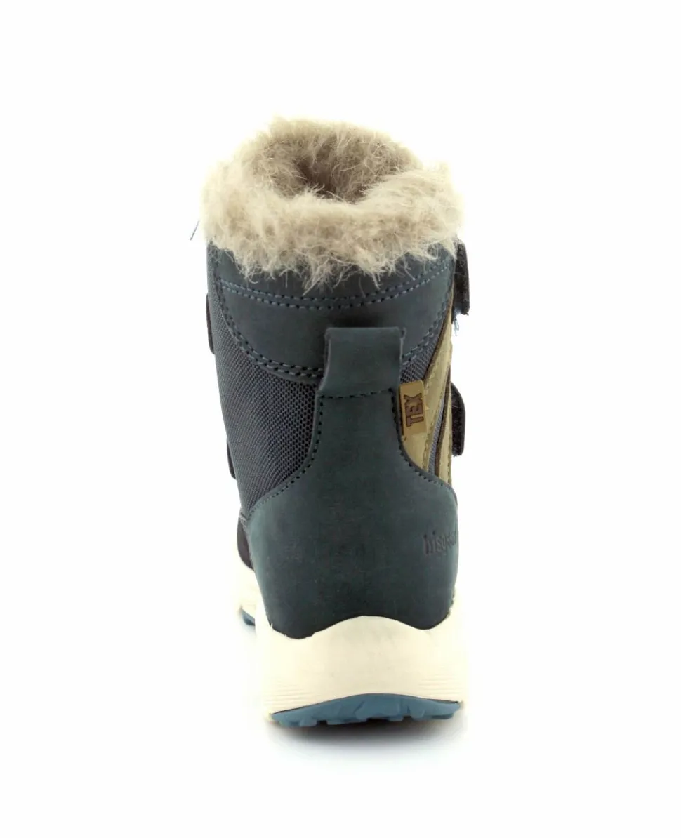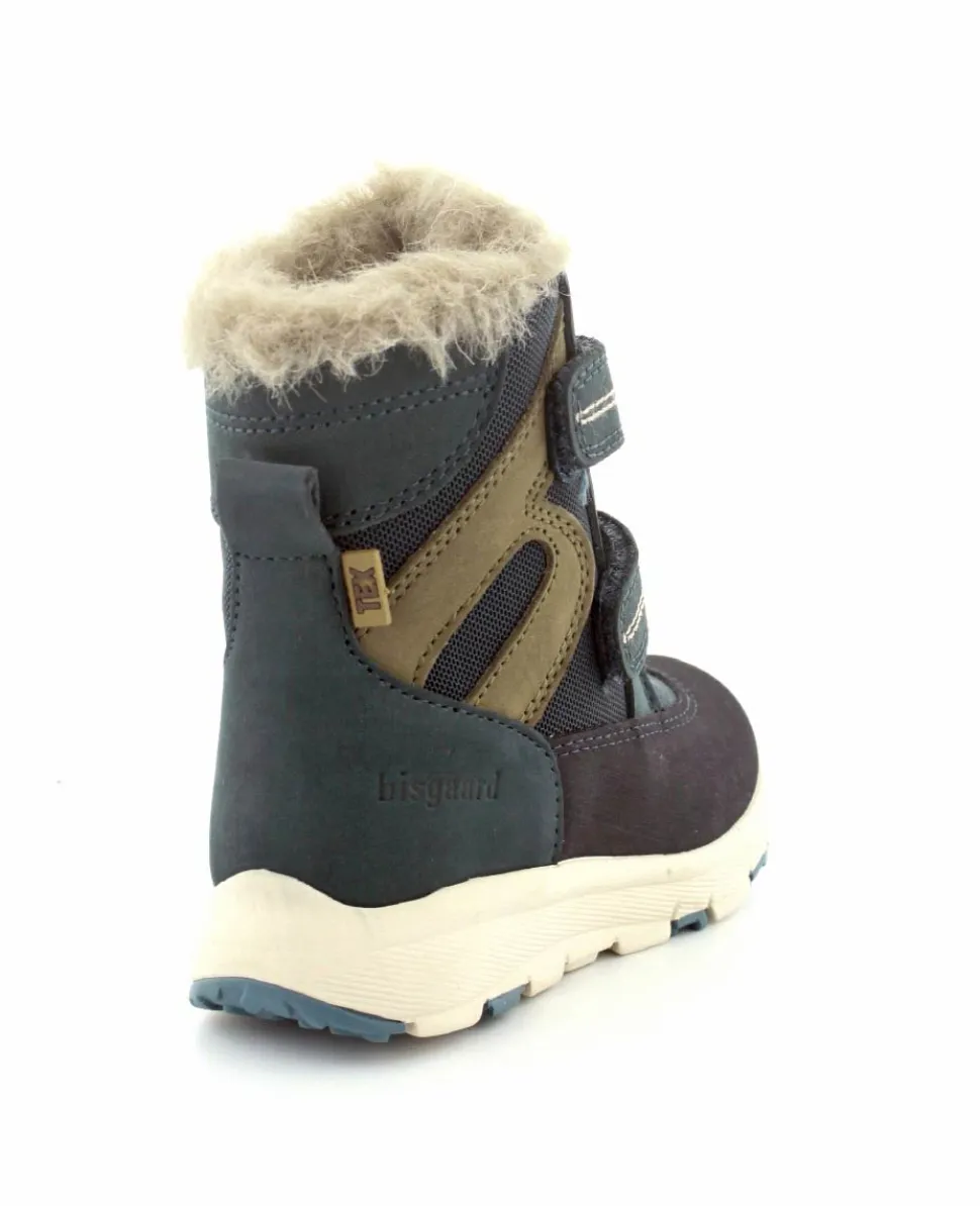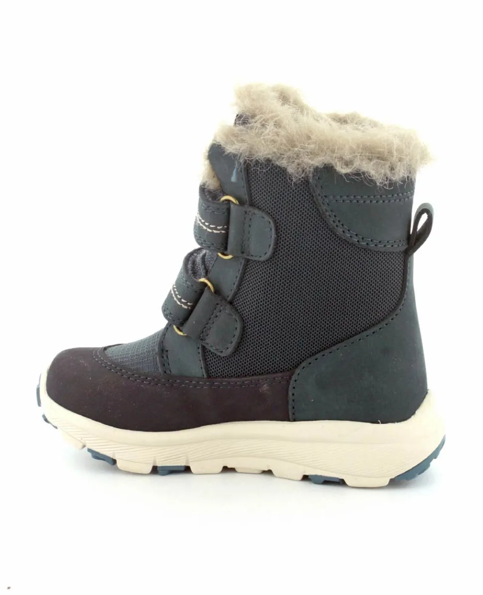 Skønne og lette vinterstøvler fra Bisgaard model Spencer i en flot blå farve. Støvlen er nem at komme i med to regulerbare velcroremme. Varmt foer indeni og pelskant i toppen. Der er aftagelige uldsåler indeni. Støvlen er med texmembran, så den også er vandtæt.