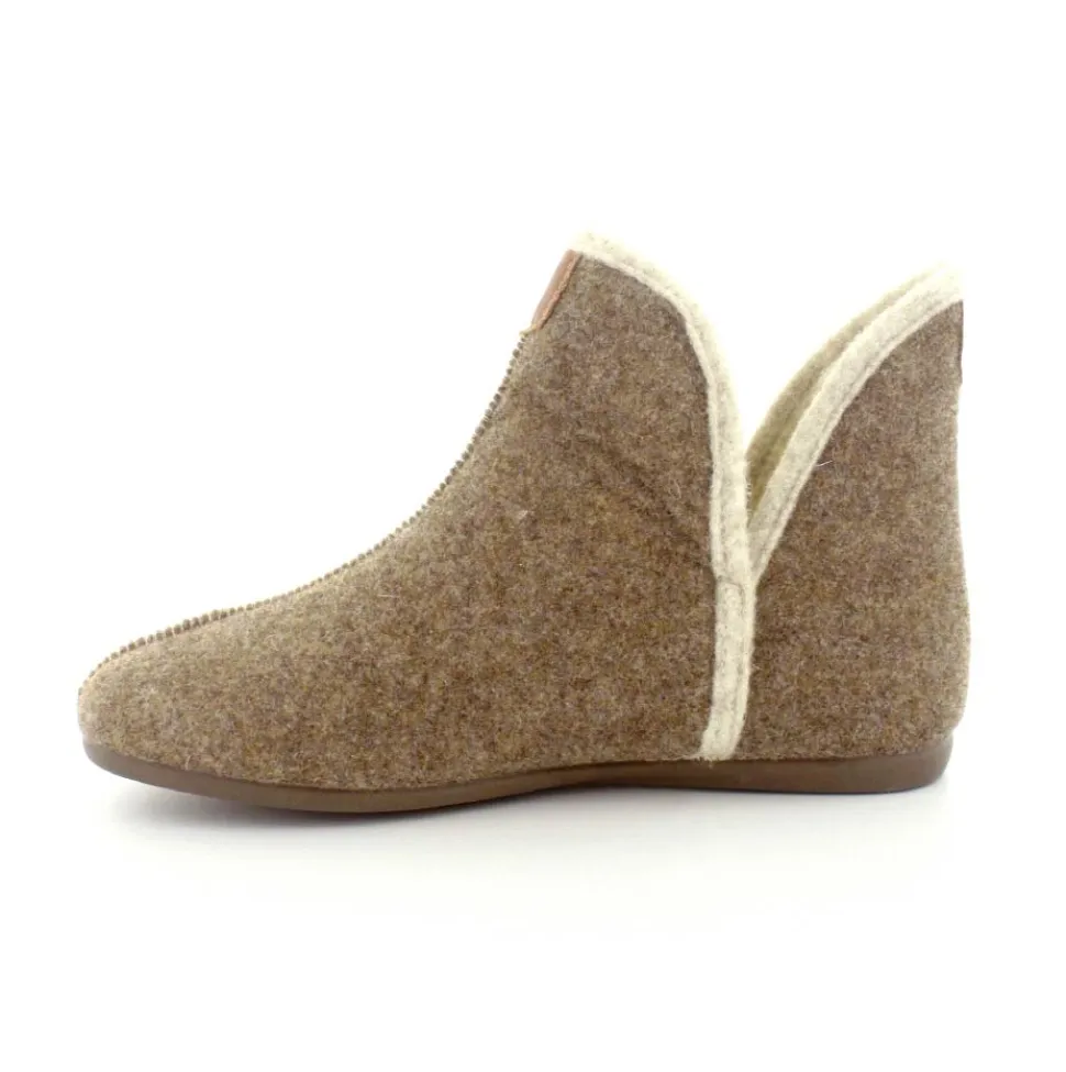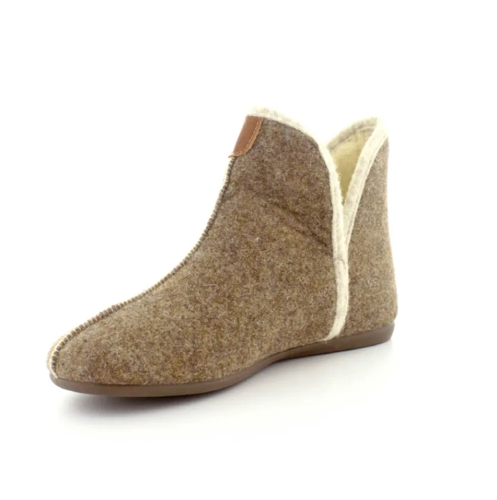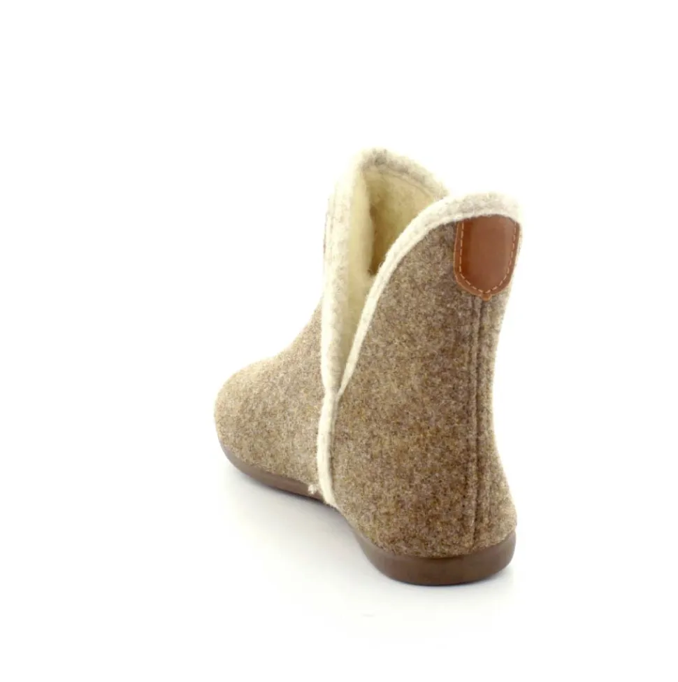 Rigtig skøn og varm hjemmesko fra Bella Moda i en flot lysbrun farve. Hjemmeskoen er lige til at trække på med skaft og med slidser i siden. Der er dejligt varmt uldfoer indeni og gummisåler under hele bunden. Den er lavet på en smallere læst så den virker lidt til den smalle side.