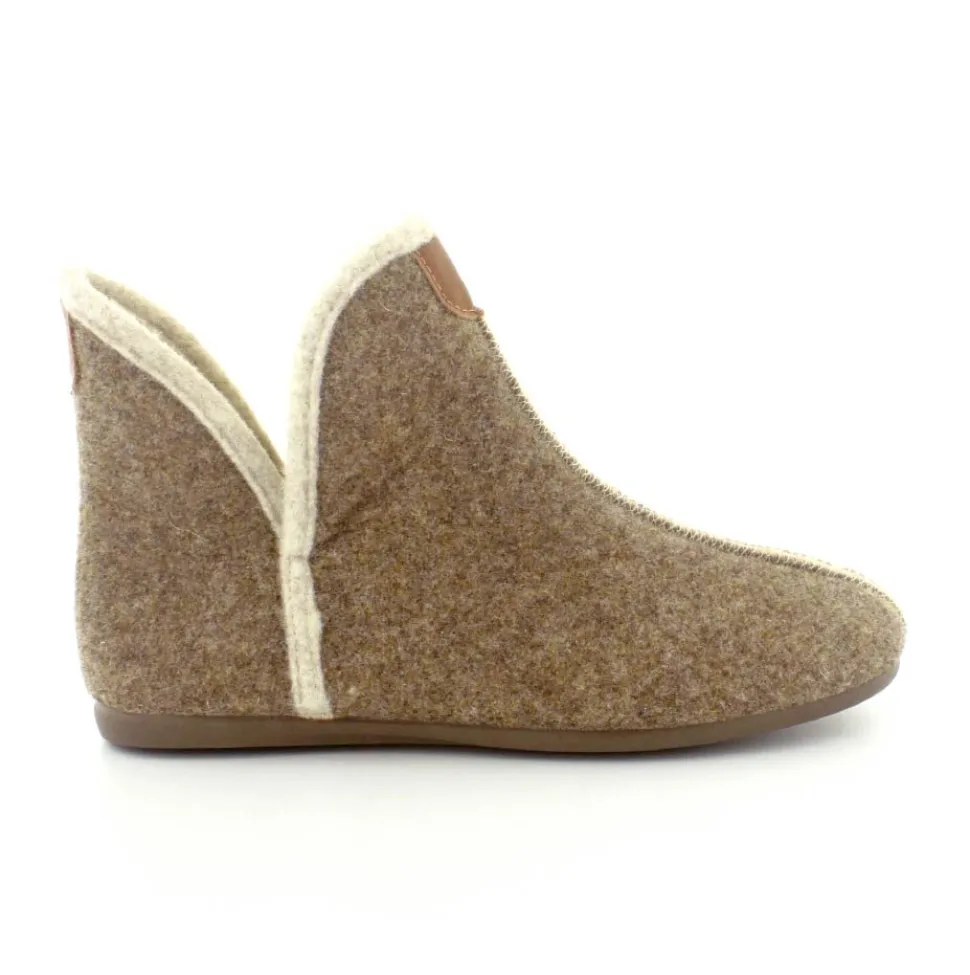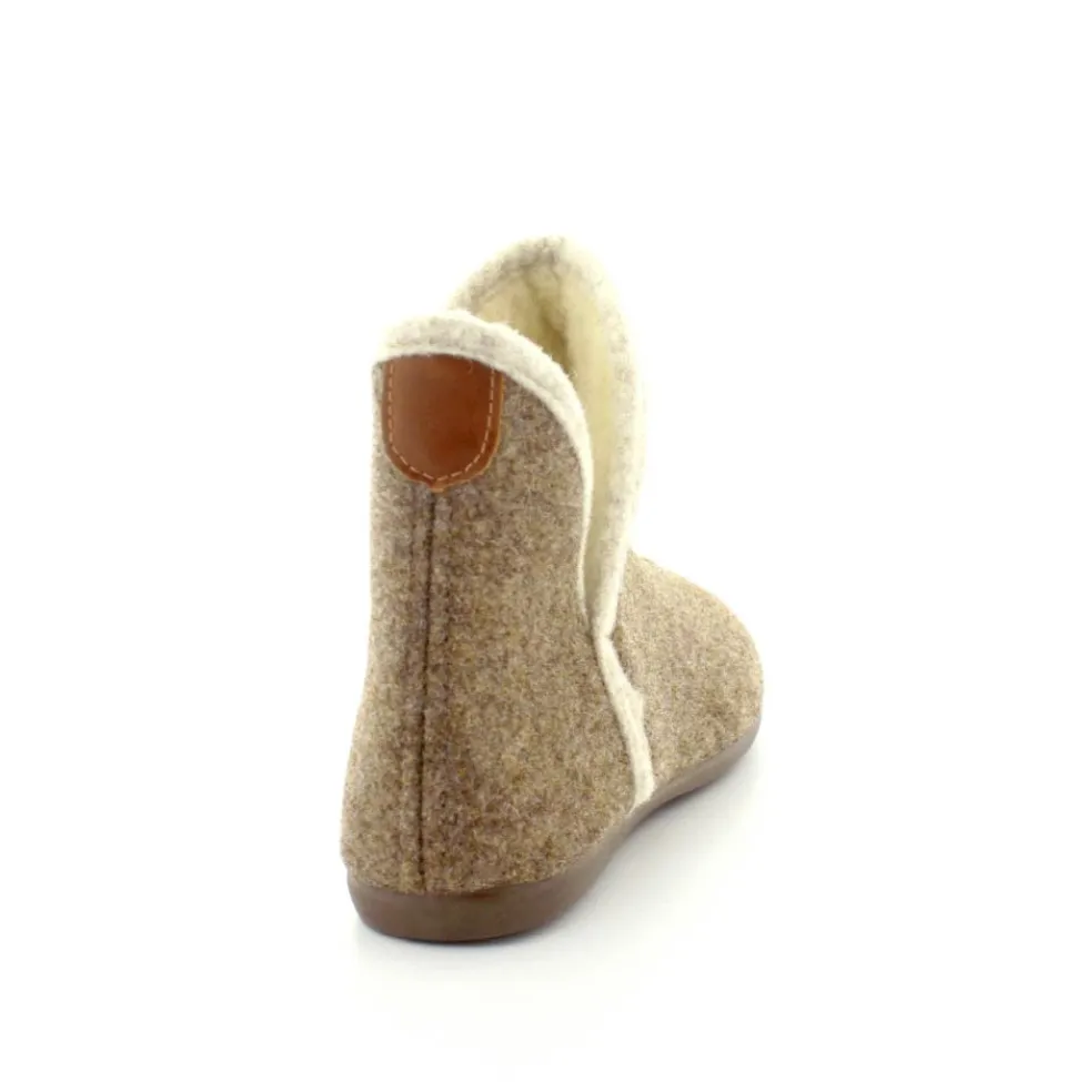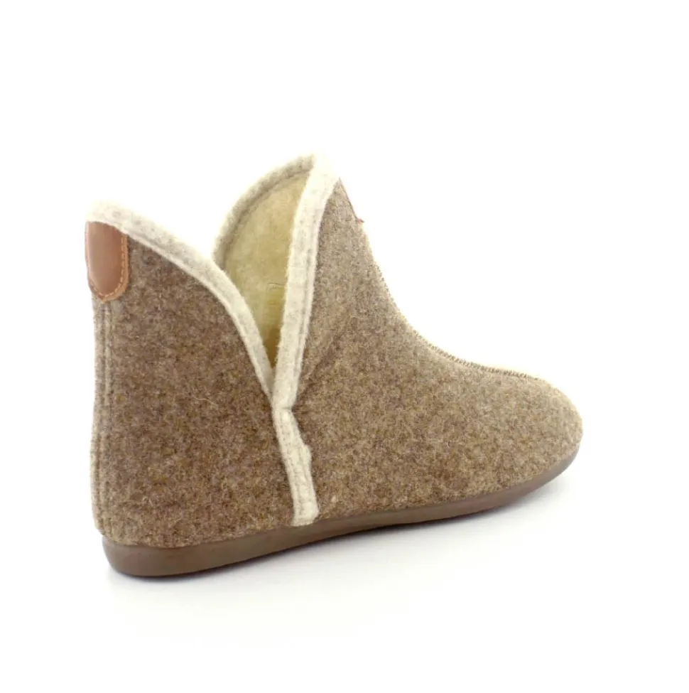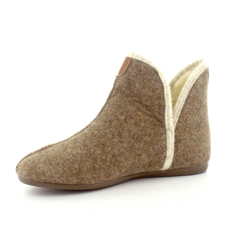 Rigtig skøn og varm hjemmesko fra Bella Moda i en flot lysbrun farve. Hjemmeskoen er lige til at trække på med skaft og med slidser i siden. Der er dejligt varmt uldfoer indeni og gummisåler under hele bunden. Den er lavet på en smallere læst så den virker lidt til den smalle side.