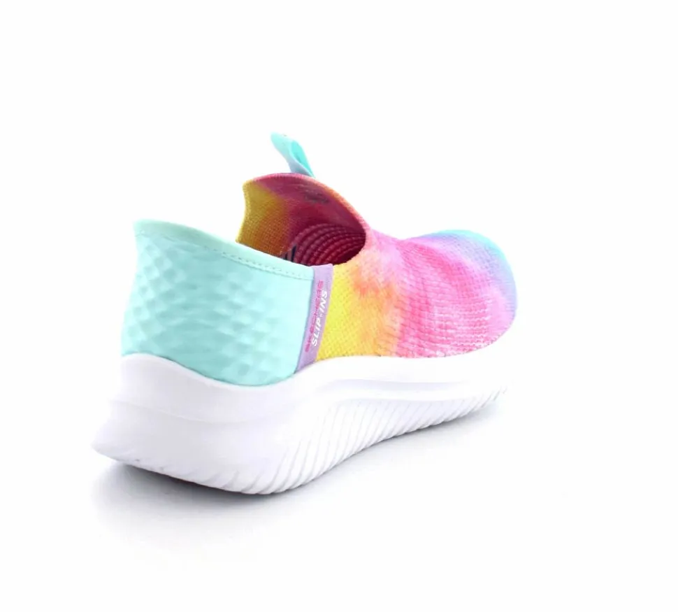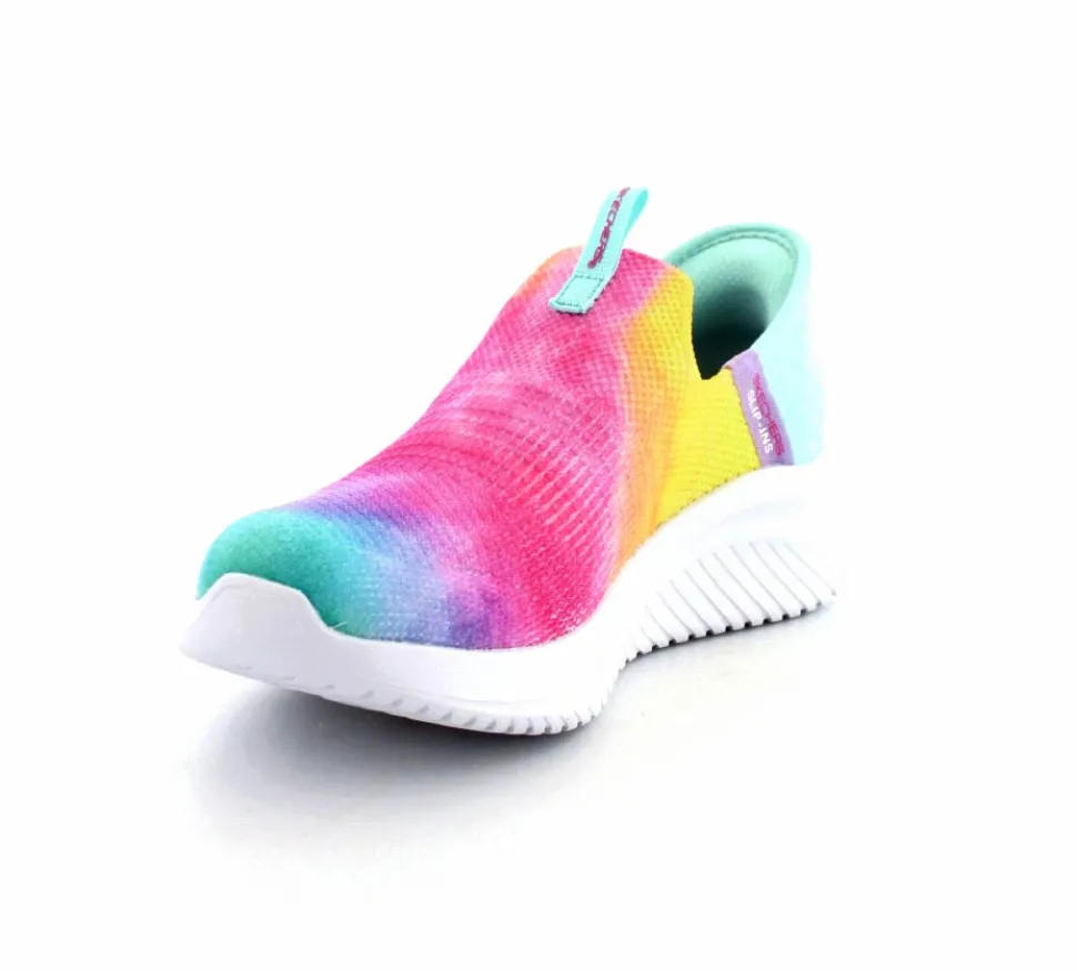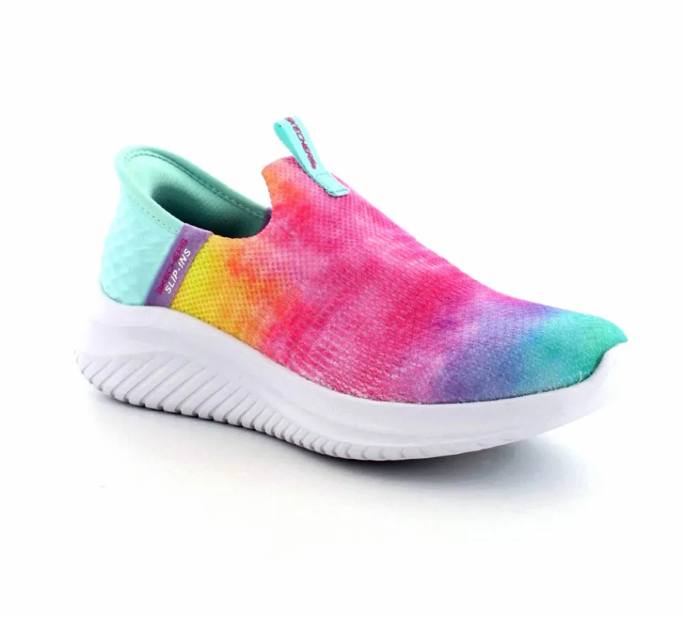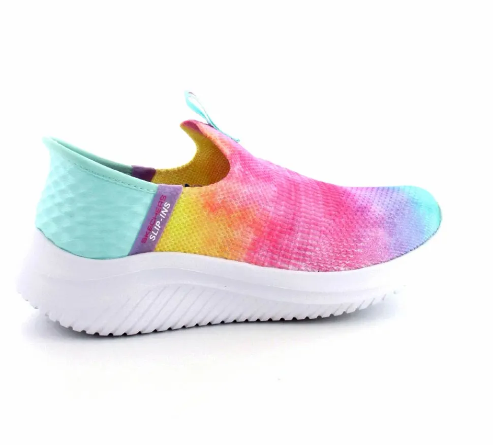 Super smart slip-in fra Skechers der er hands free. Skoen er lavet i multifarver og lige til at hoppe i. Man behøver slet ikke bruge skohorn for at komme. Skoen er meget let og med stødabsoberende såler under hele bunden.