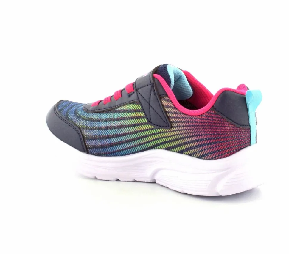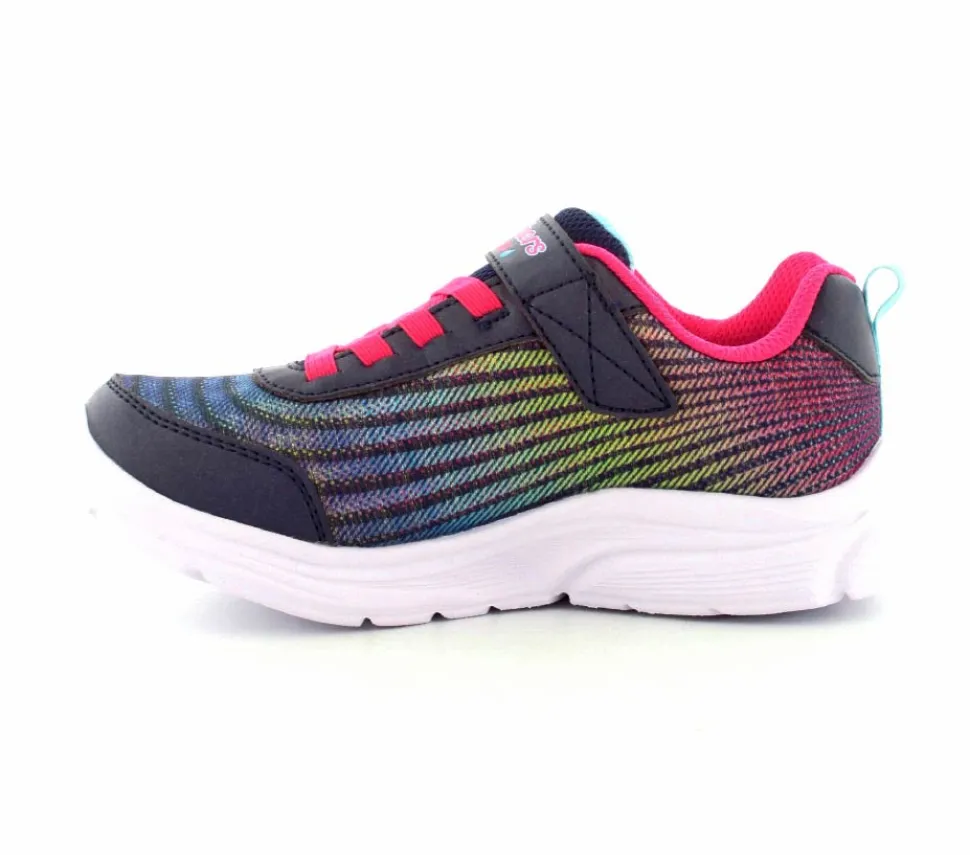 Smarte vandtætte sneakers fra Skechers model Wavy Lites i flotte farver. Skoen er med elastiksnøre og velcrorem. Meget let sko med stødabsoberende såler. God rummelig og lidt stor i størrelsen.