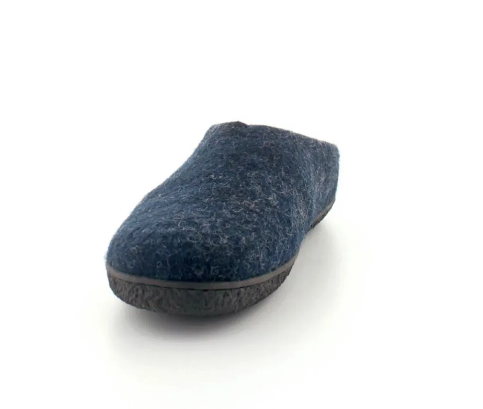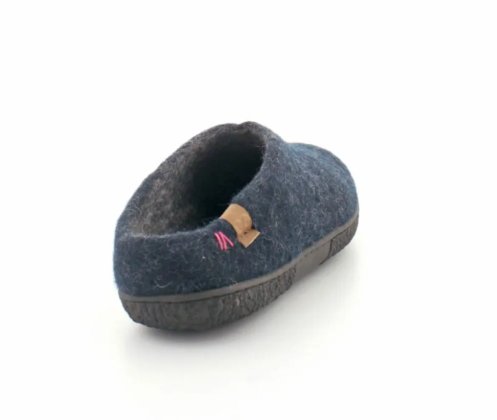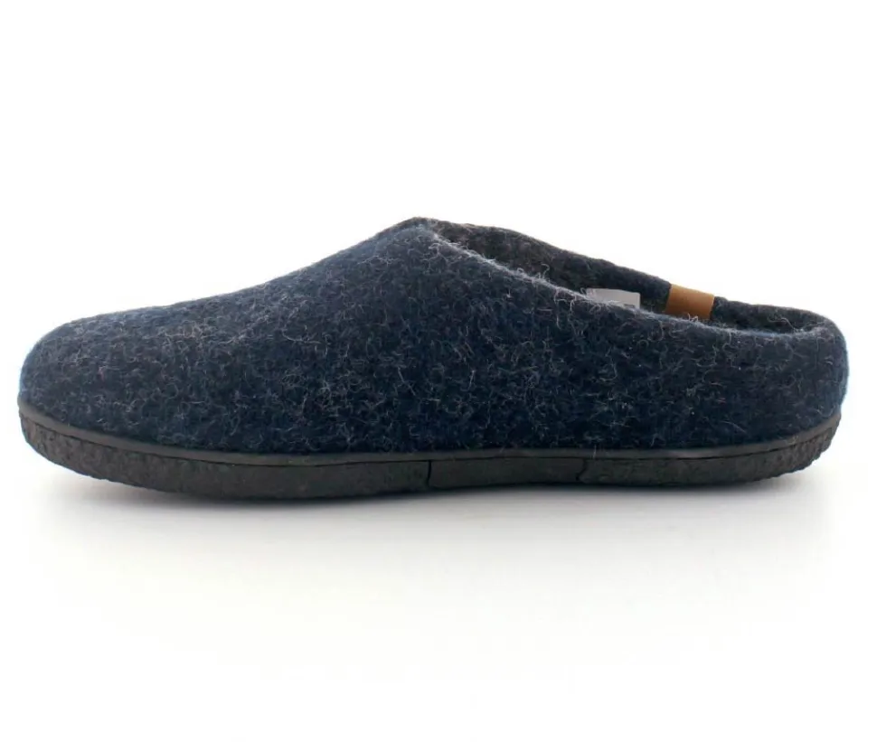 Lækker håndlavet hjemmesko fra Green Comfort i 100% uld. Skoen er lige til at smutte i med en lille bagkant, der sørger for du ikke skrider ud. Alt er i uld og under bunden er der sat rigtige gummisåler på. Hjemmeskoen fra Green Comfort har en mellemsål “EnergySole” der er en stødabsoberende sål. Den ligger mellem uldsålen og gummisålen. Skøn at gå på.